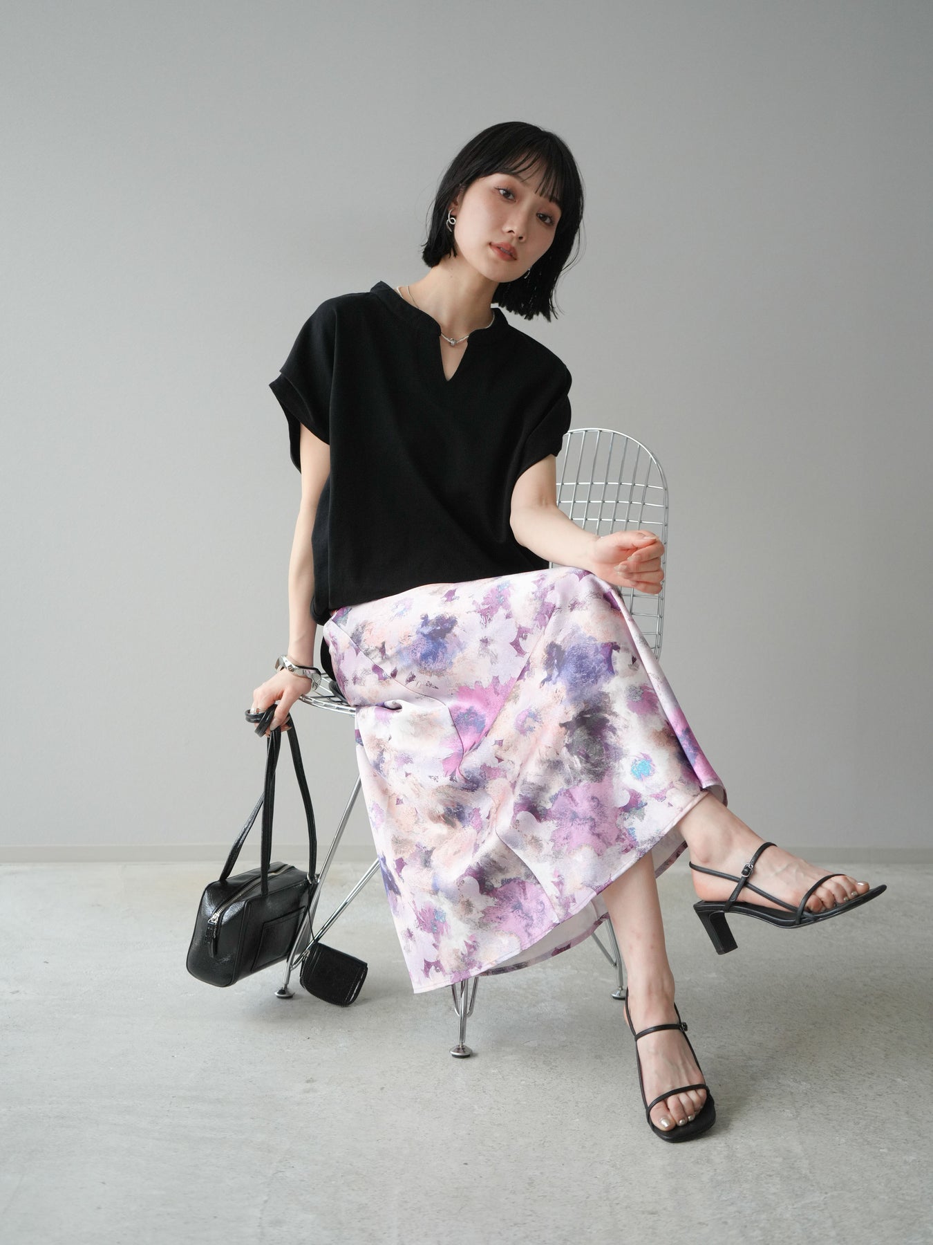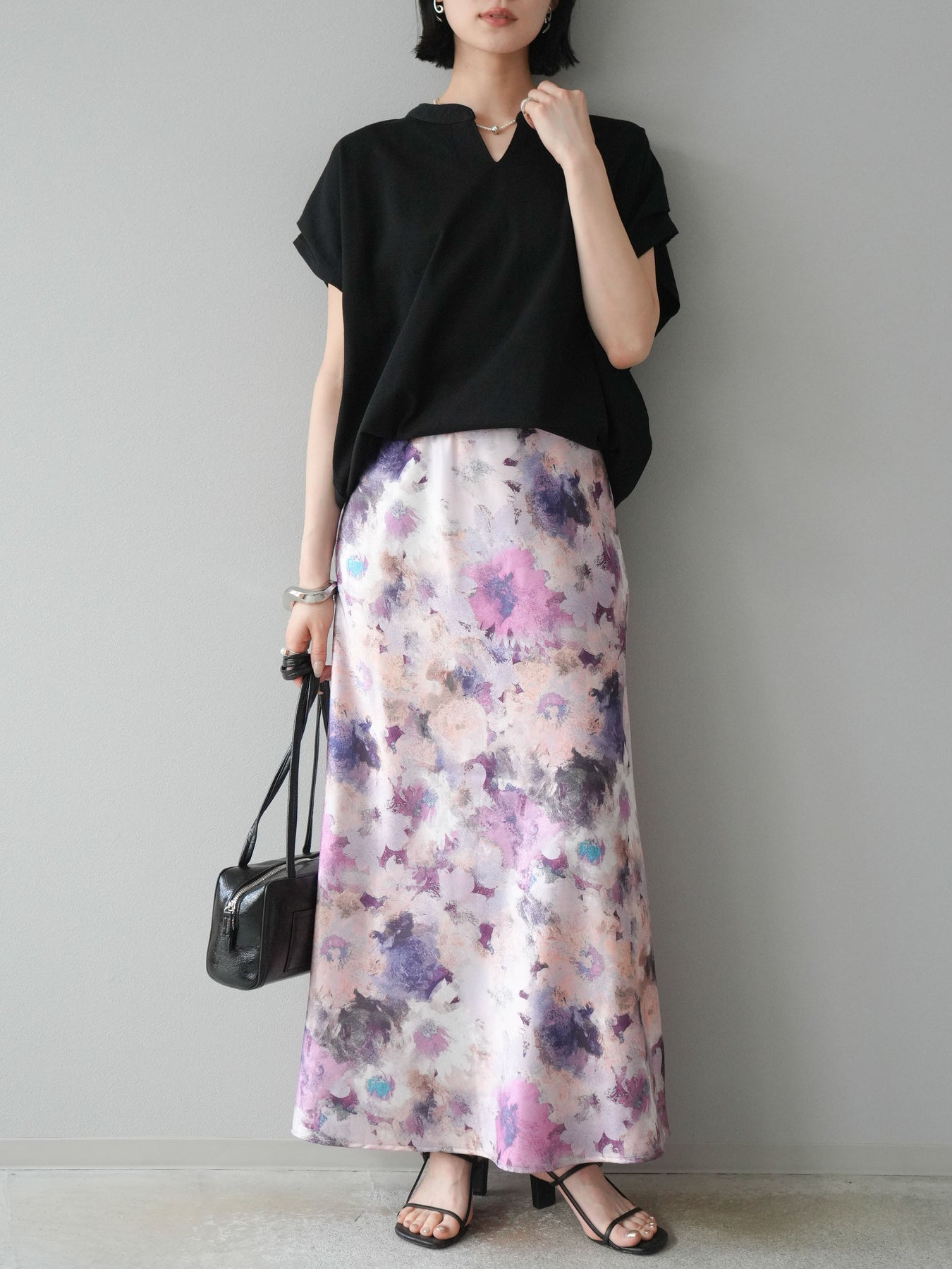 柔らかなコットン素材を使用し、リラックス感たっぷりのルーズシルエットが魅力のTシャツ。キーネックデザインがさりげない抜け感を演出し、顔周りをすっきり見せてくれます。ドルマンスリーブで動きやすく、こなれた大人カジュアルスタイルにぴったりな一枚です。デニムからスカートまで幅広いボトムと好相性。 ※ボトムス、キャミソール(インナー)以外の商品は一律でインナーは付属していません