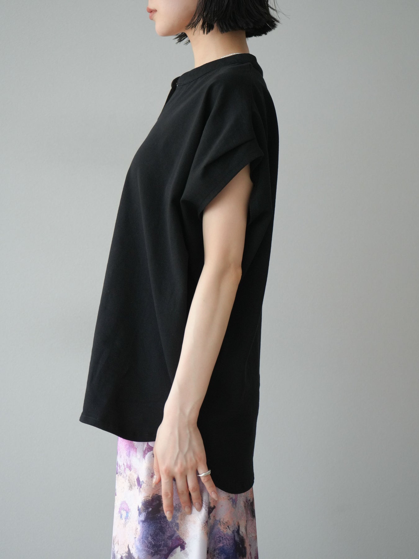 [予約]キーネックドルマンルーズコットンTシャツ/ブラック