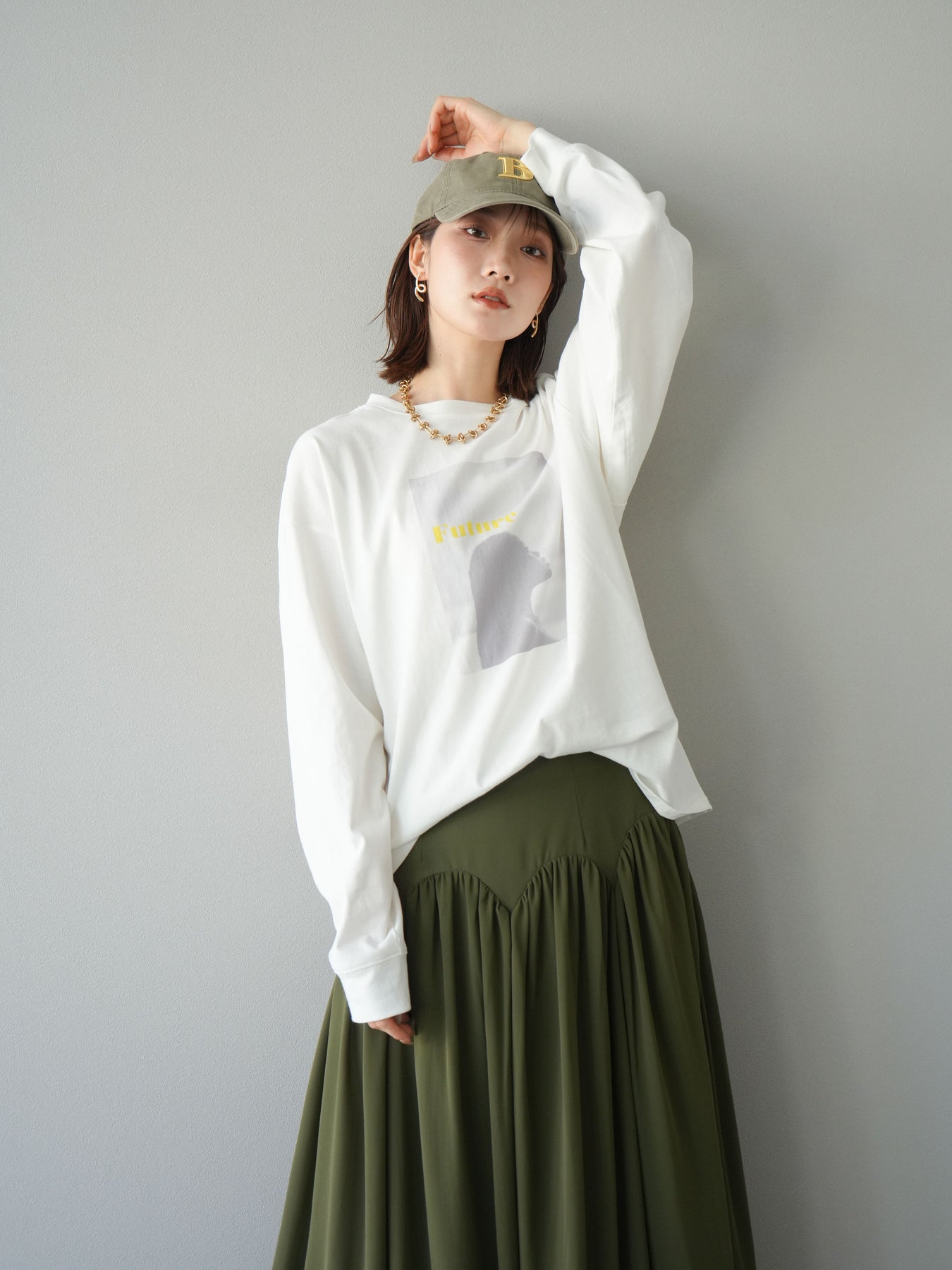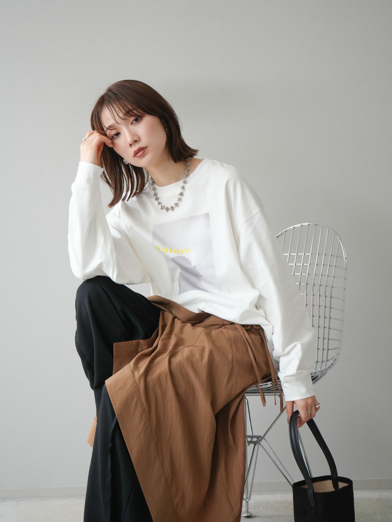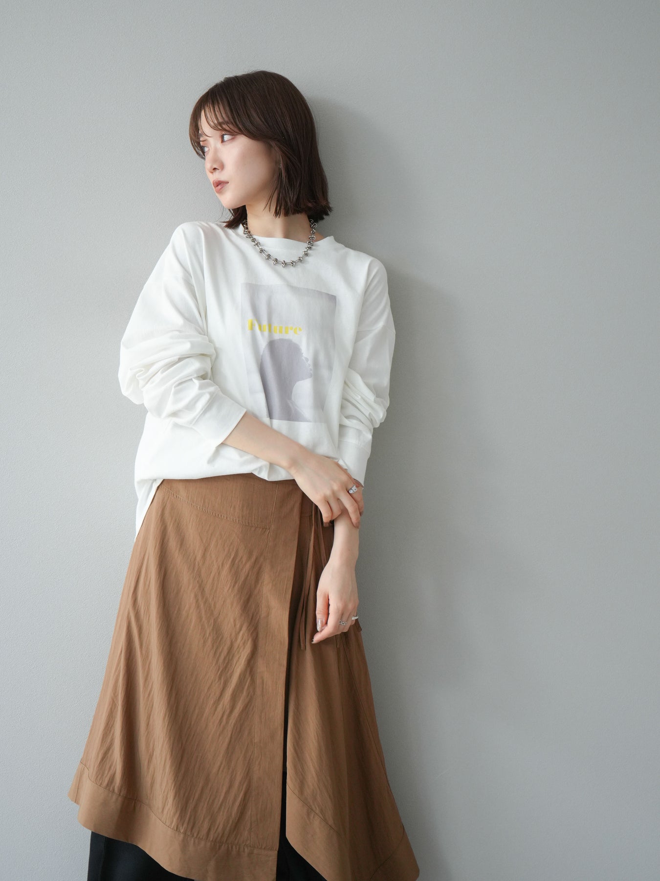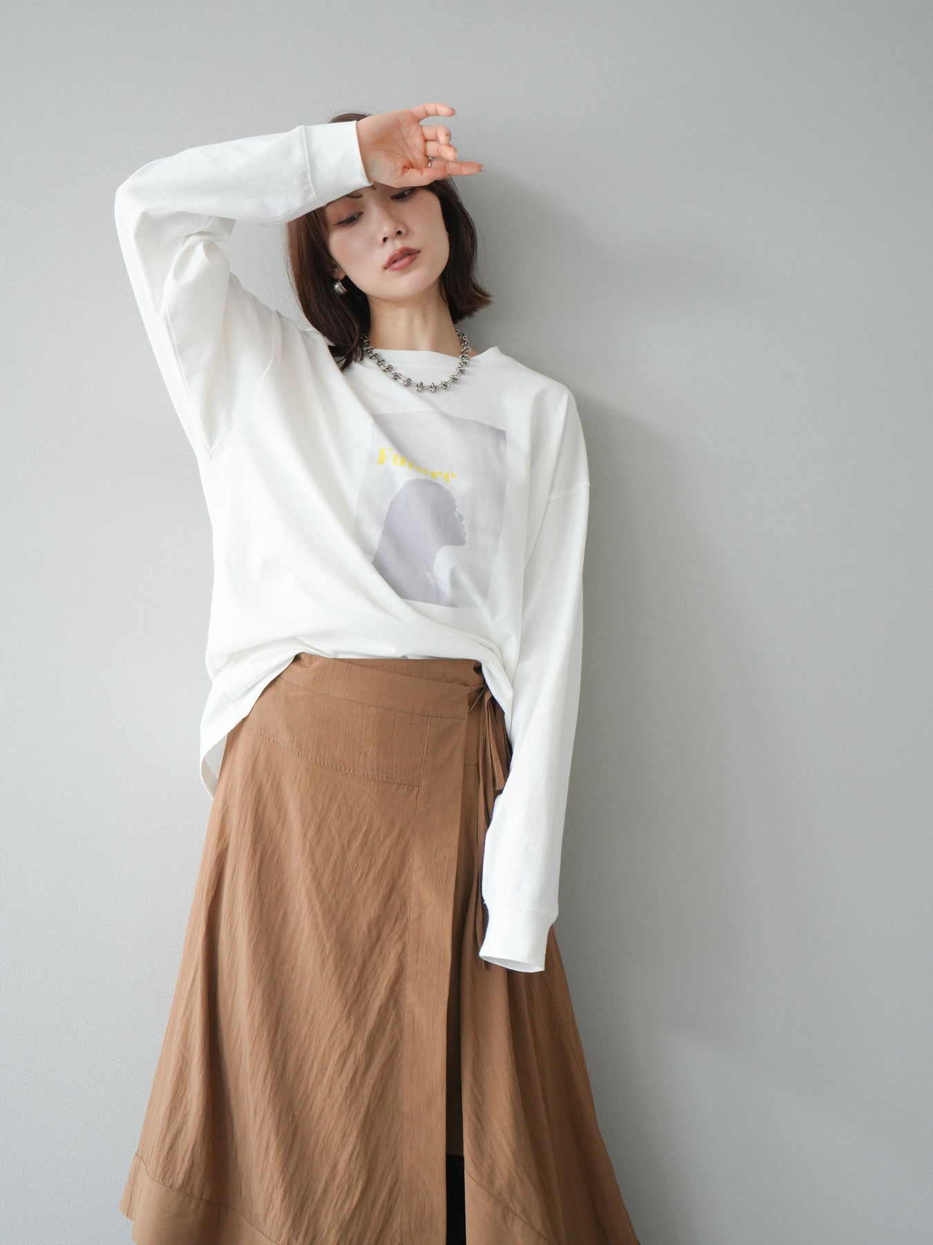 柔らかな肌触りのコットン素材に、印象的なウーマンフォトプリントを施したBIGロンT。ゆったりとしたシルエットで、抜け感のあるスタイリングが楽しめます。シンプルながらもプリントがアクセントとなり、カジュアルからモードまで幅広く活躍する1枚です。ヒップが隠れる丈感で体型カバーも叶えます。 ※ボトムス、キャミソール(インナー)以外の商品は一律でインナーは付属していません