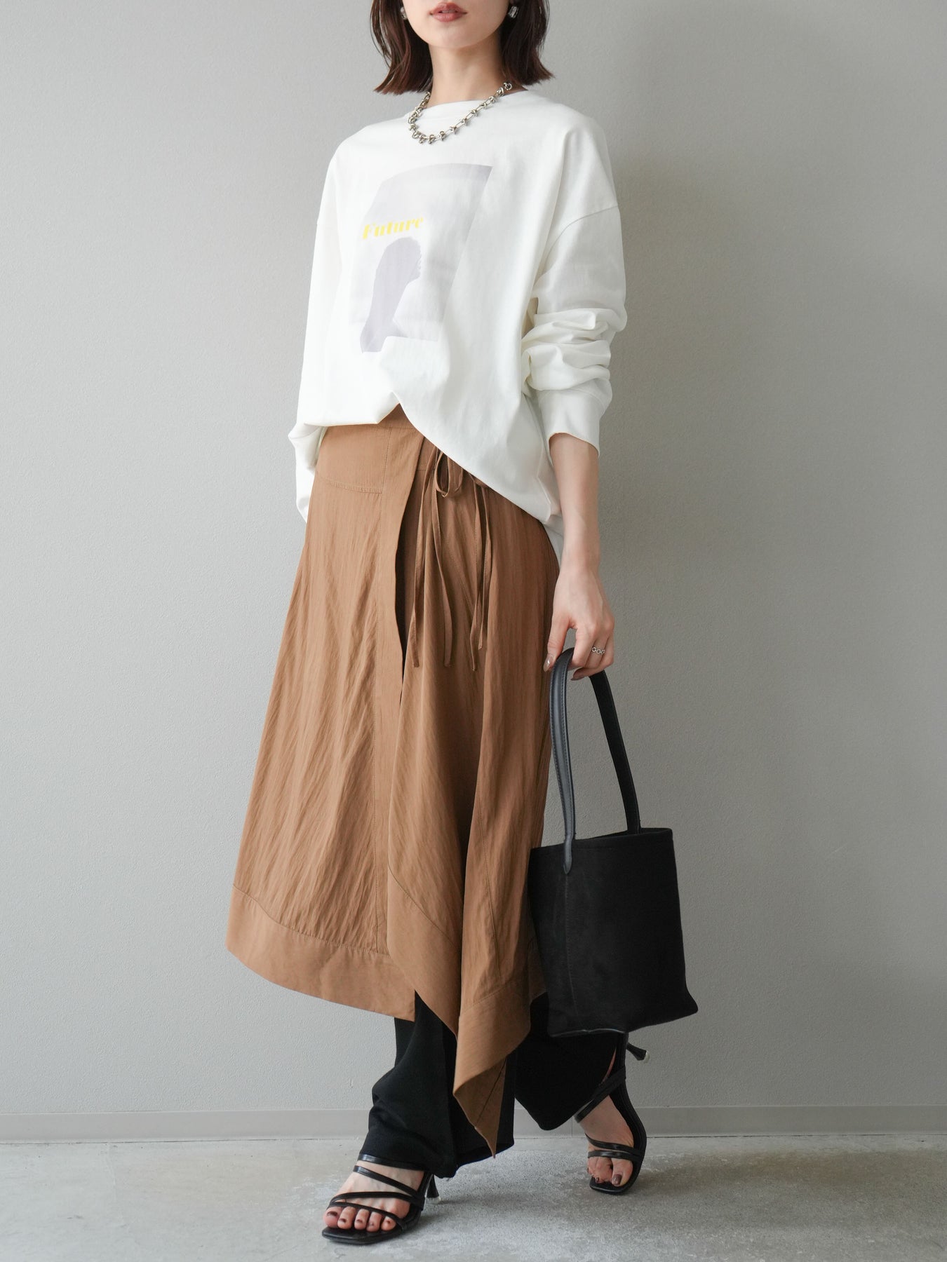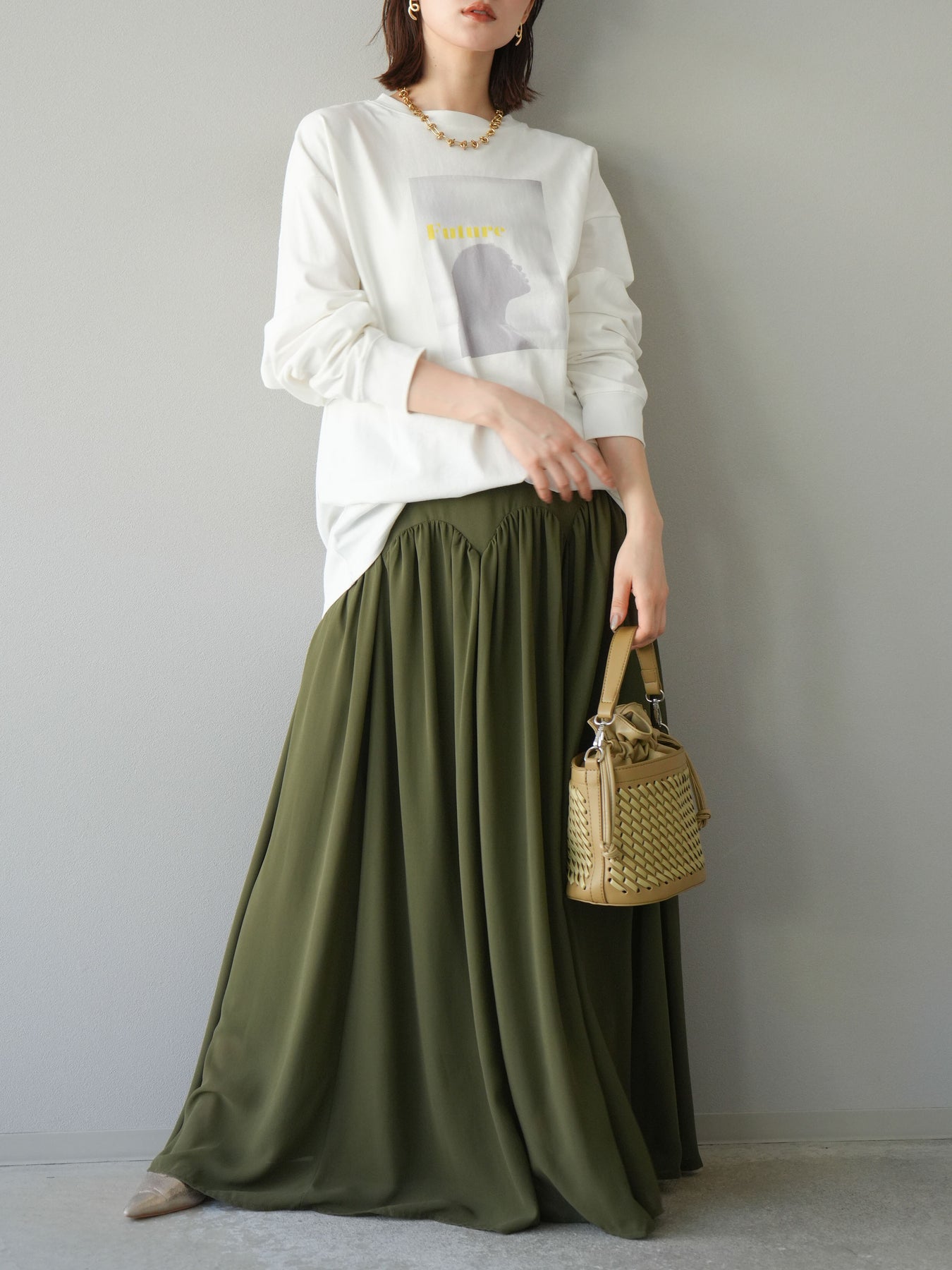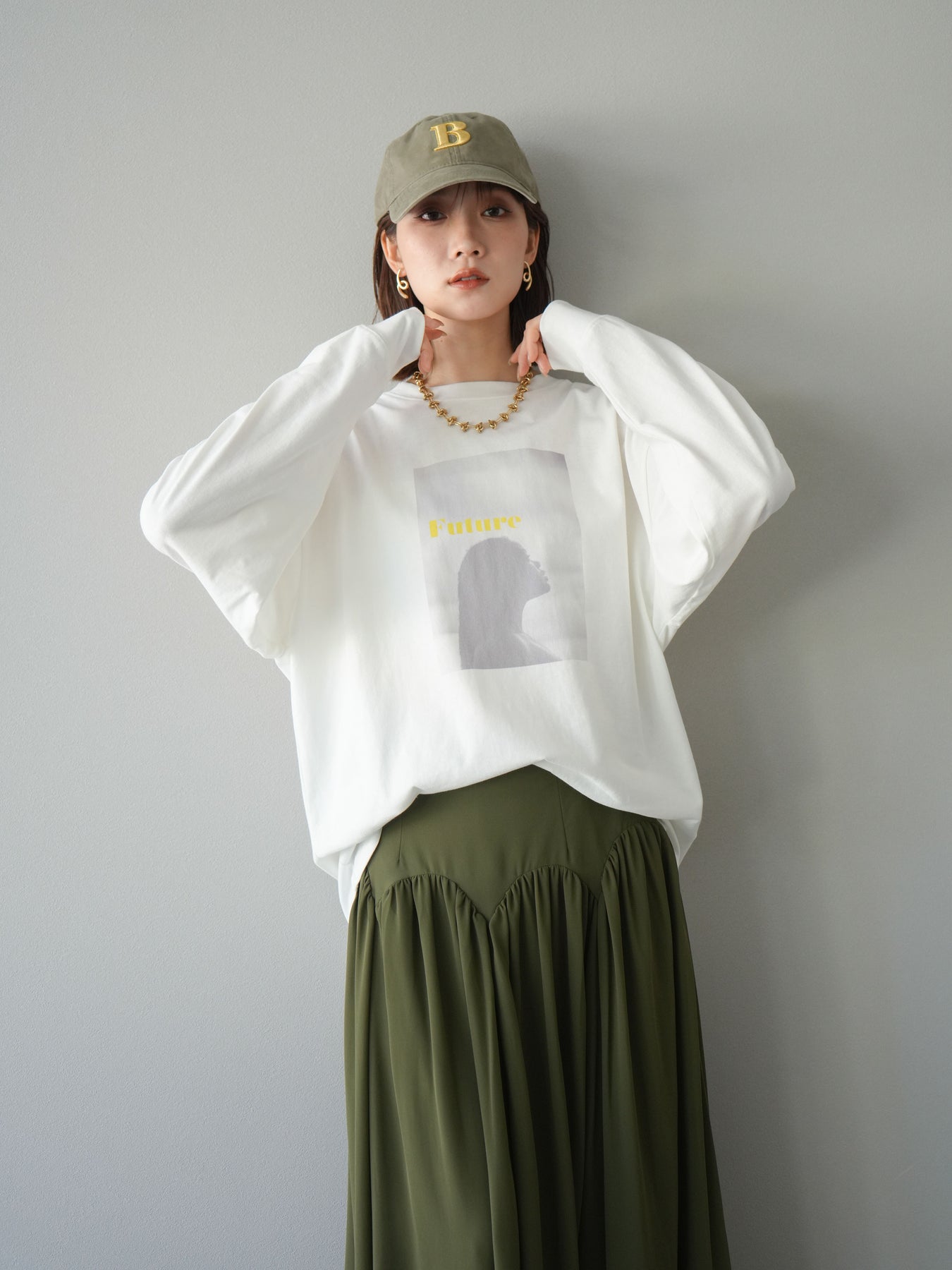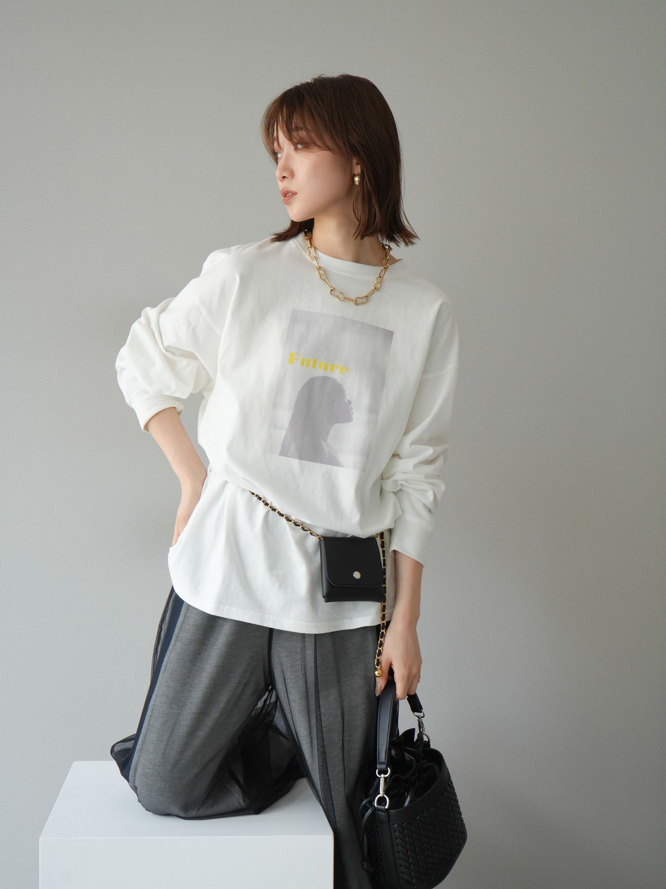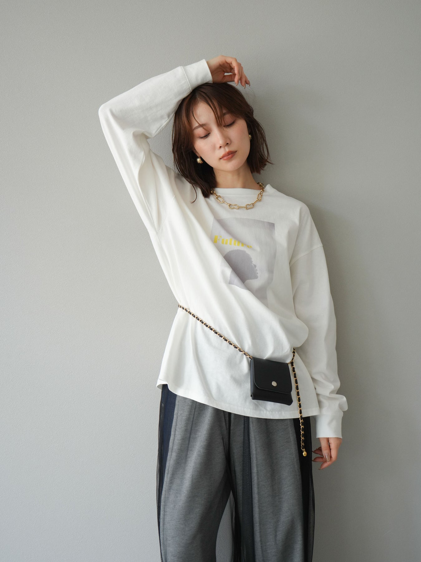 柔らかな肌触りのコットン素材に、印象的なウーマンフォトプリントを施したBIGロンT。ゆったりとしたシルエットで、抜け感のあるスタイリングが楽しめます。シンプルながらもプリントがアクセントとなり、カジュアルからモードまで幅広く活躍する1枚です。ヒップが隠れる丈感で体型カバーも叶えます。 ※ボトムス、キャミソール(インナー)以外の商品は一律でインナーは付属していません