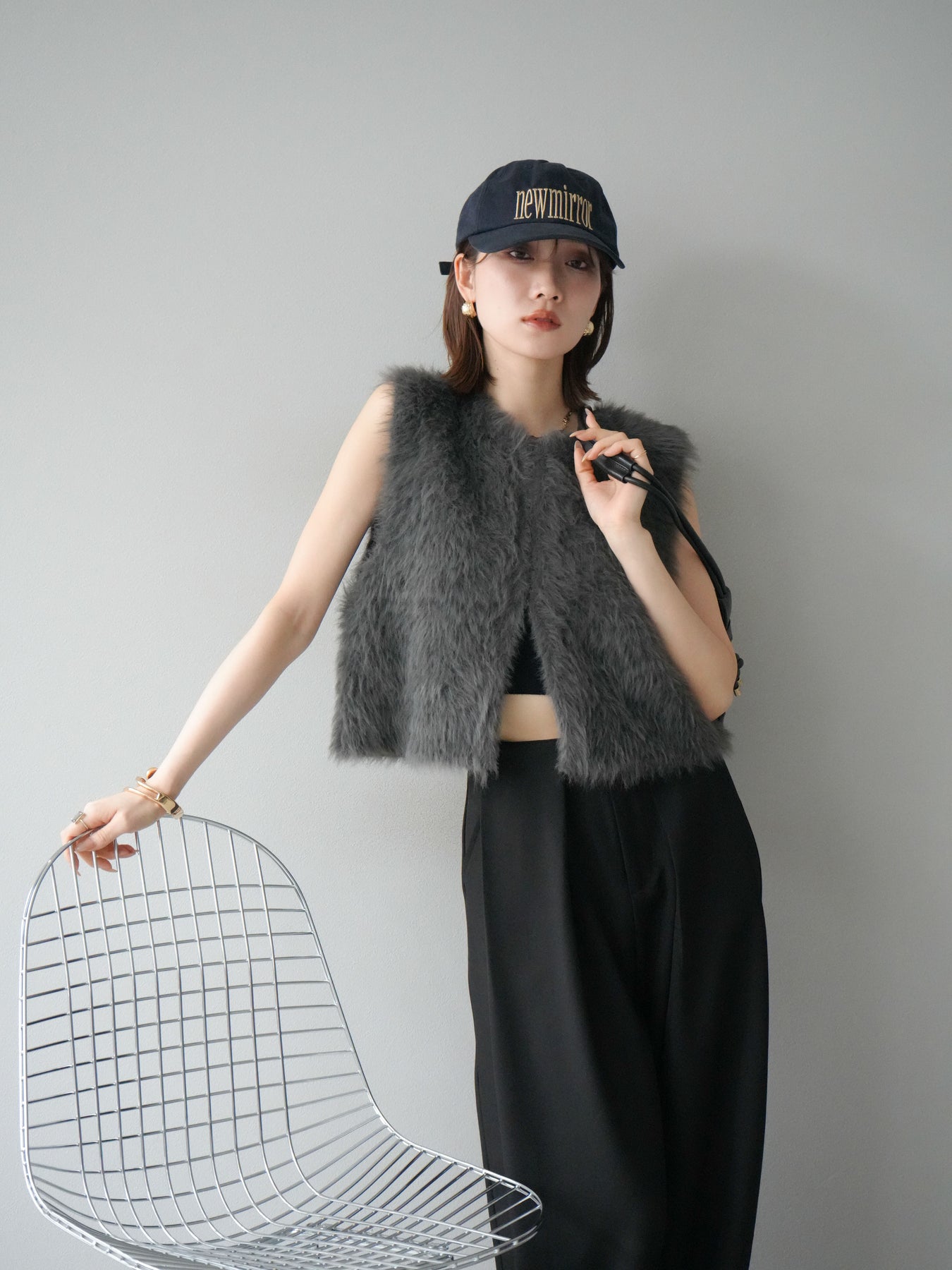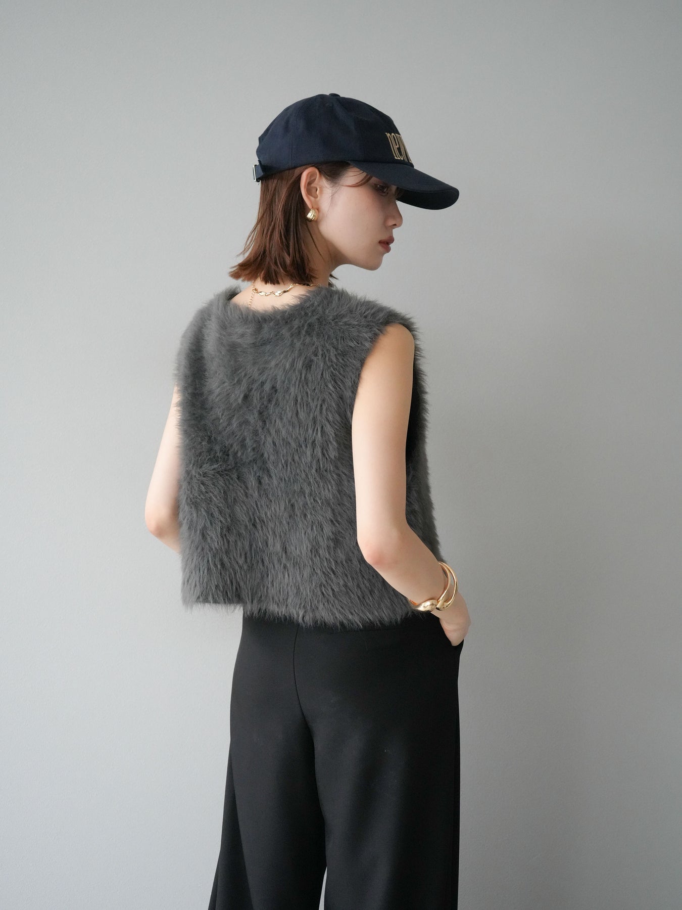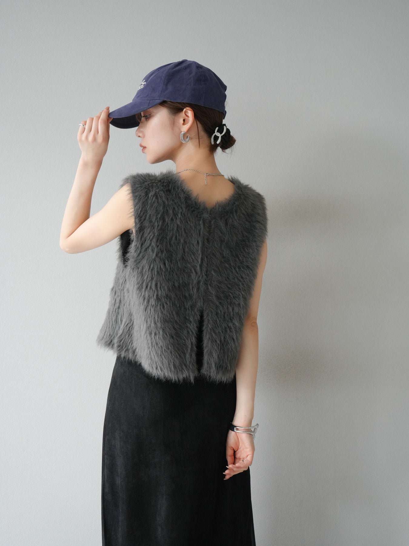 [予約]ミンクライク前後2WAYショートジレ/チャコール