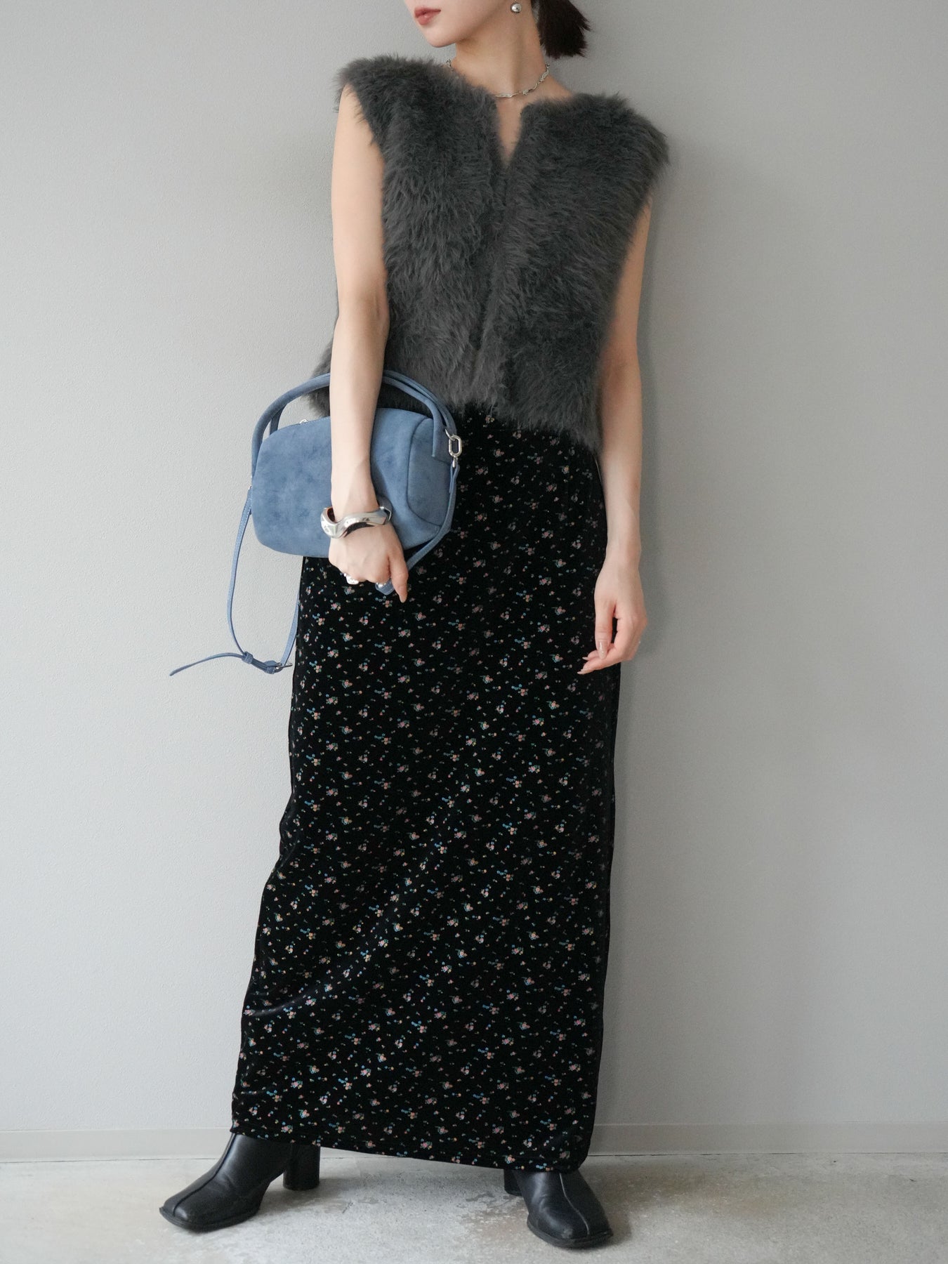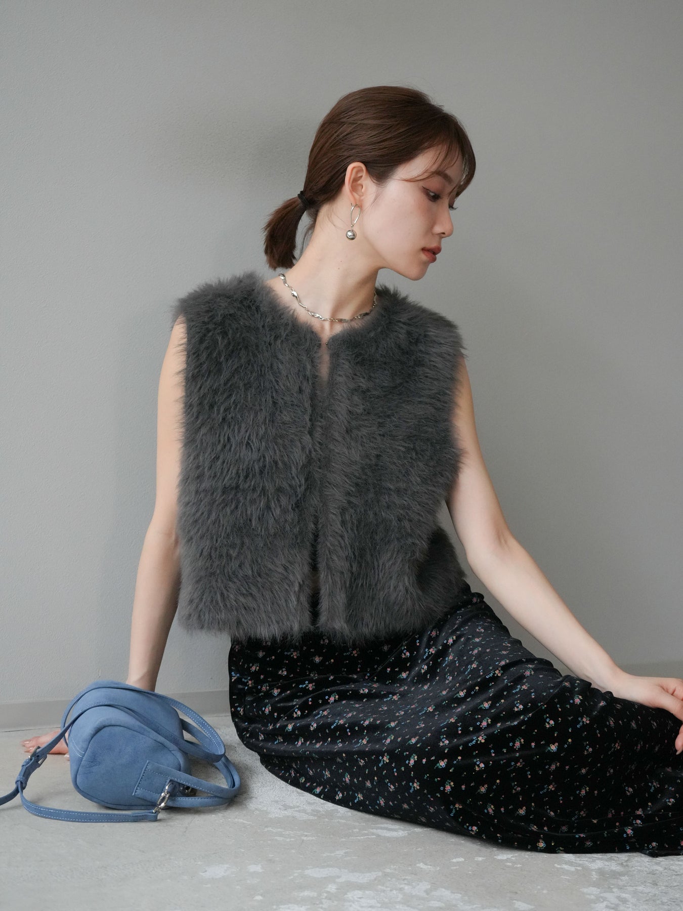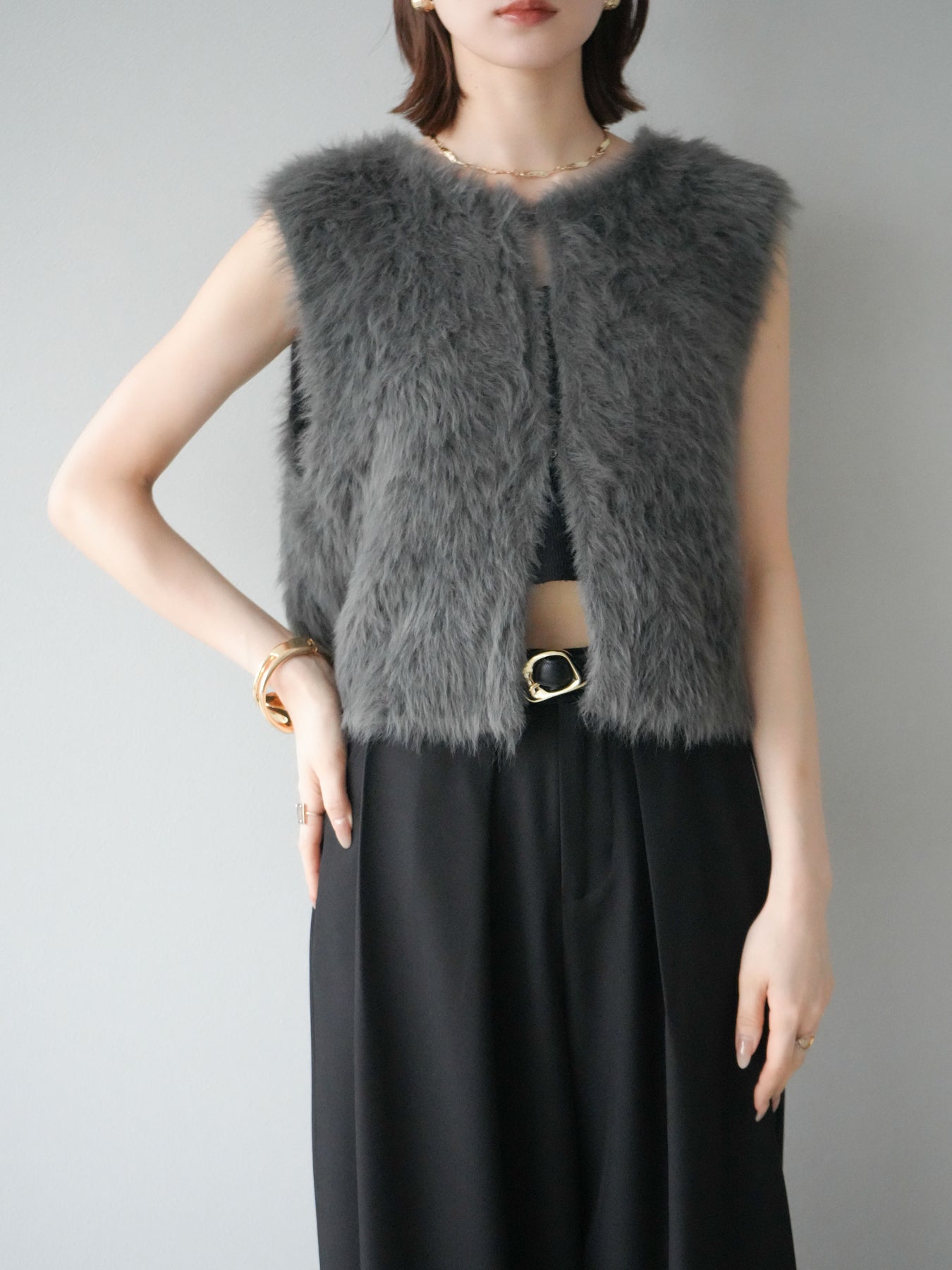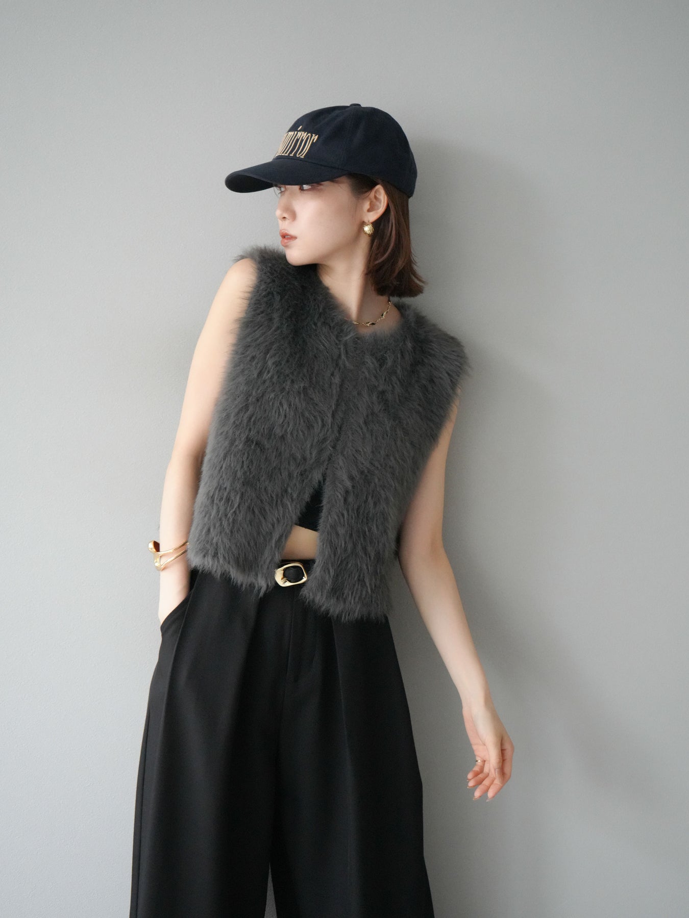 [予約]ミンクライク前後2WAYショートジレ/チャコール