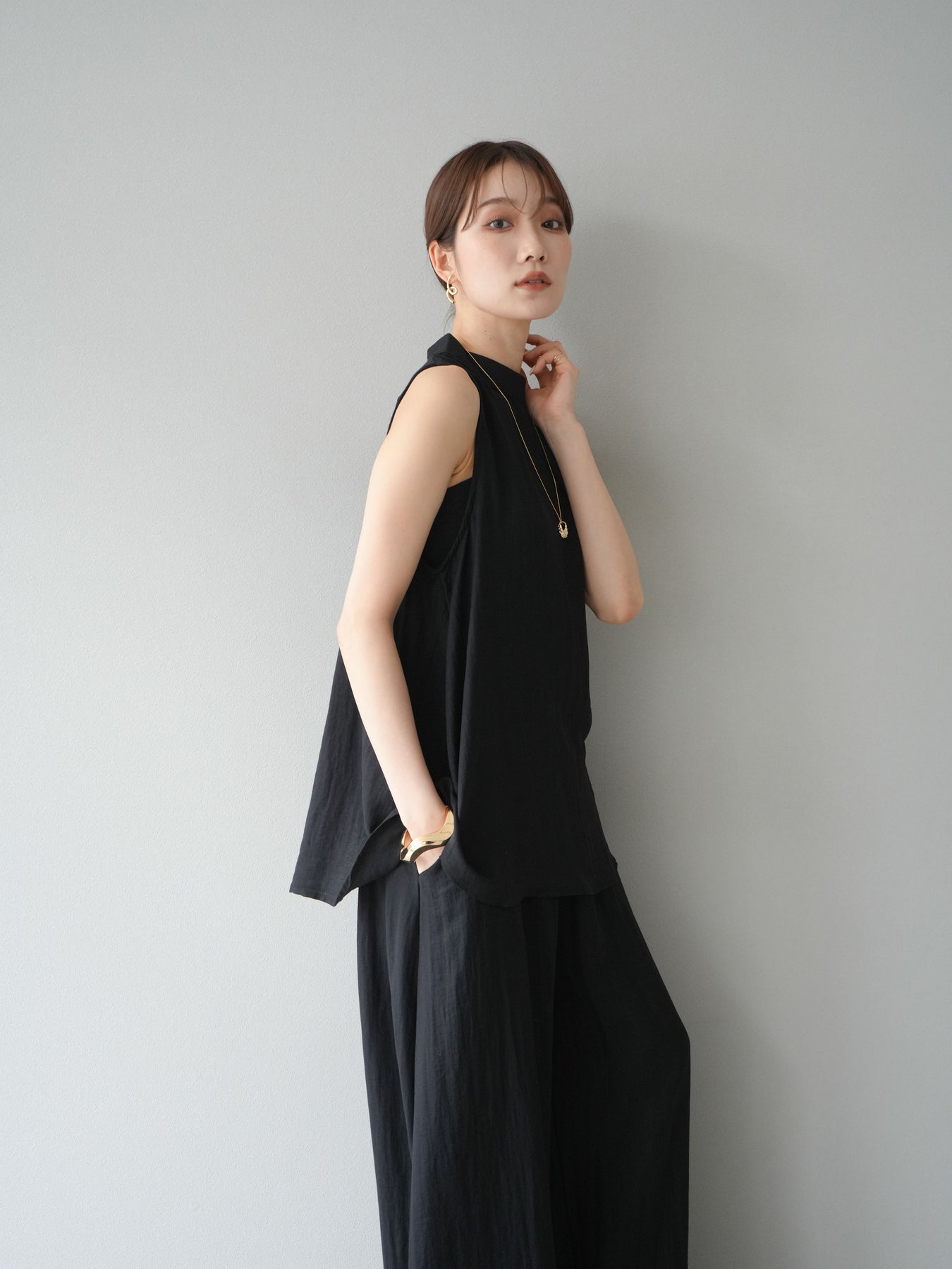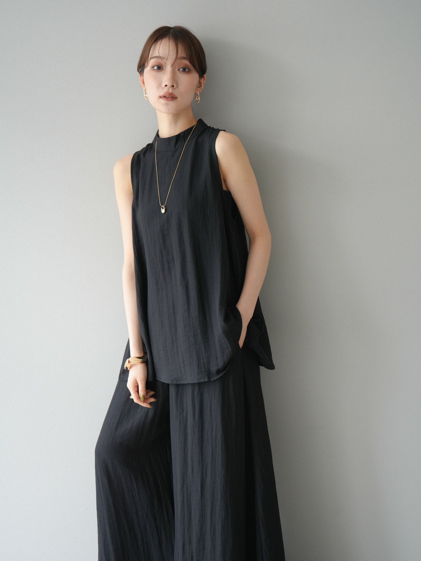 [SET]ホルターネックバックスリットブラウス&スーパーワイドパンツSET UP(2set)