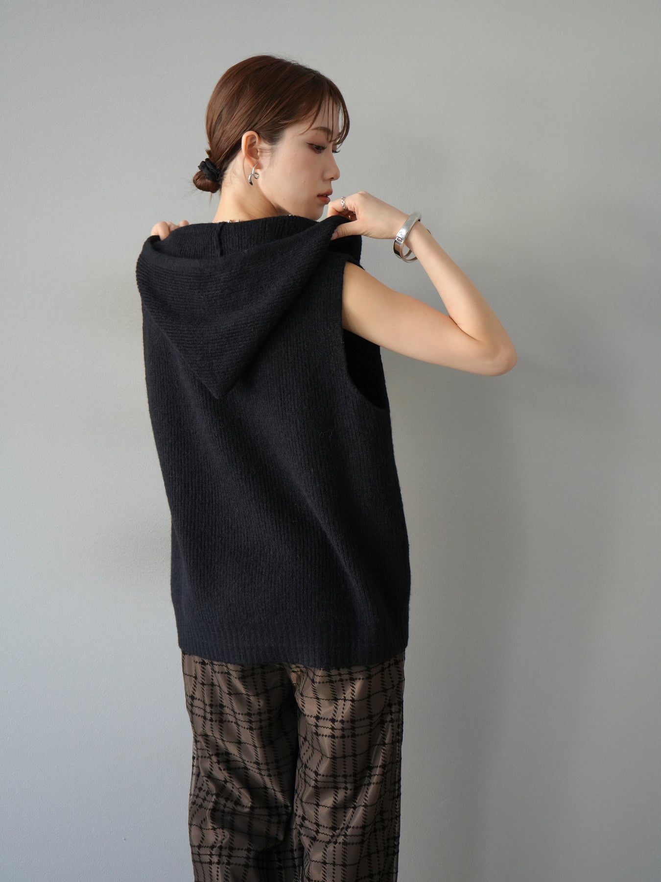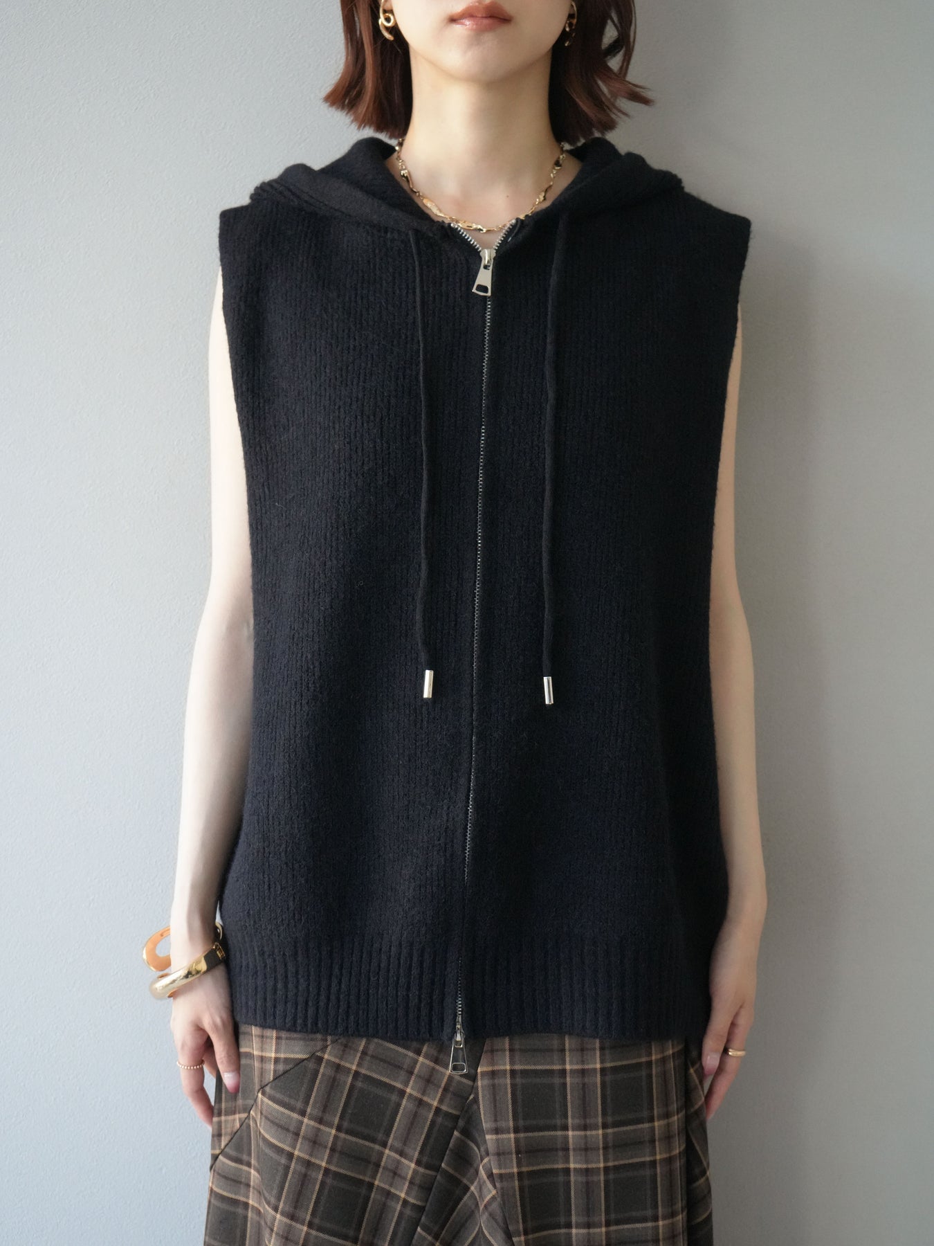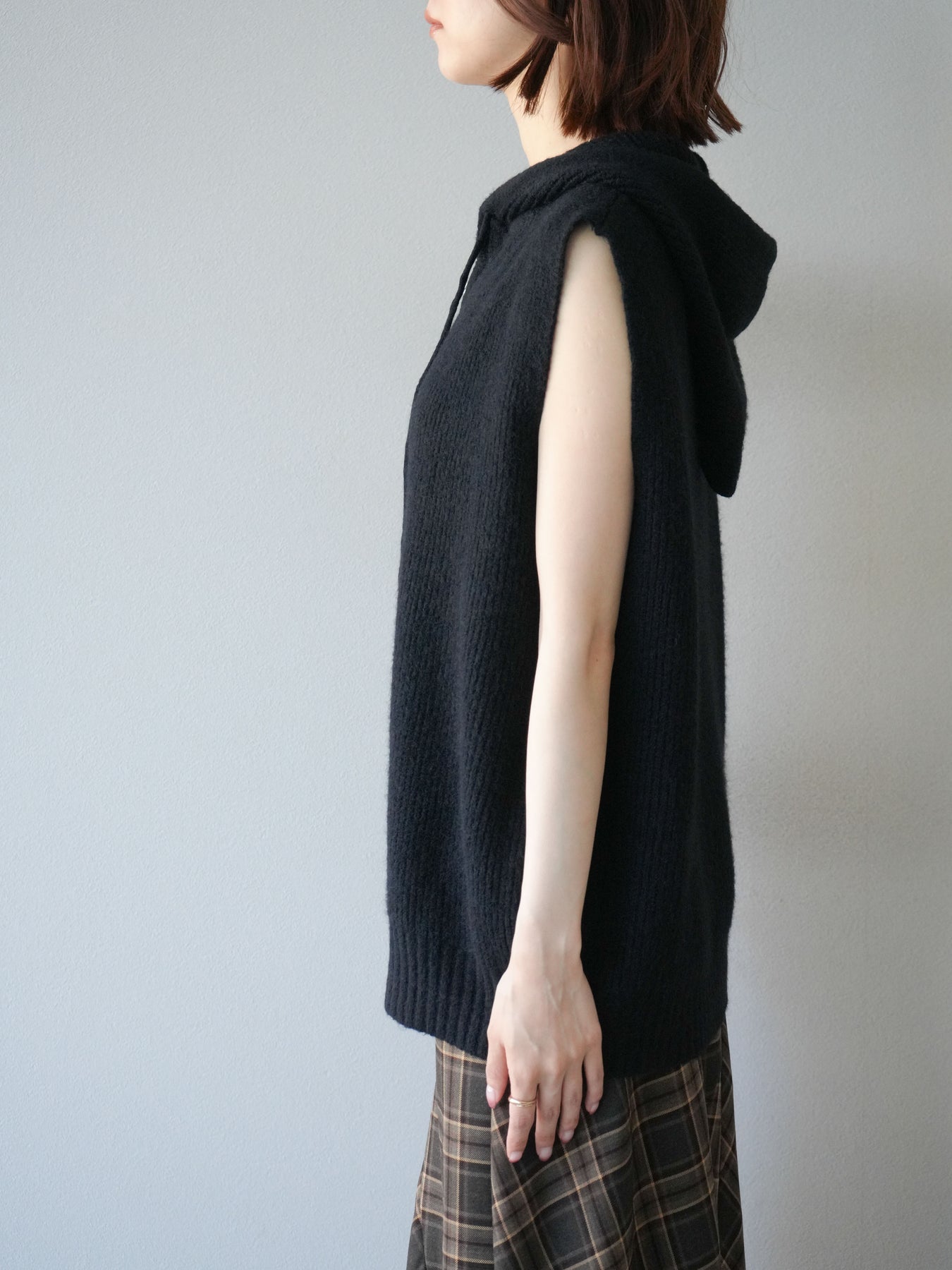 [予約]ノースリーブニットパーカー/ブラック