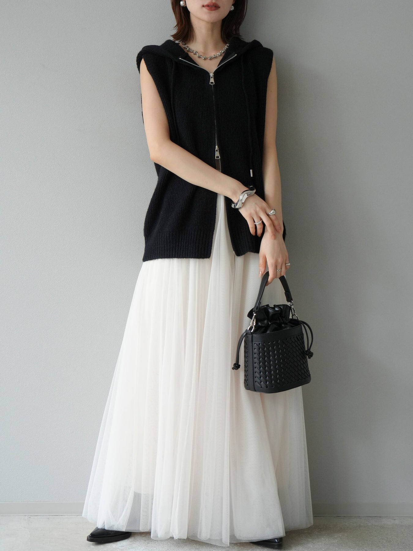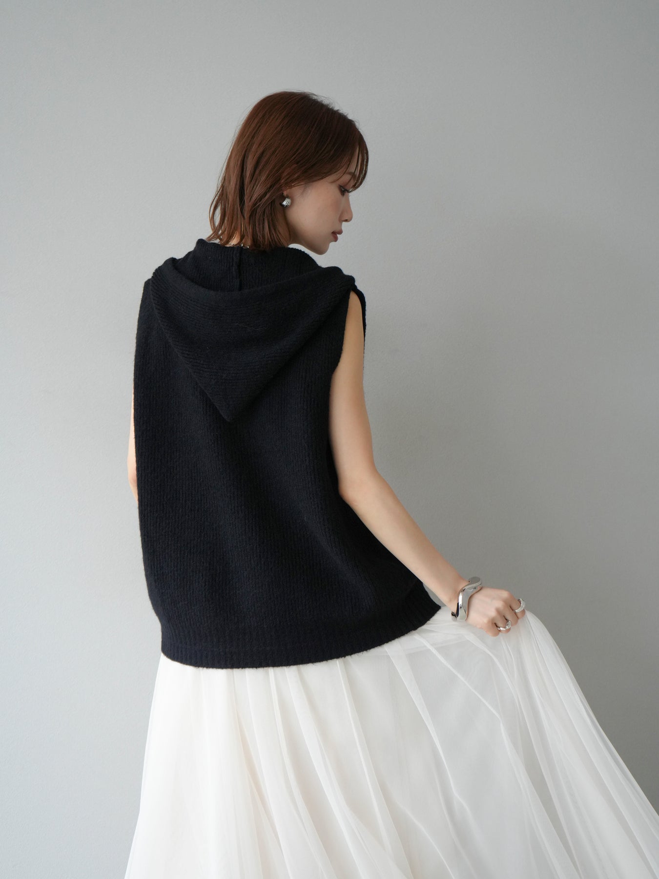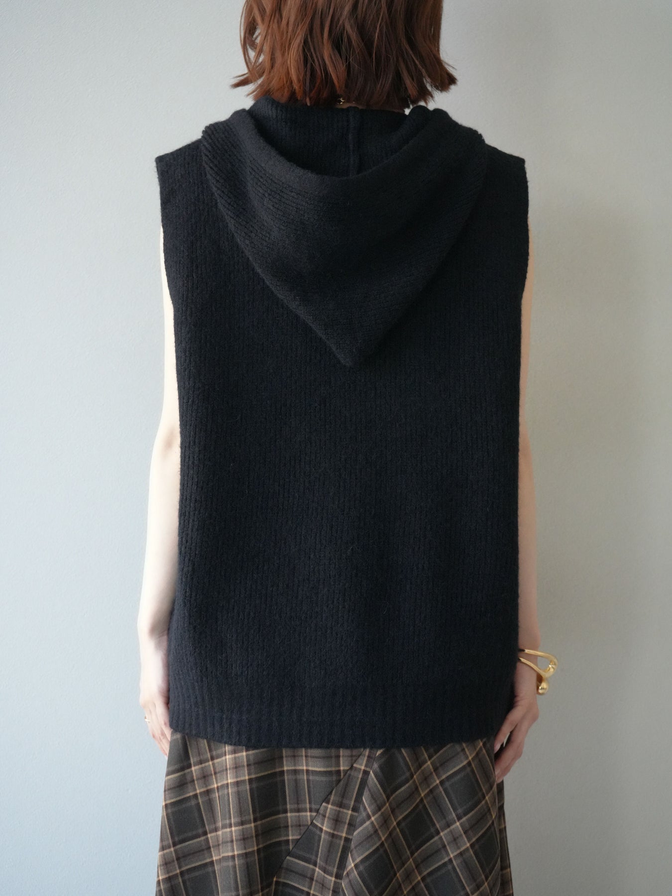 [予約]ノースリーブニットパーカー/ブラック