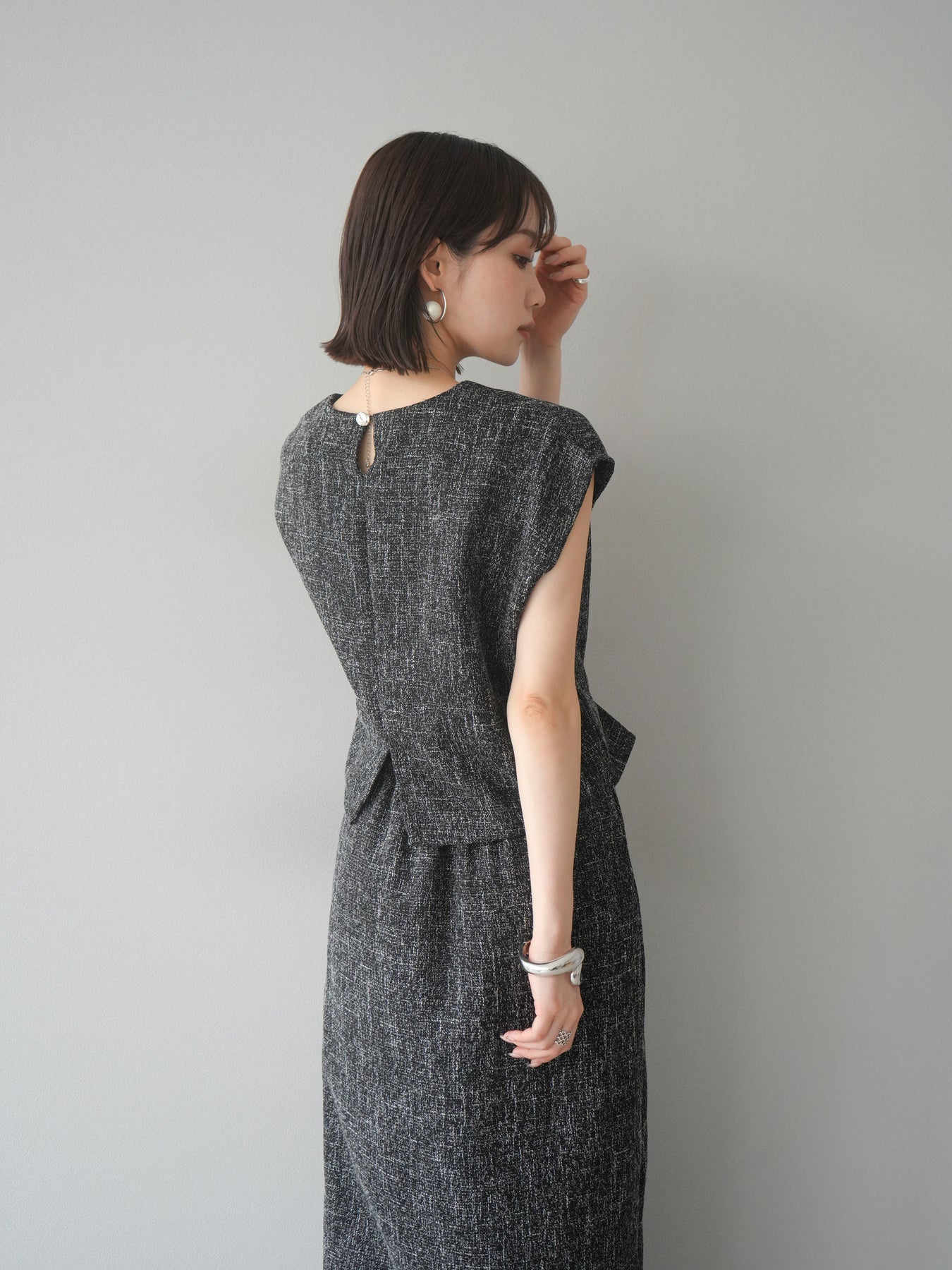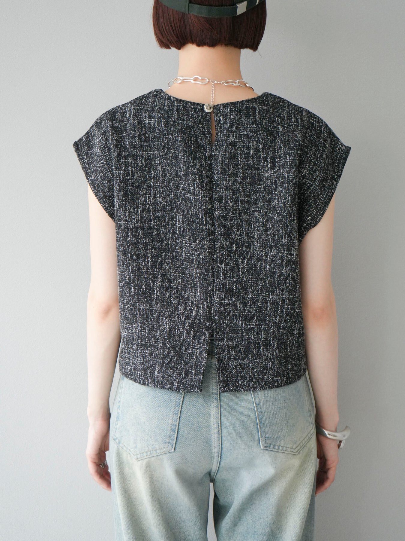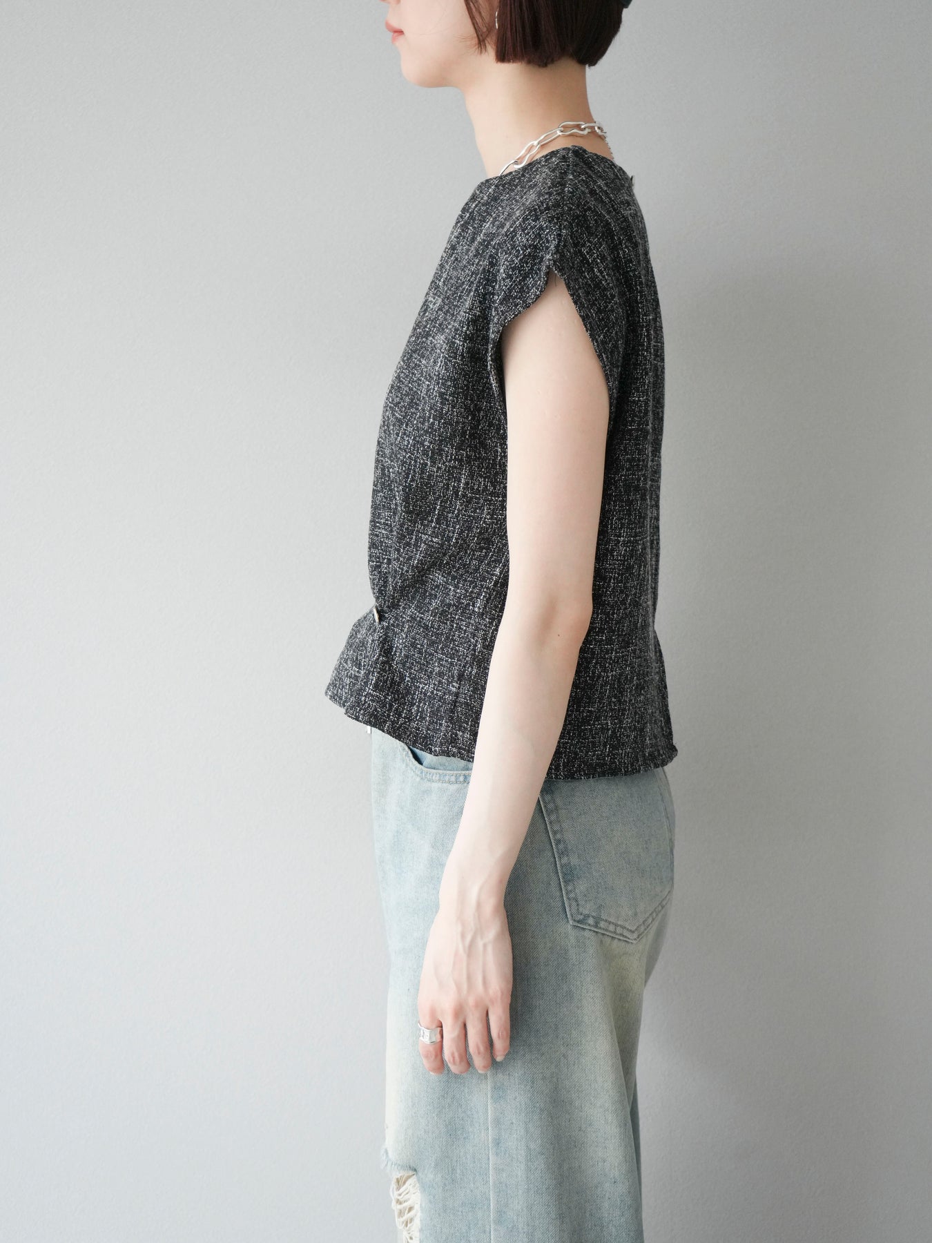 [予約]サマーツイードぺプラムブラウス/ブラックホワイト