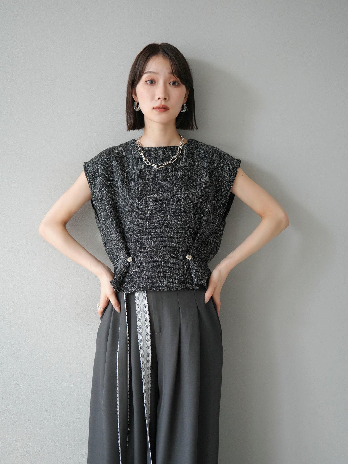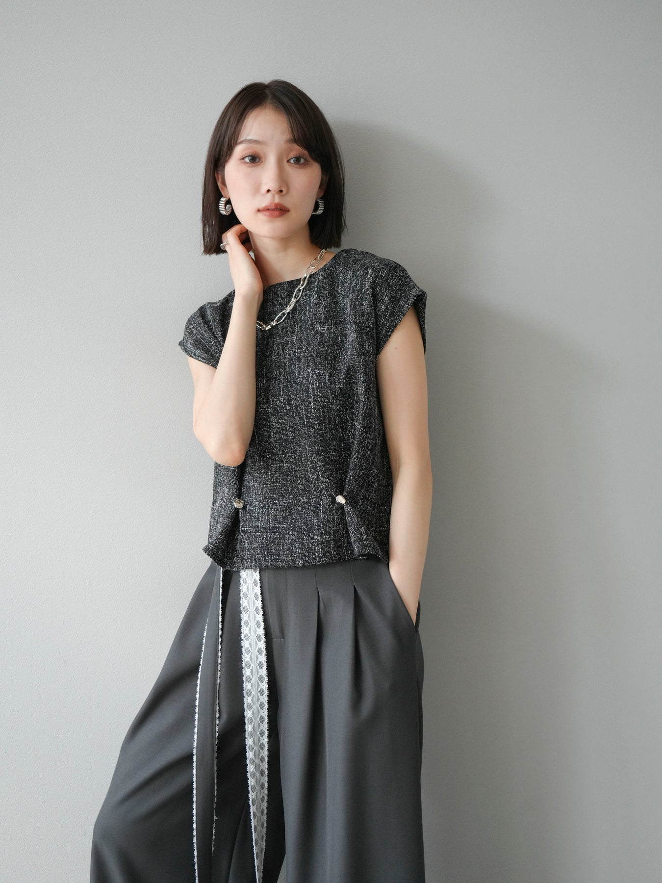 [予約]サマーツイードぺプラムブラウスに関連する商品を探す↓