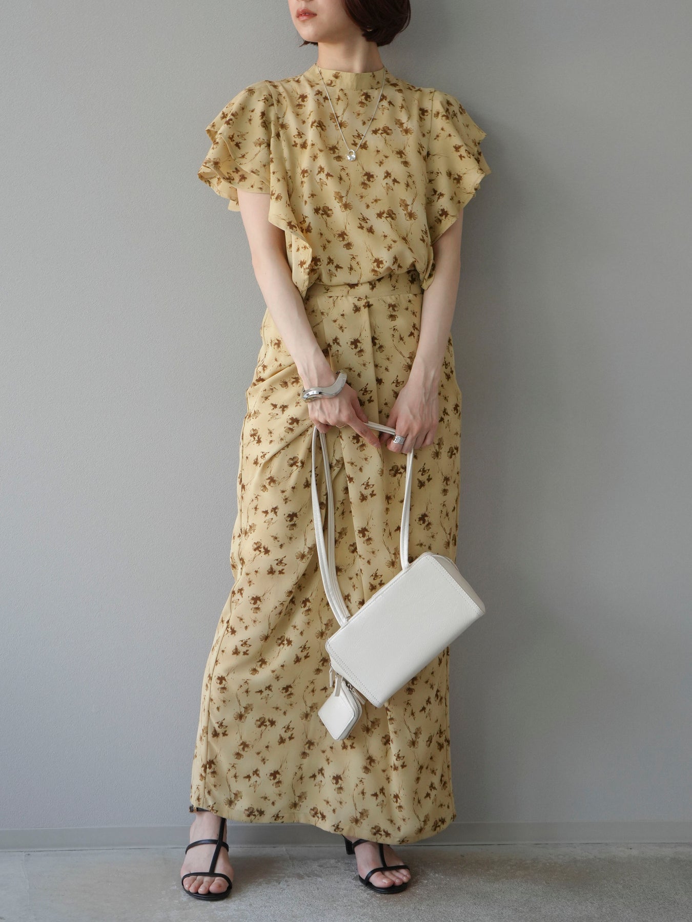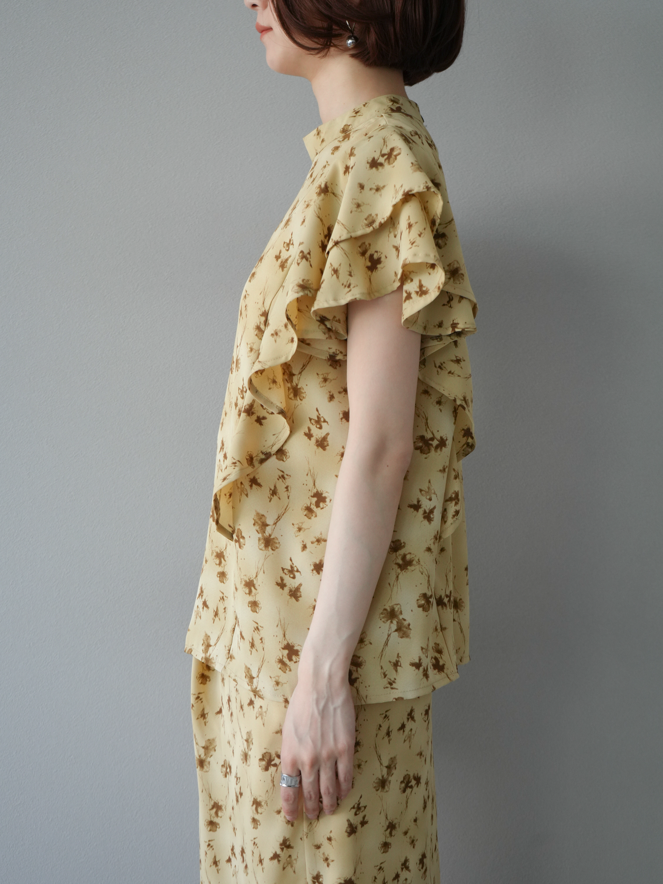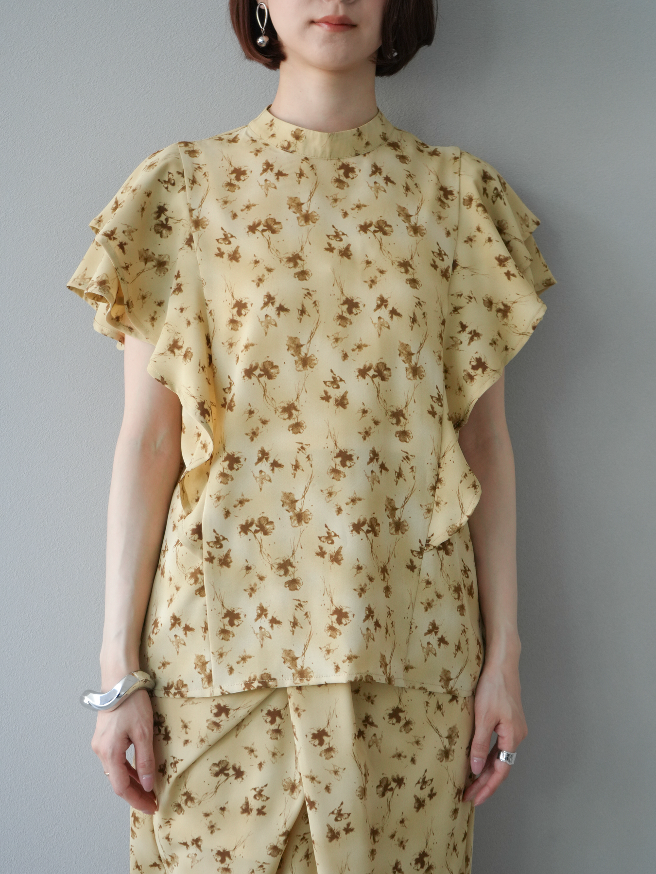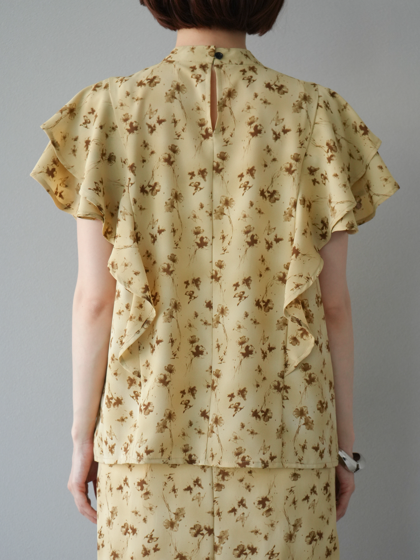 [予約]フラワーモチーフラッフルスリーブブラウス/ベージュ