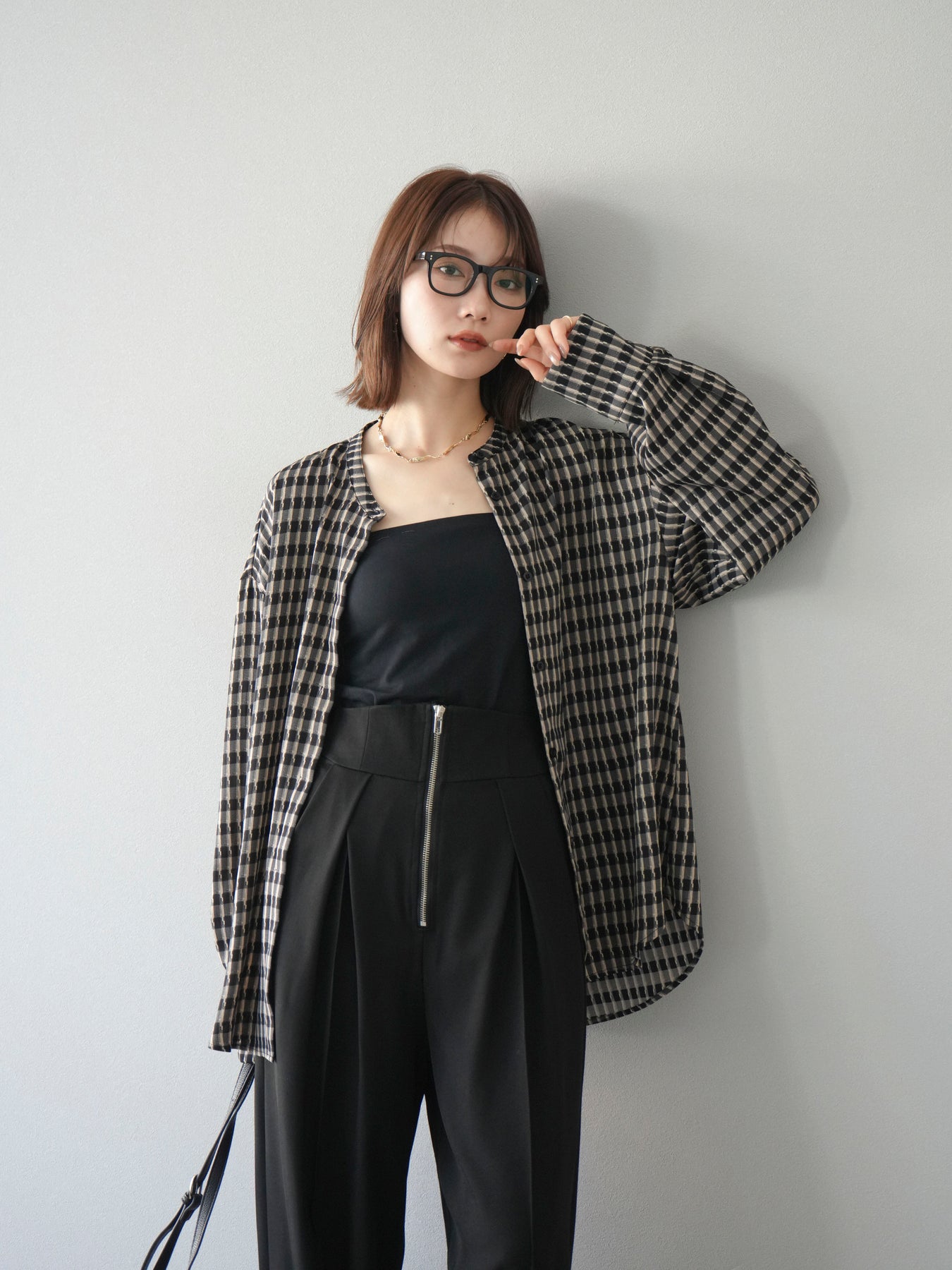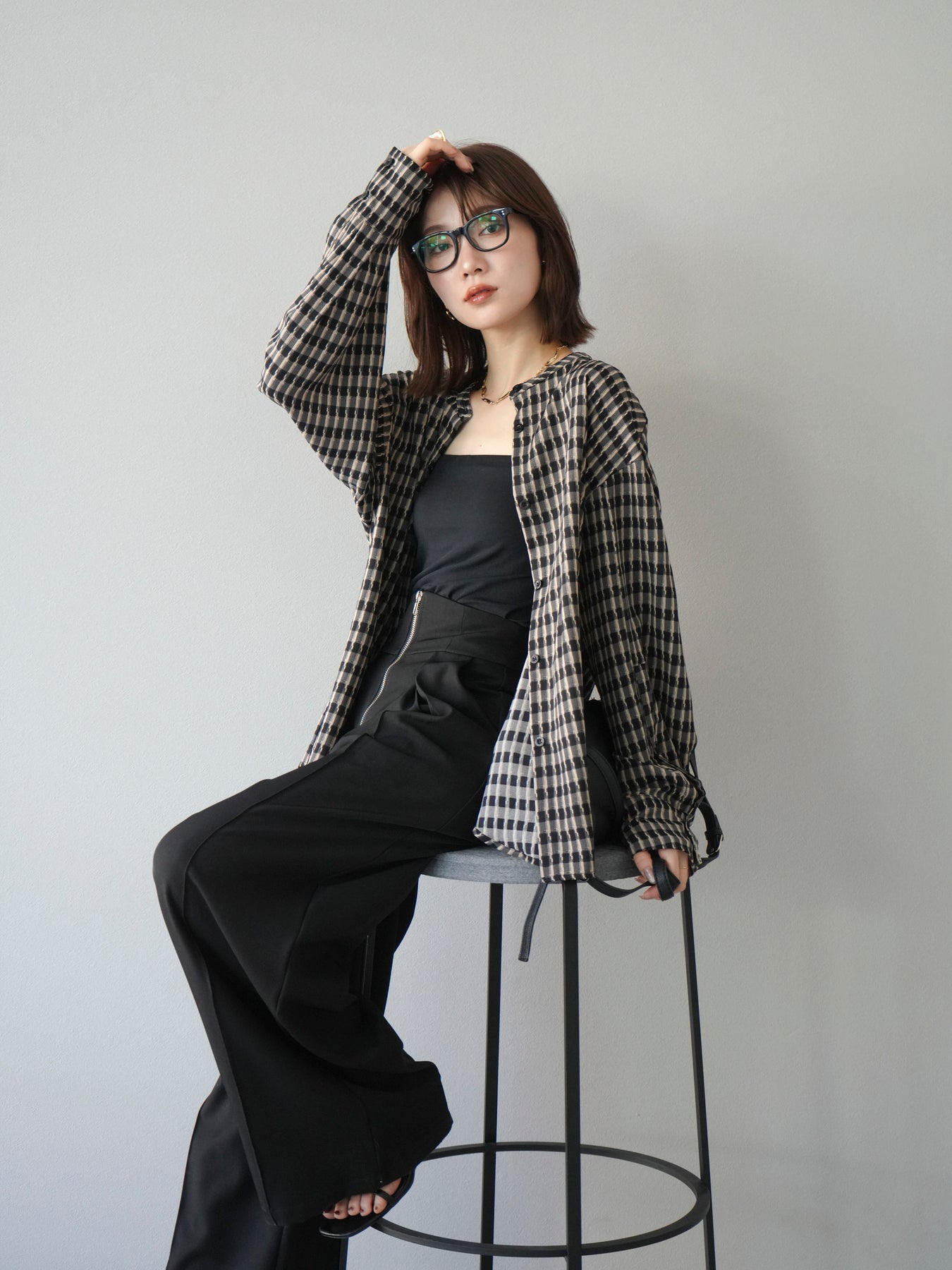 [予約]チェック柄2WAYスリーブバンドカラーシャツ/ベージュブラック