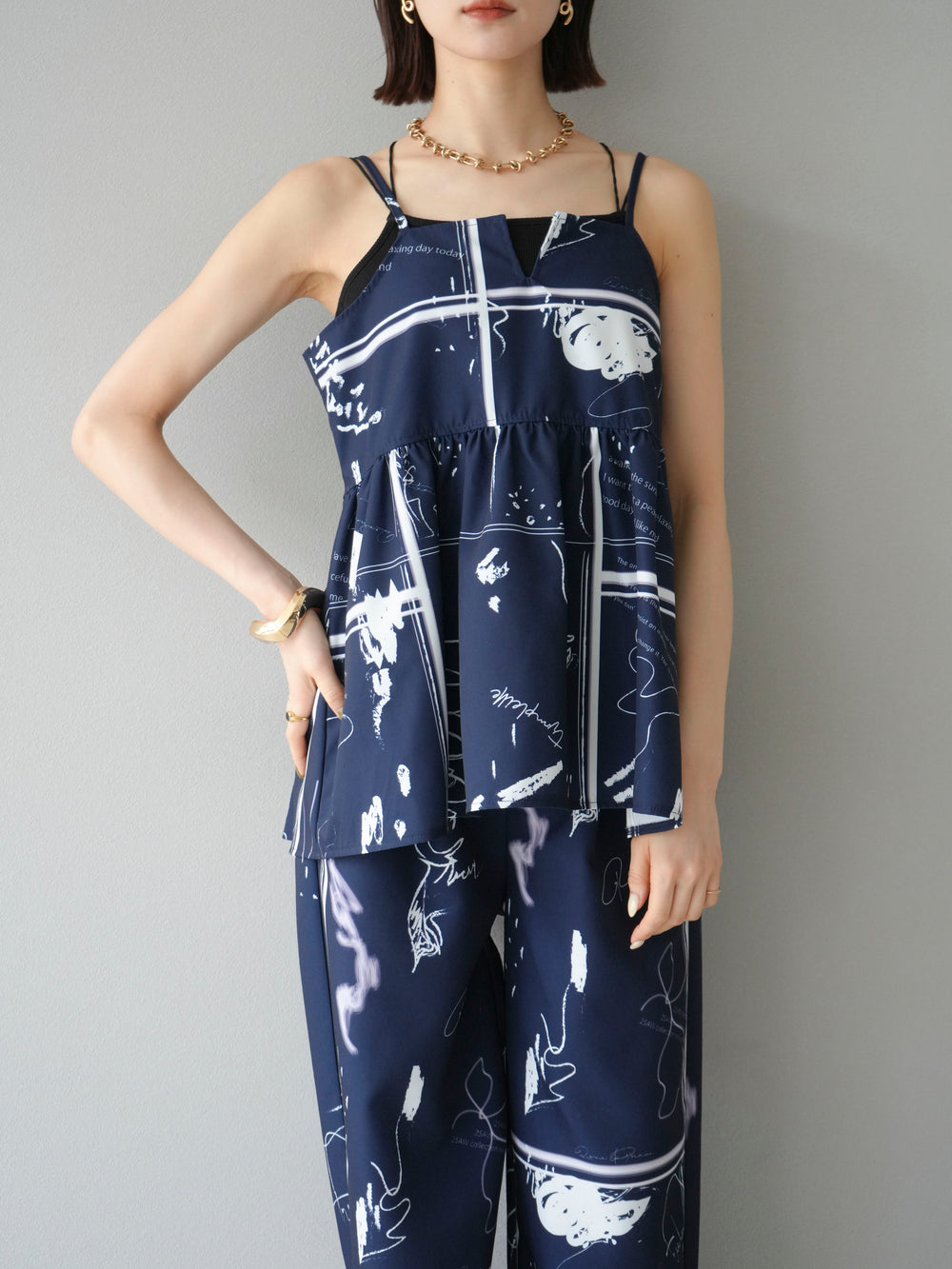 [予約]ペイント柄キャミソール/ネイビー