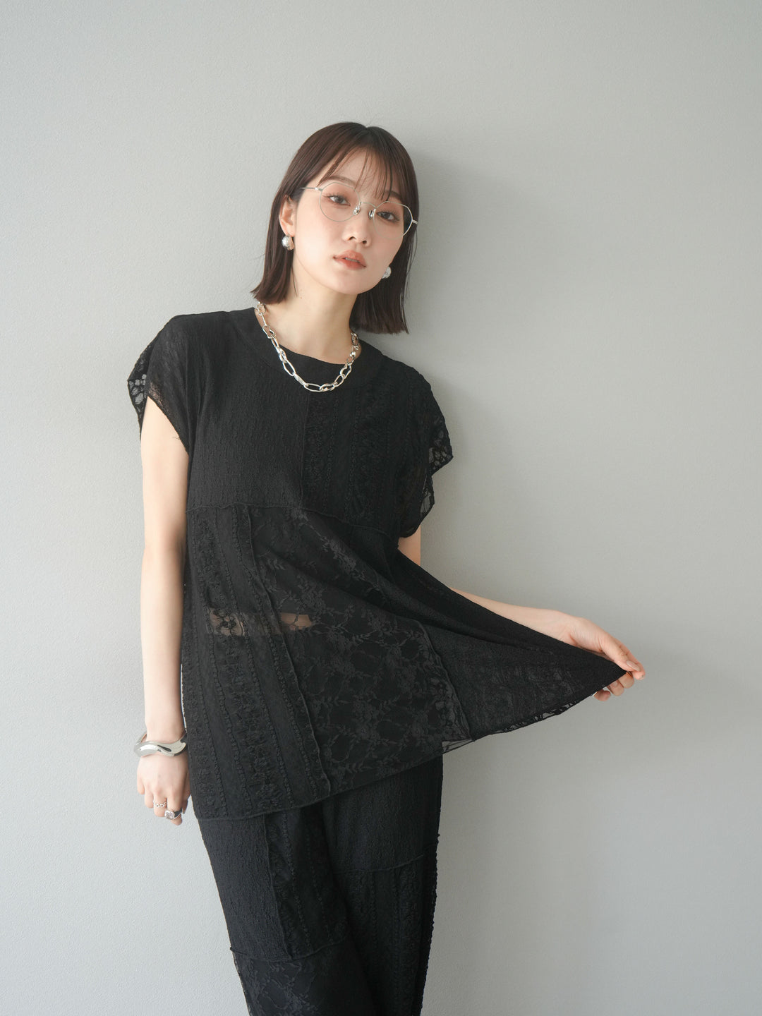 [予約]パッチワークレースフレンチプルオーバー/ブラック