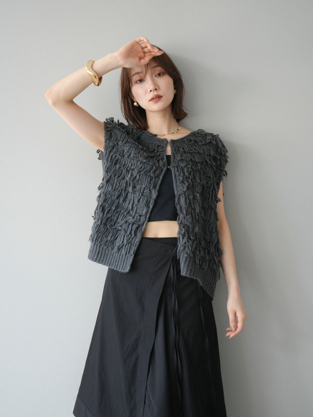 [予約]ループデザインベスト/チャコール