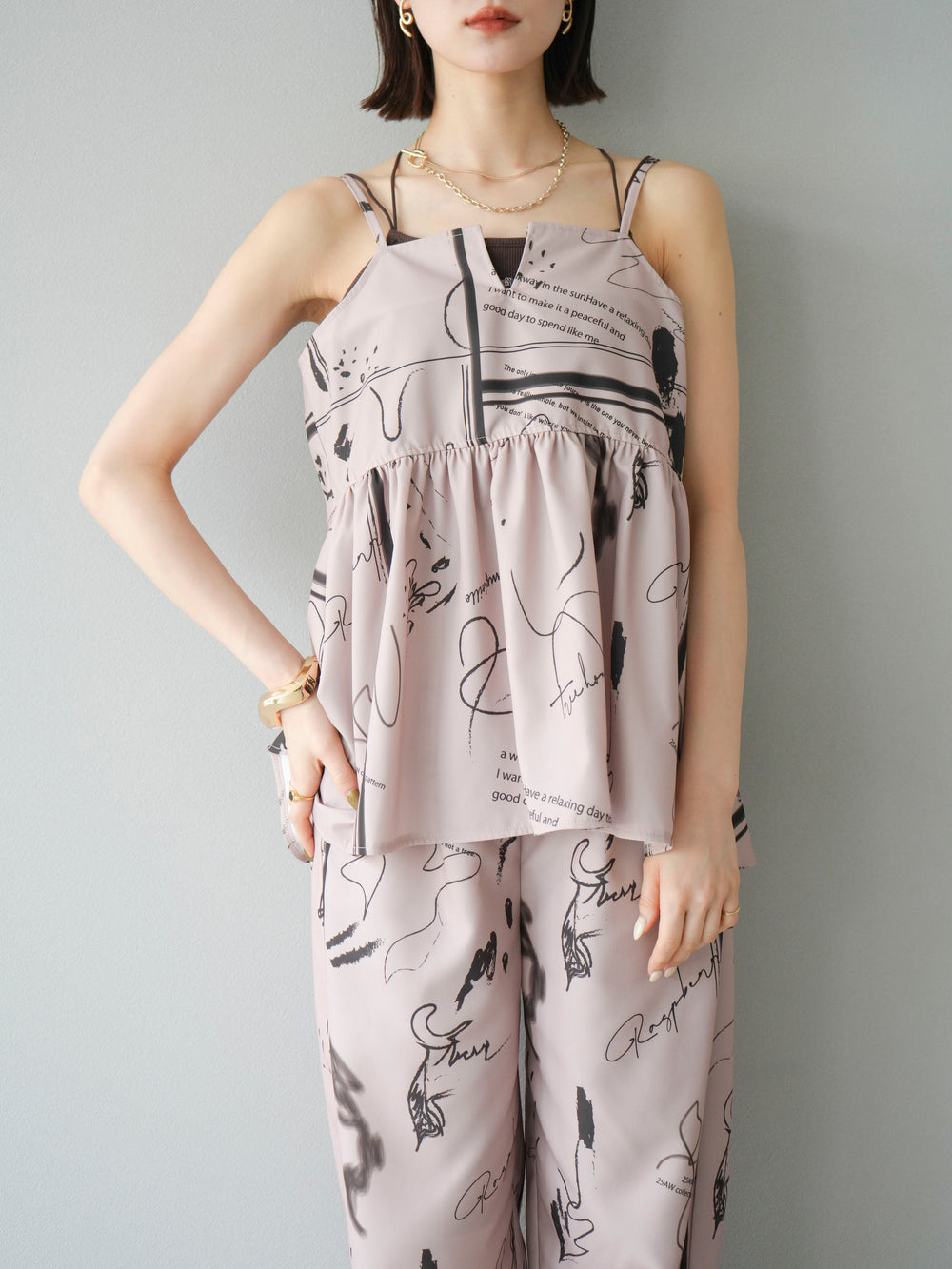 [予約]ペイント柄キャミソール/ベージュ
