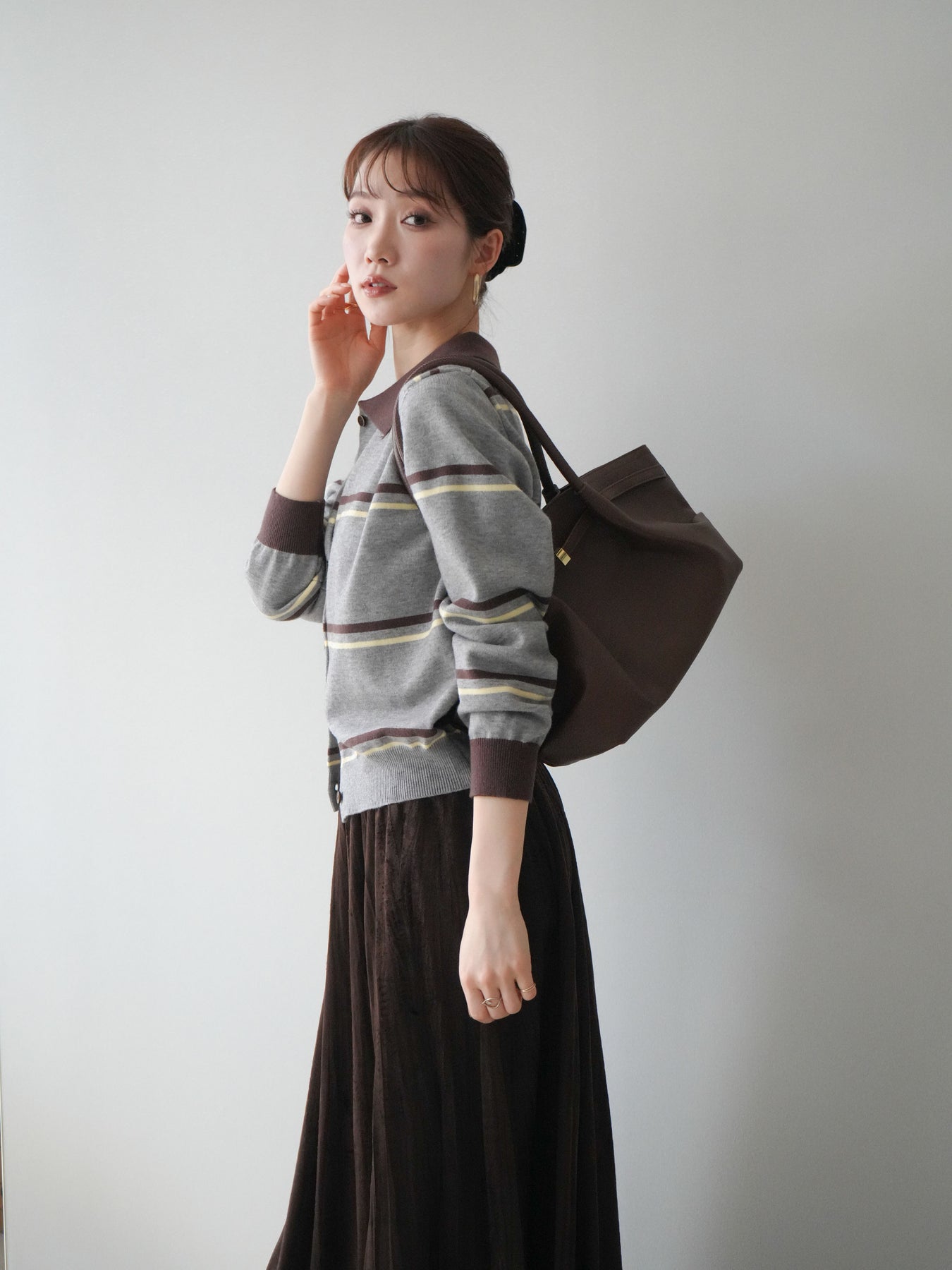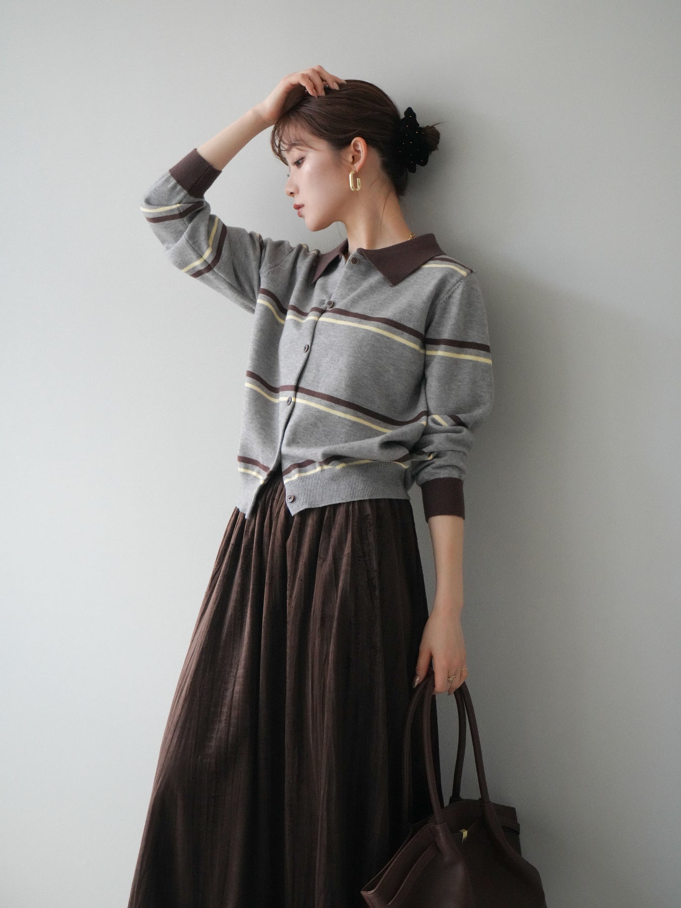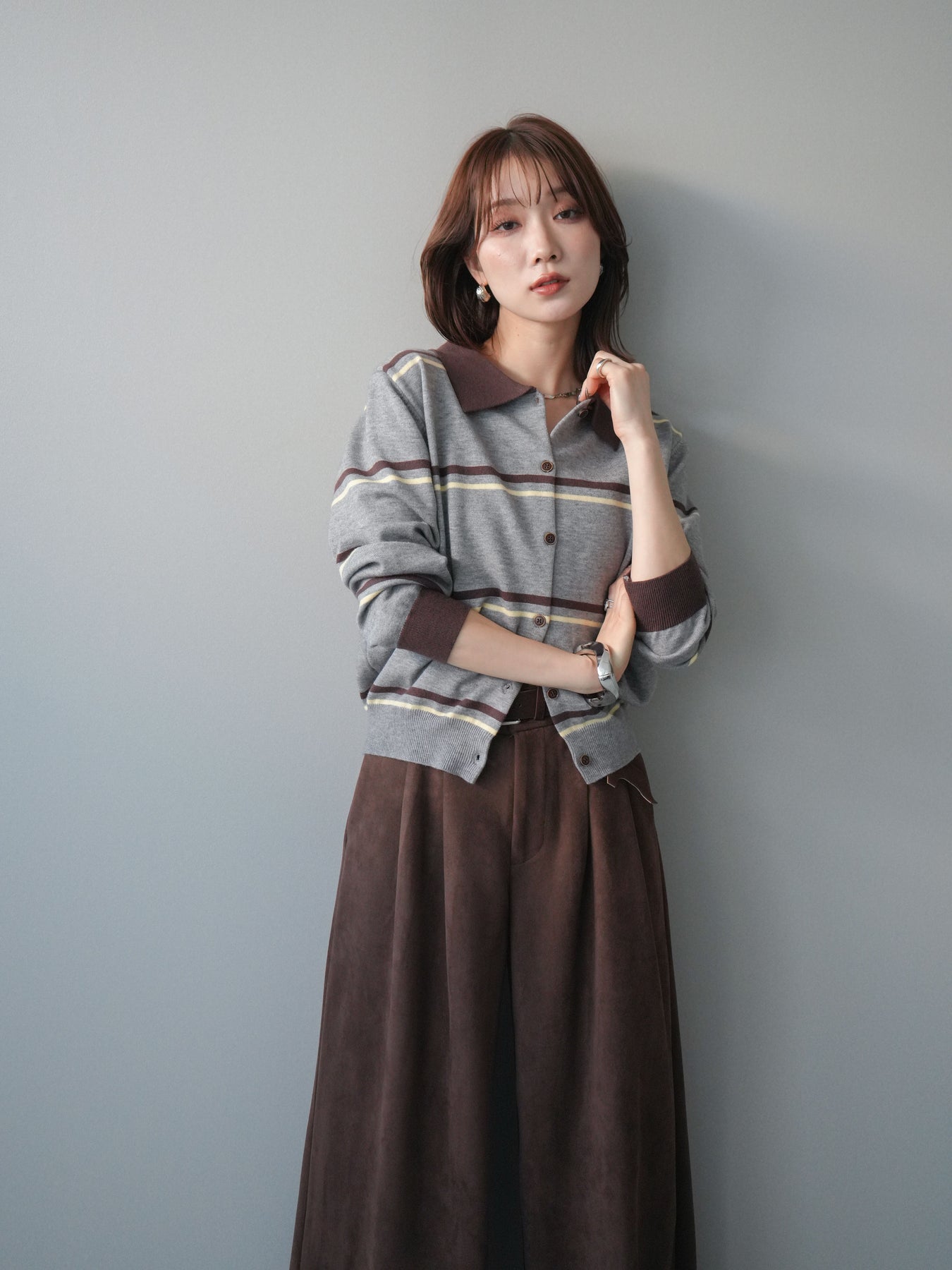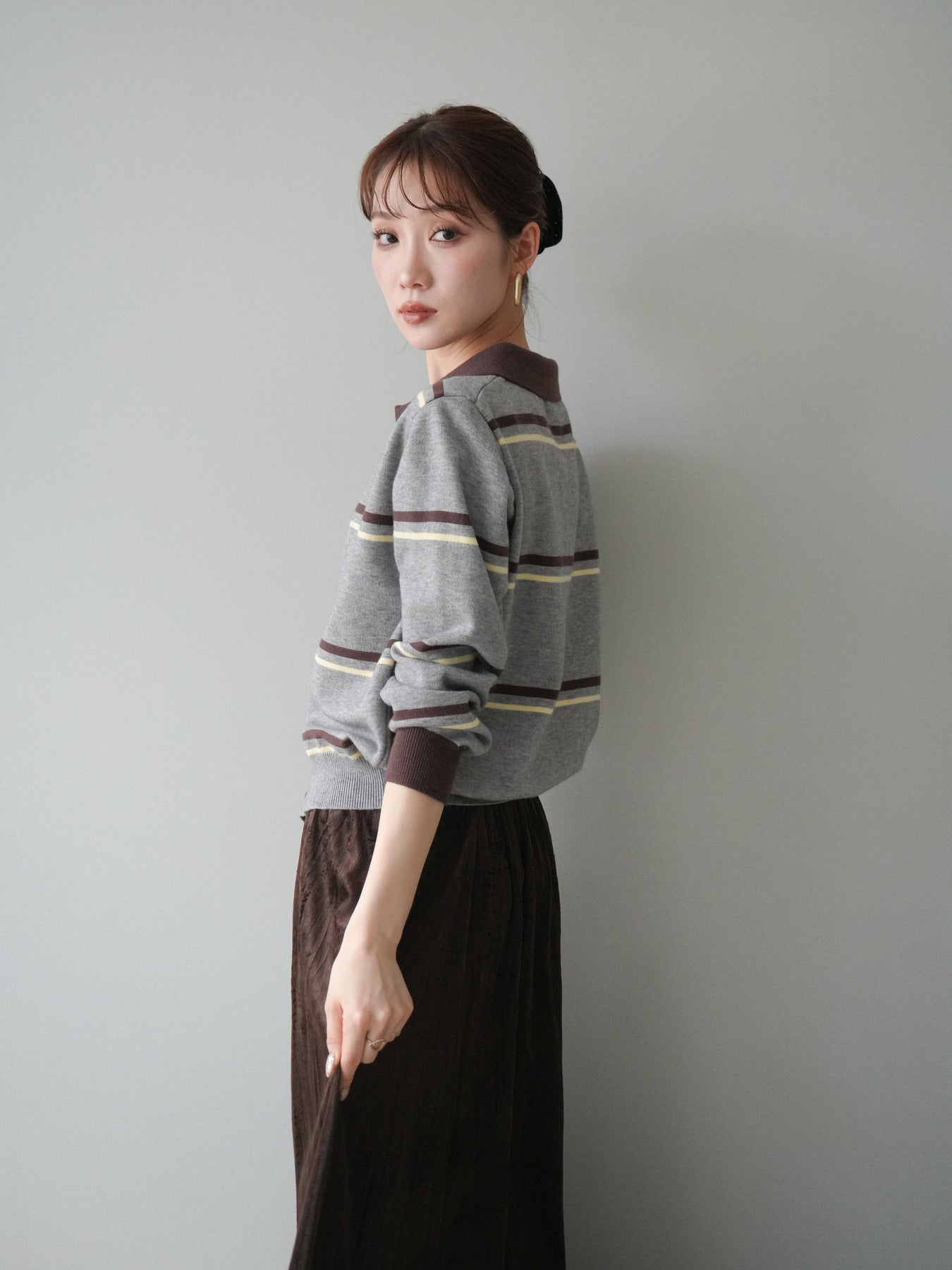 [予約]配色マルチボーダーポロニットカーディガン/gray