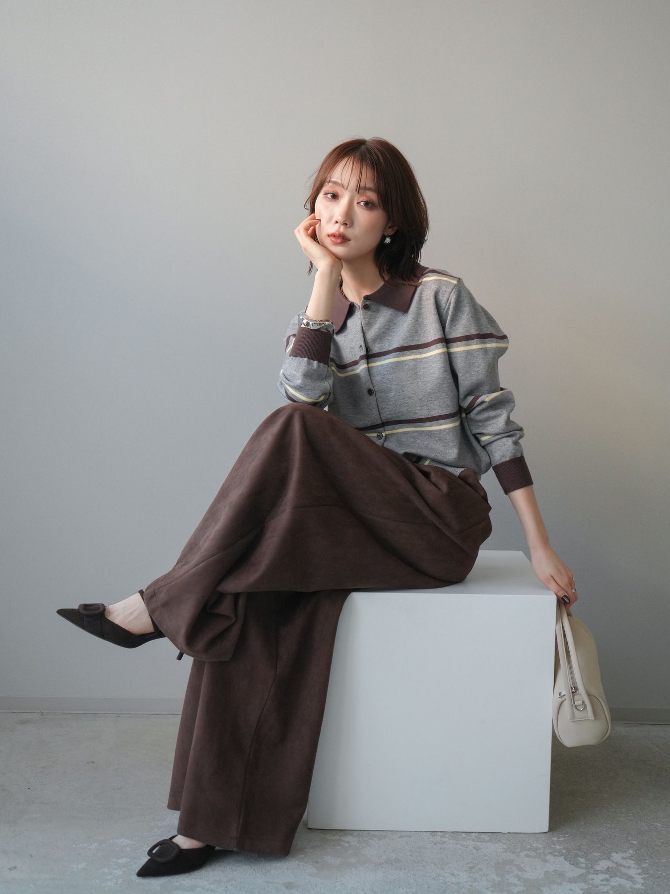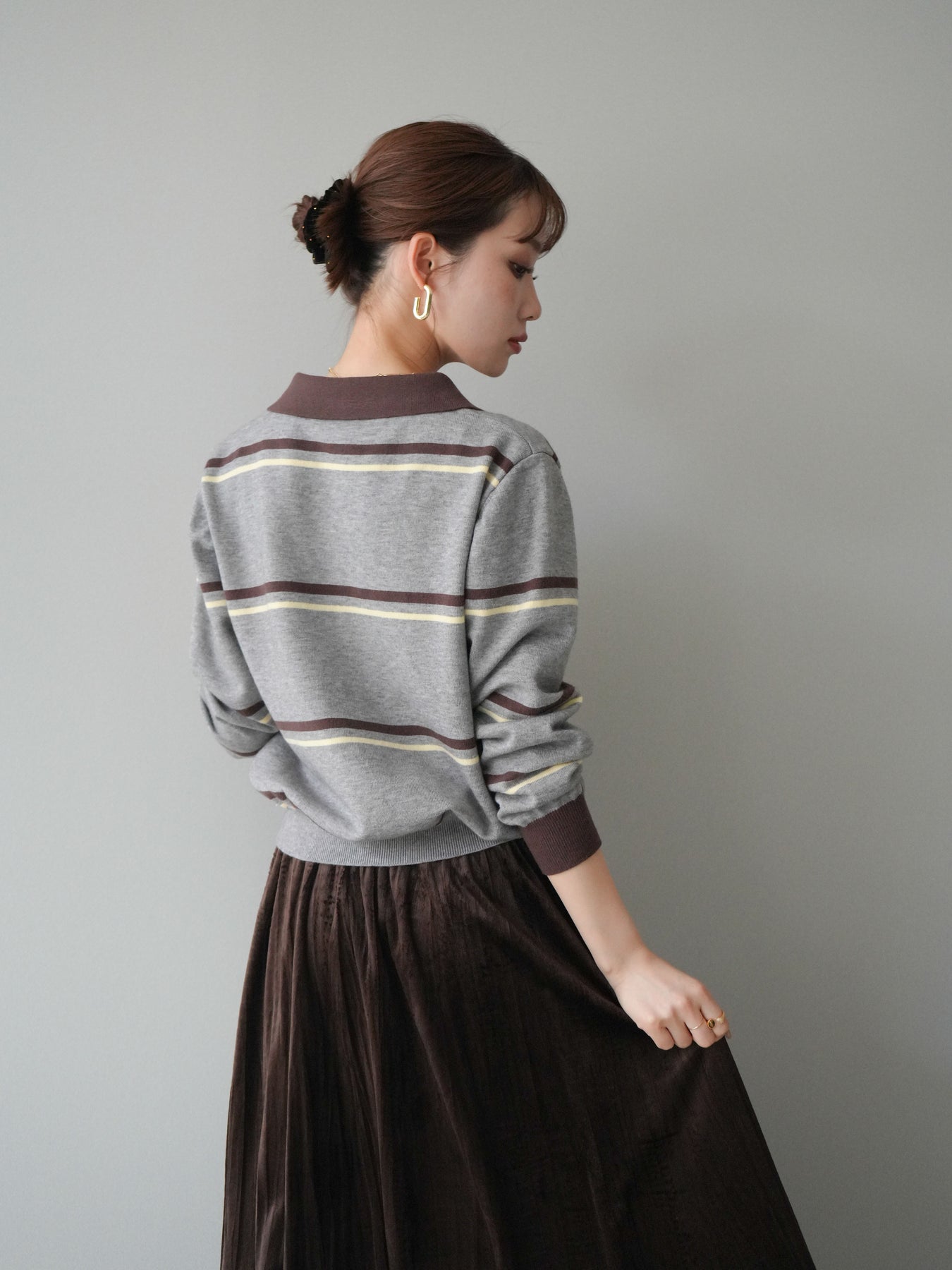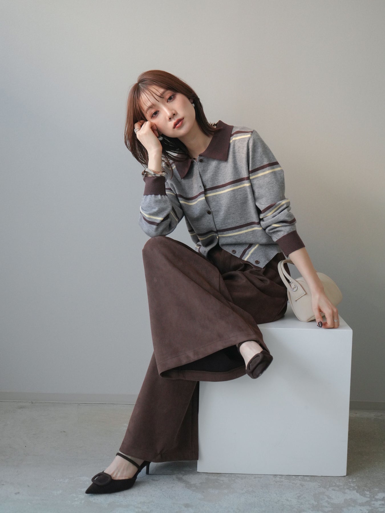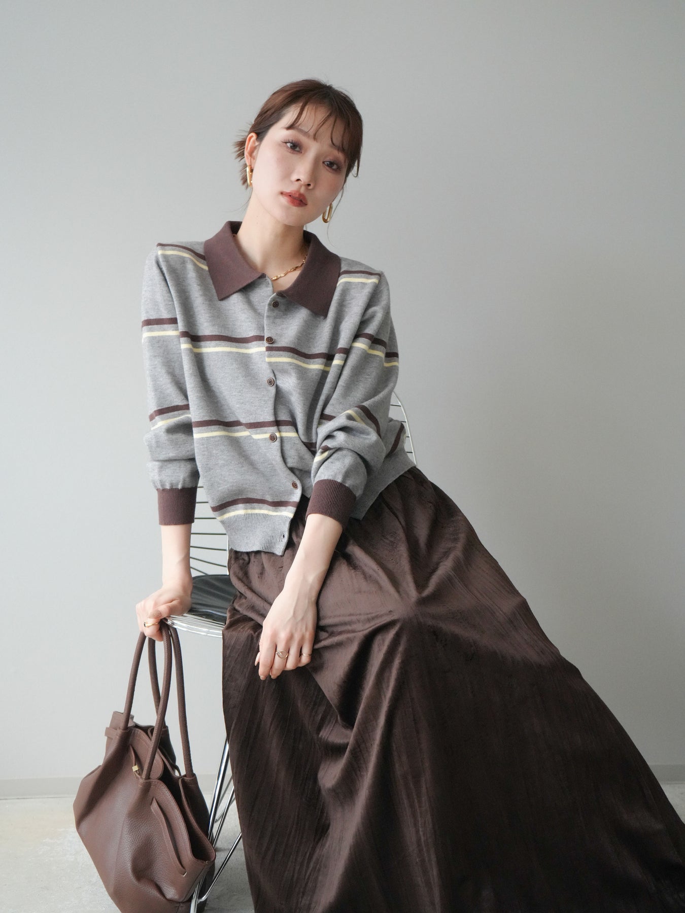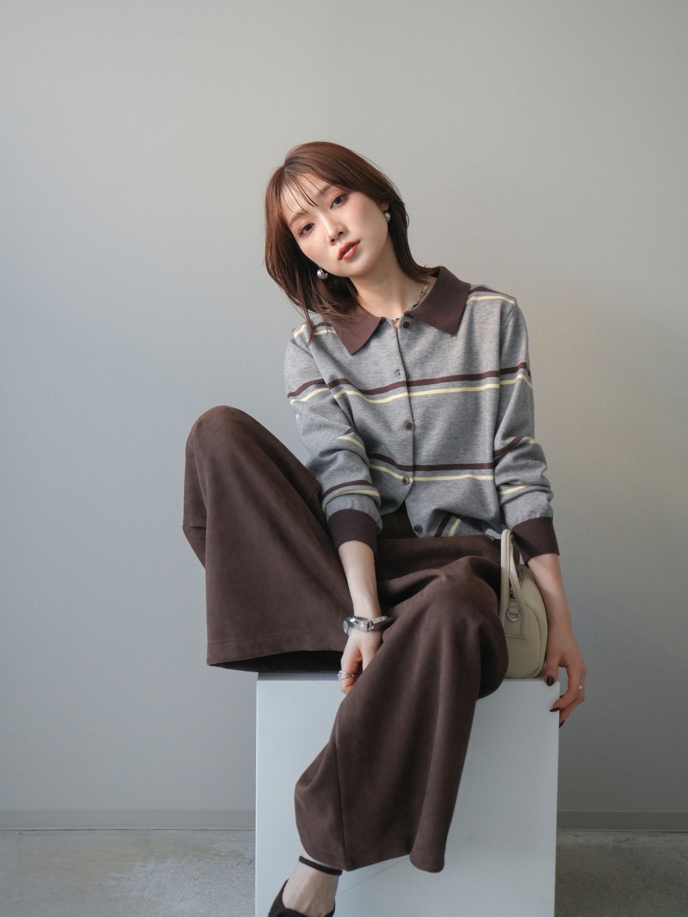 [予約]配色マルチボーダーポロニットカーディガン/gray