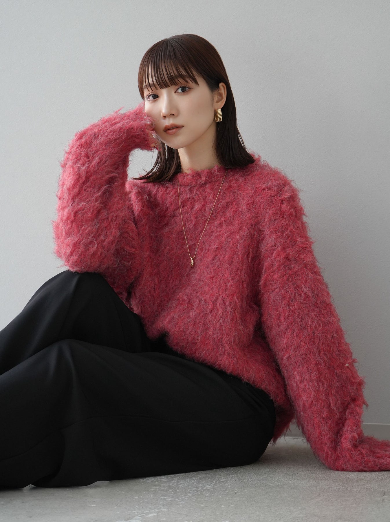 ふんわりとしたシャギー素材が魅力のブークレニットプルオーバー。リラックス感のあるシルエットがトレンドライクなスタイリングを実現。季節感を演出する柔らかな質感がポイントです。 ※ボトムス、キャミソール(インナー)以外の商品は一律でインナーは付属していません。