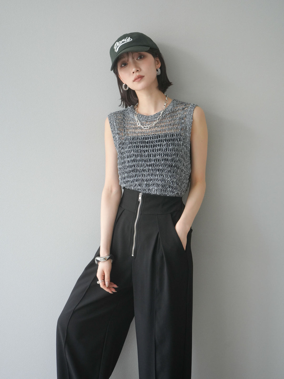 [予約]ミックスヤーン透かし編みニットタンクトップ/ブラック