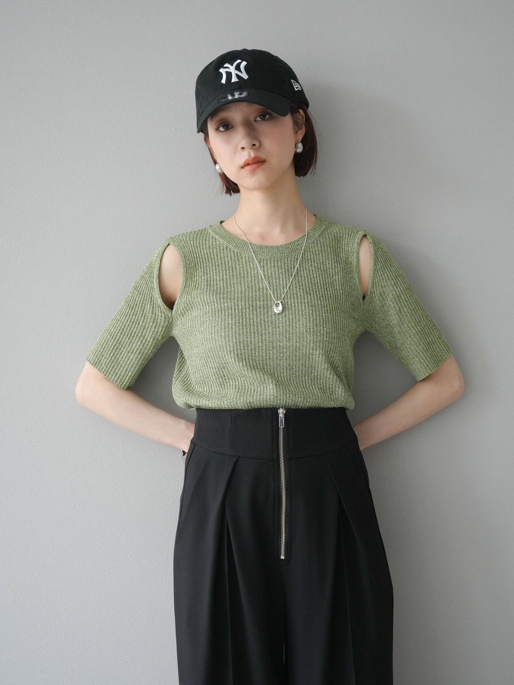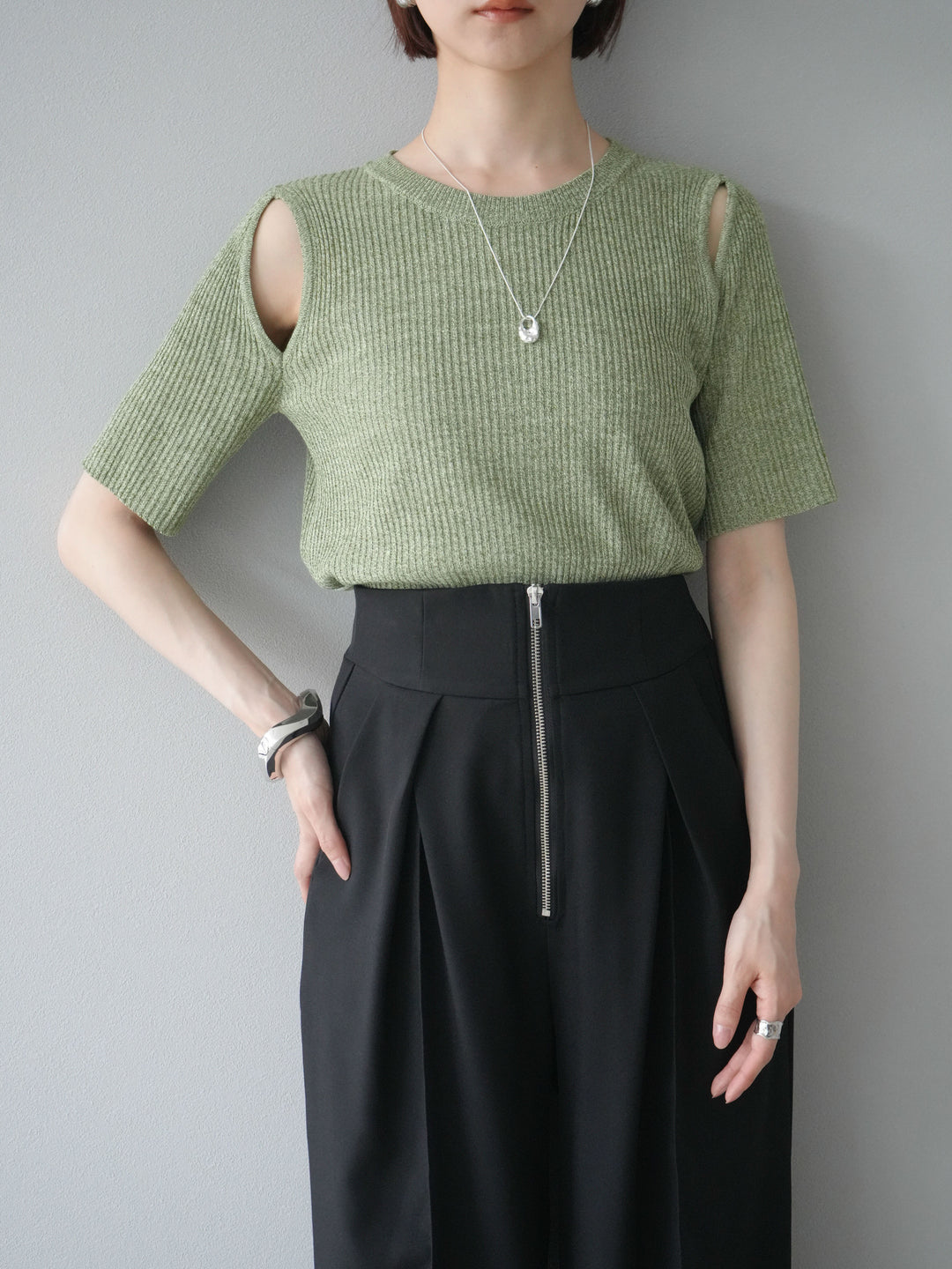 [予約]MIXニットショルダースリットプルオーバー/グリーン