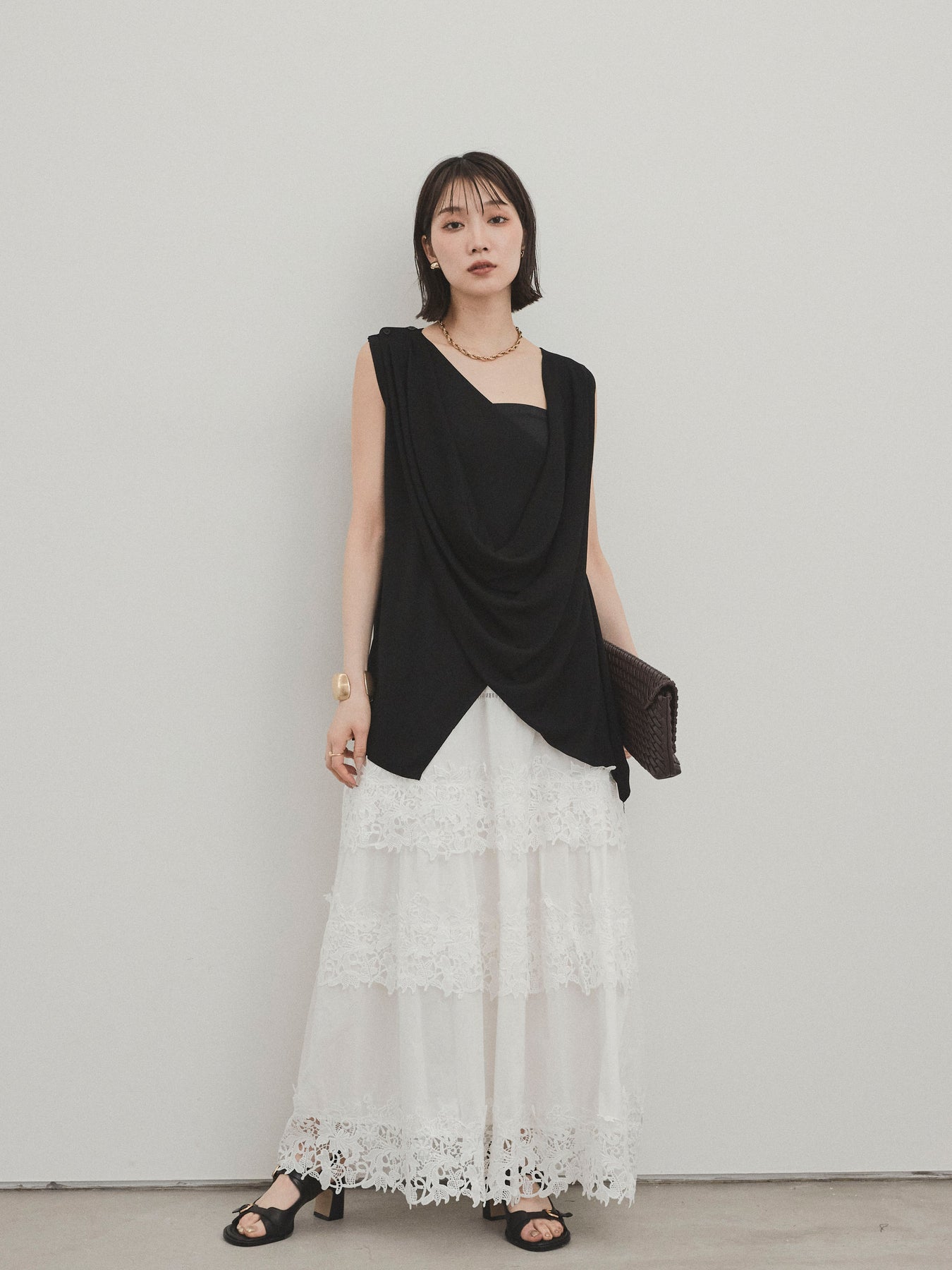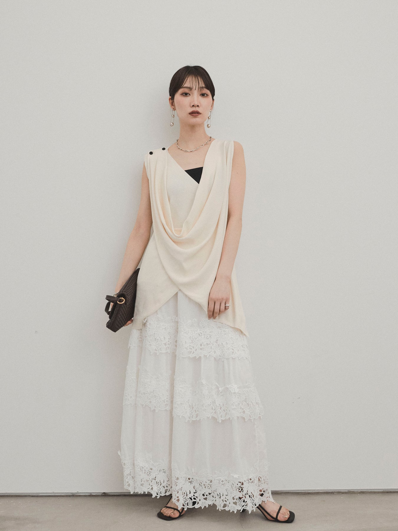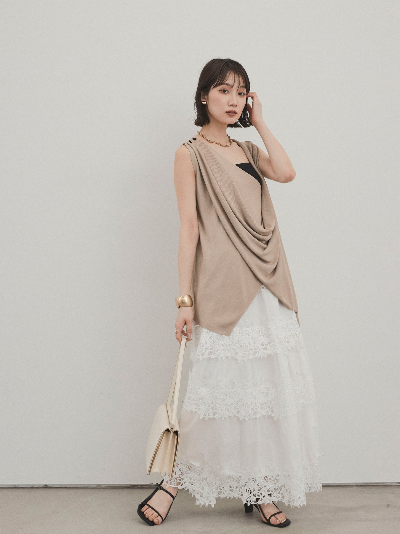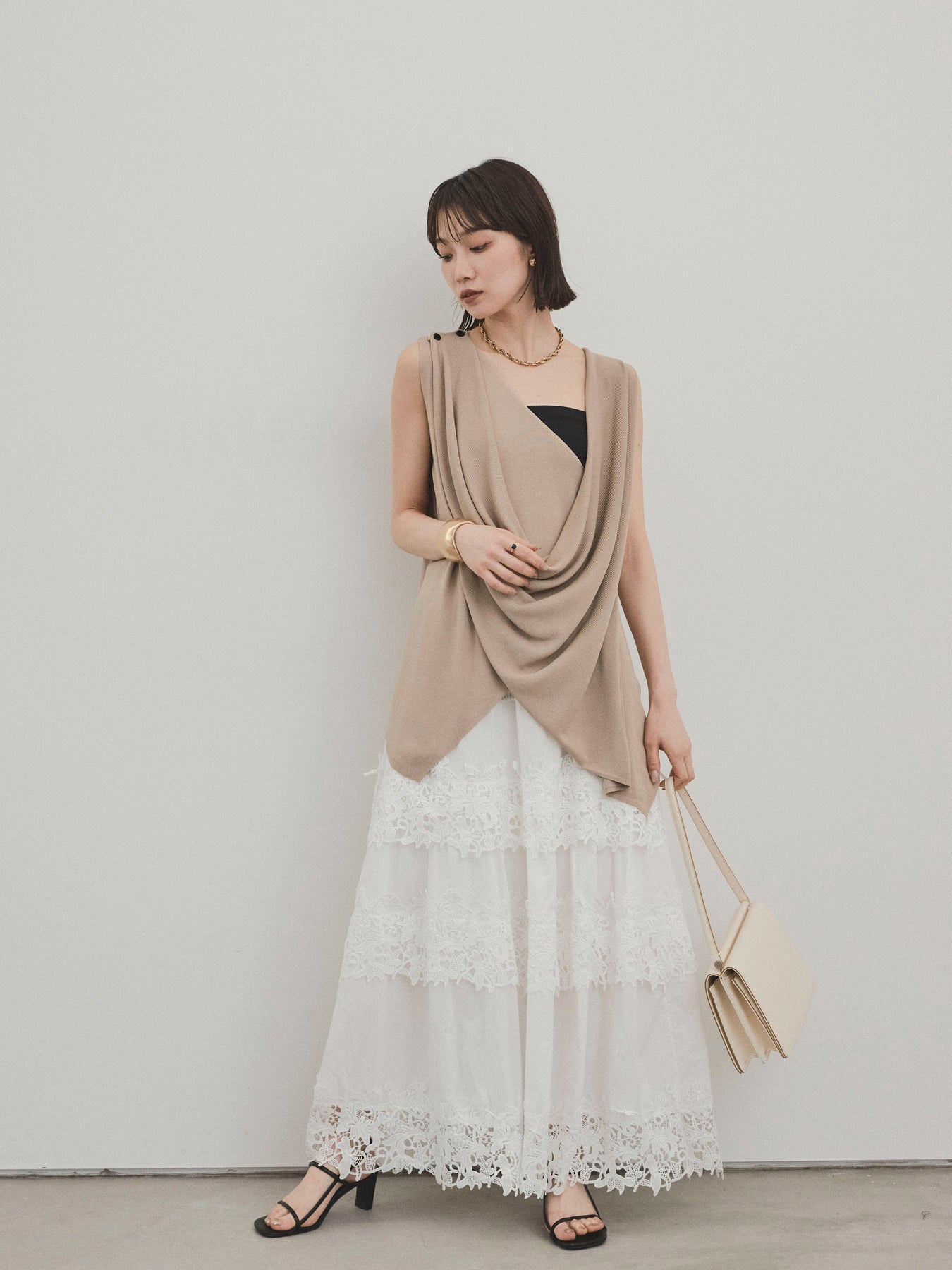 [SET]ドライタッチドレープニットプルオーバー+スカラップレースロングスカート(2set)