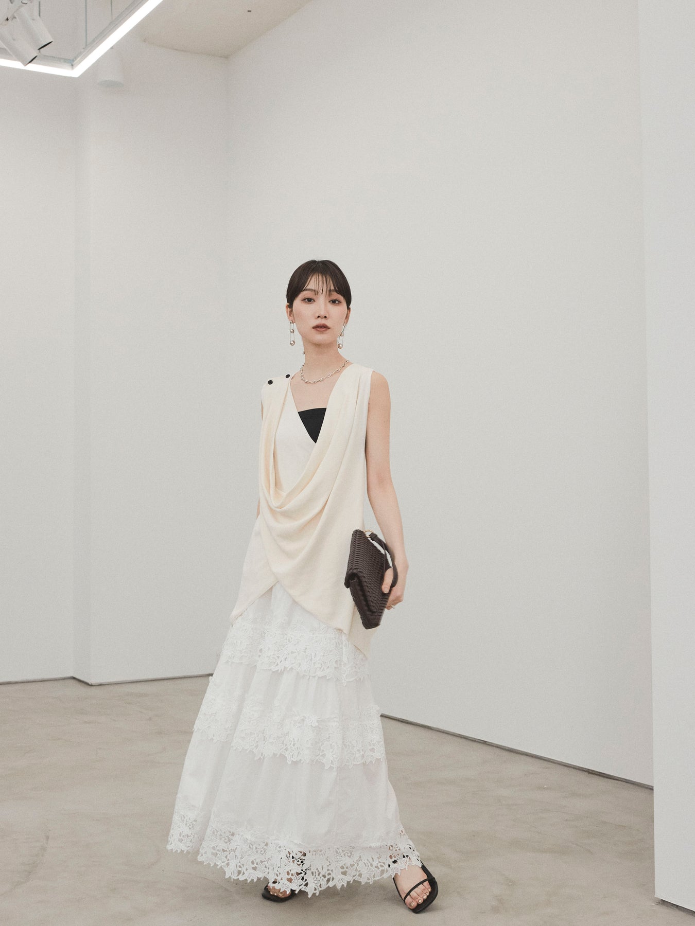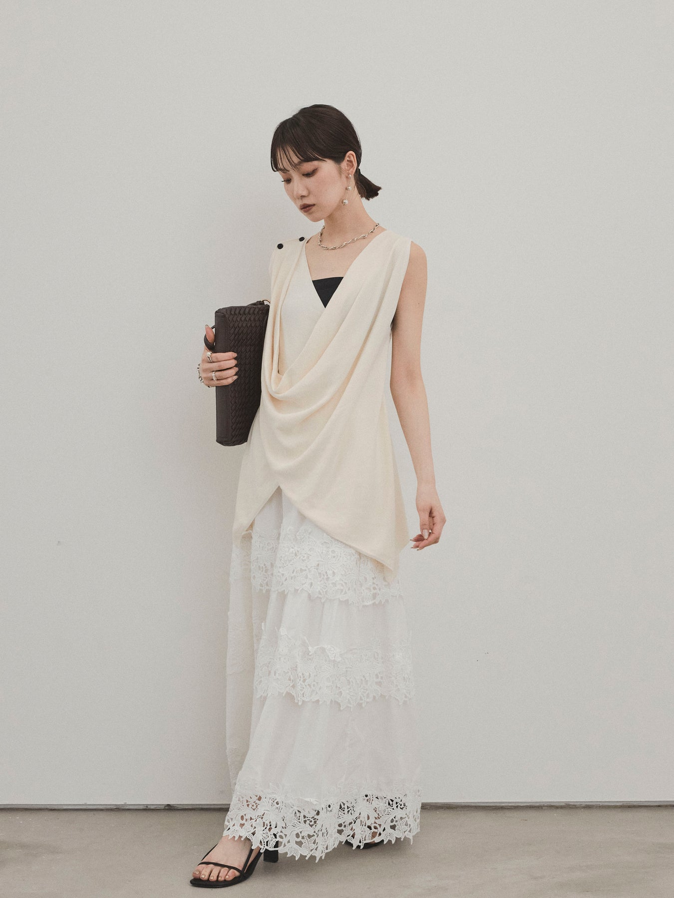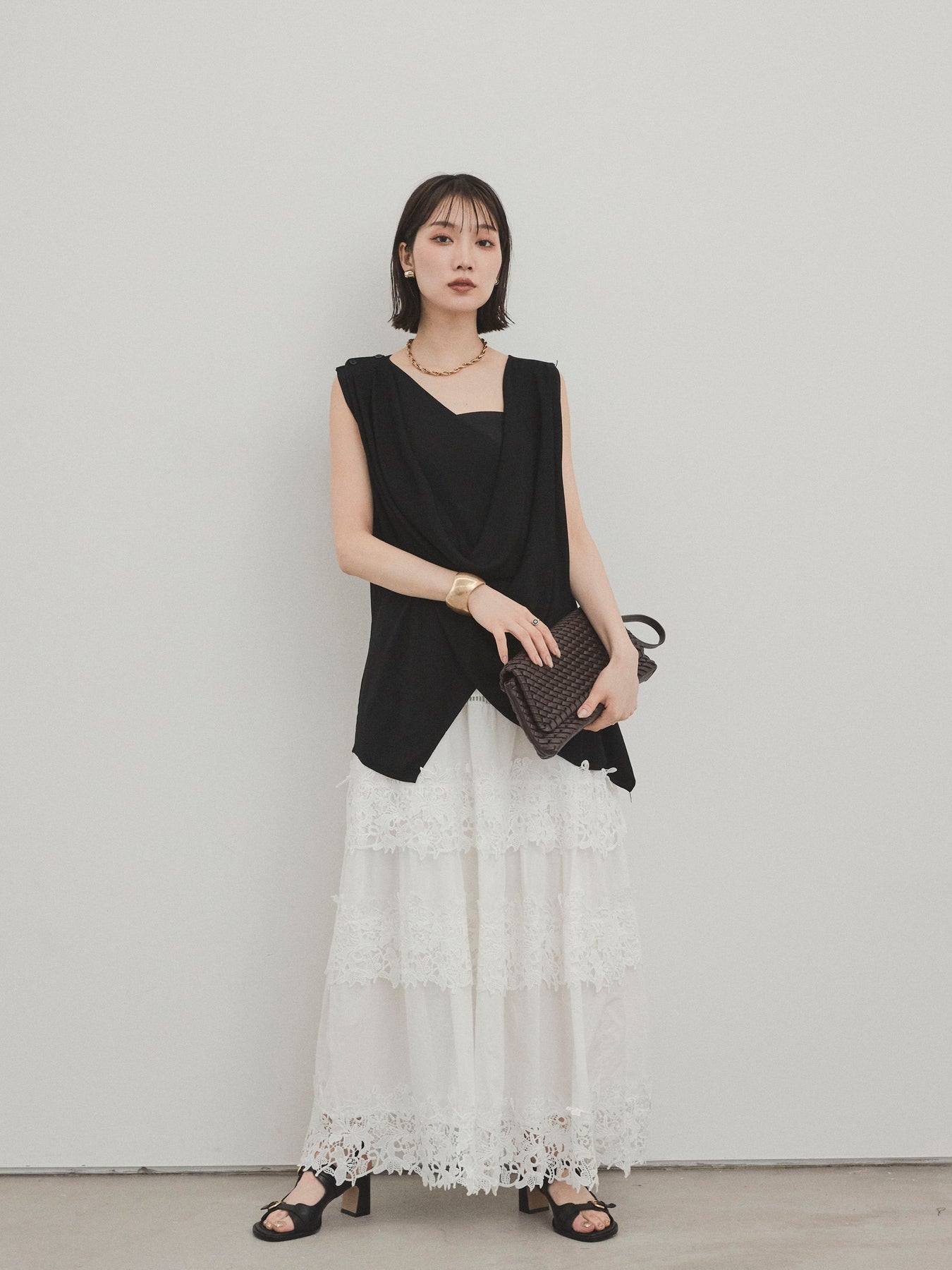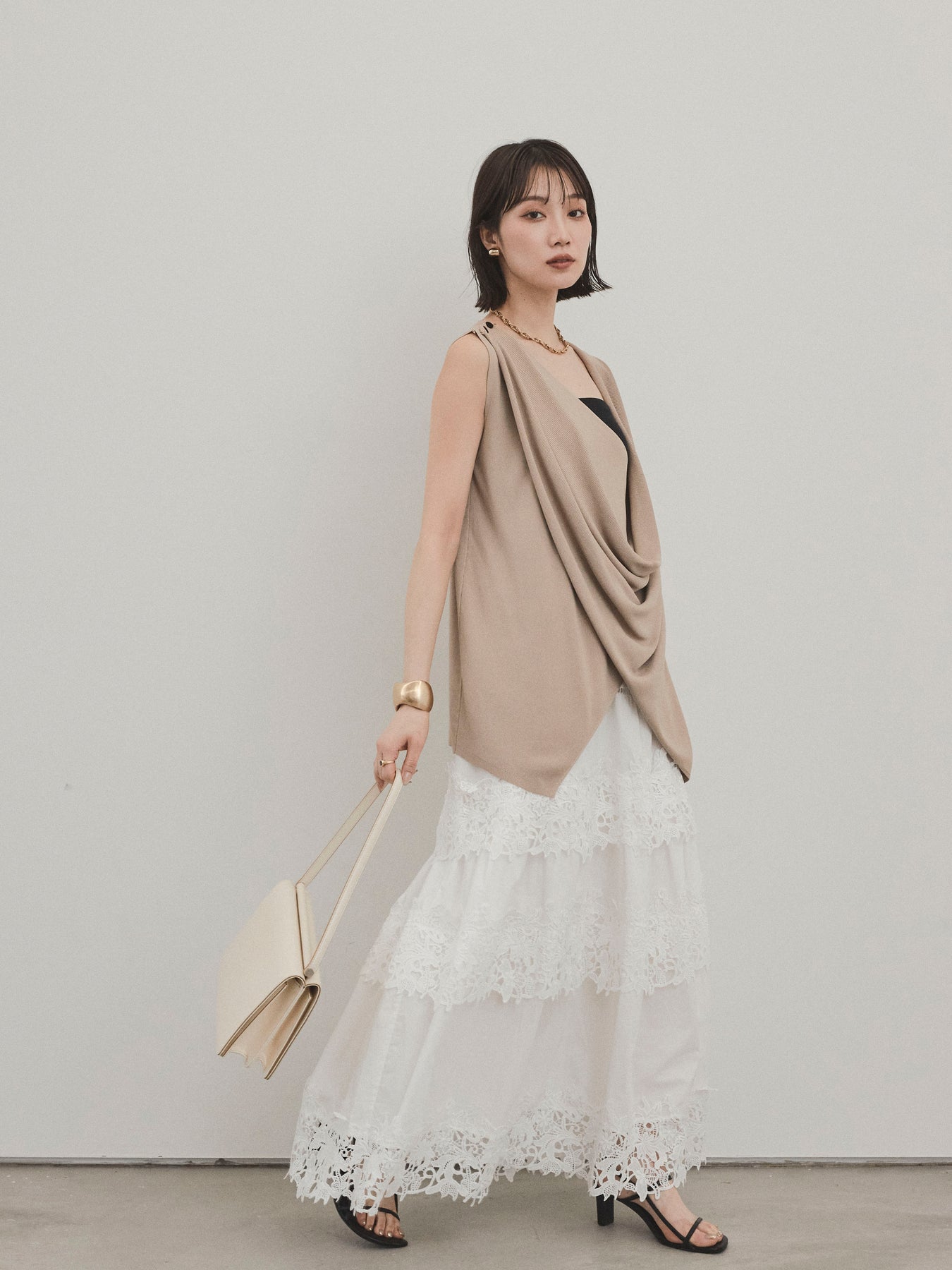 [SET]ドライタッチドレープニットプルオーバー+スカラップレースロングスカート(2set)
