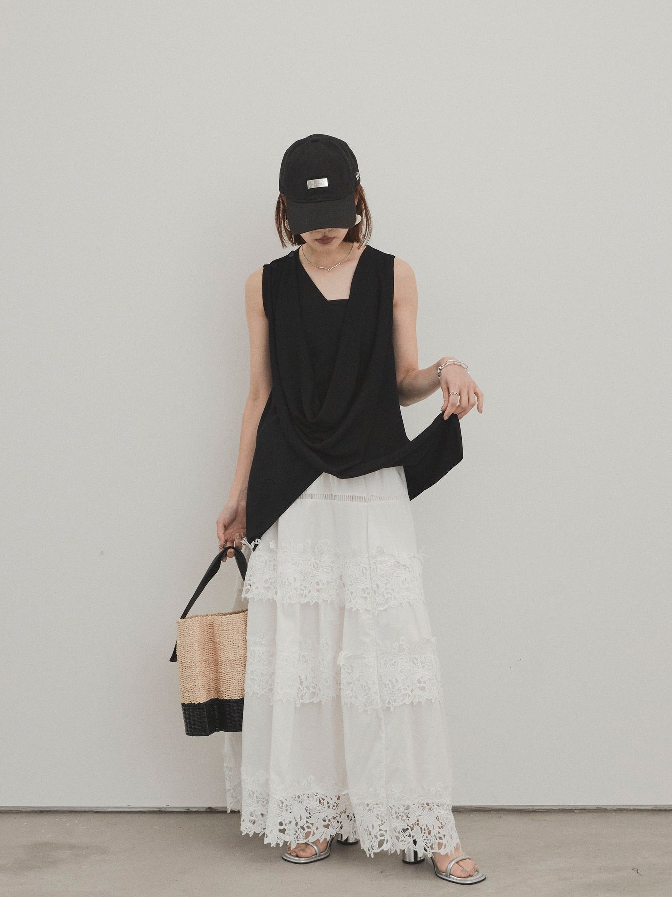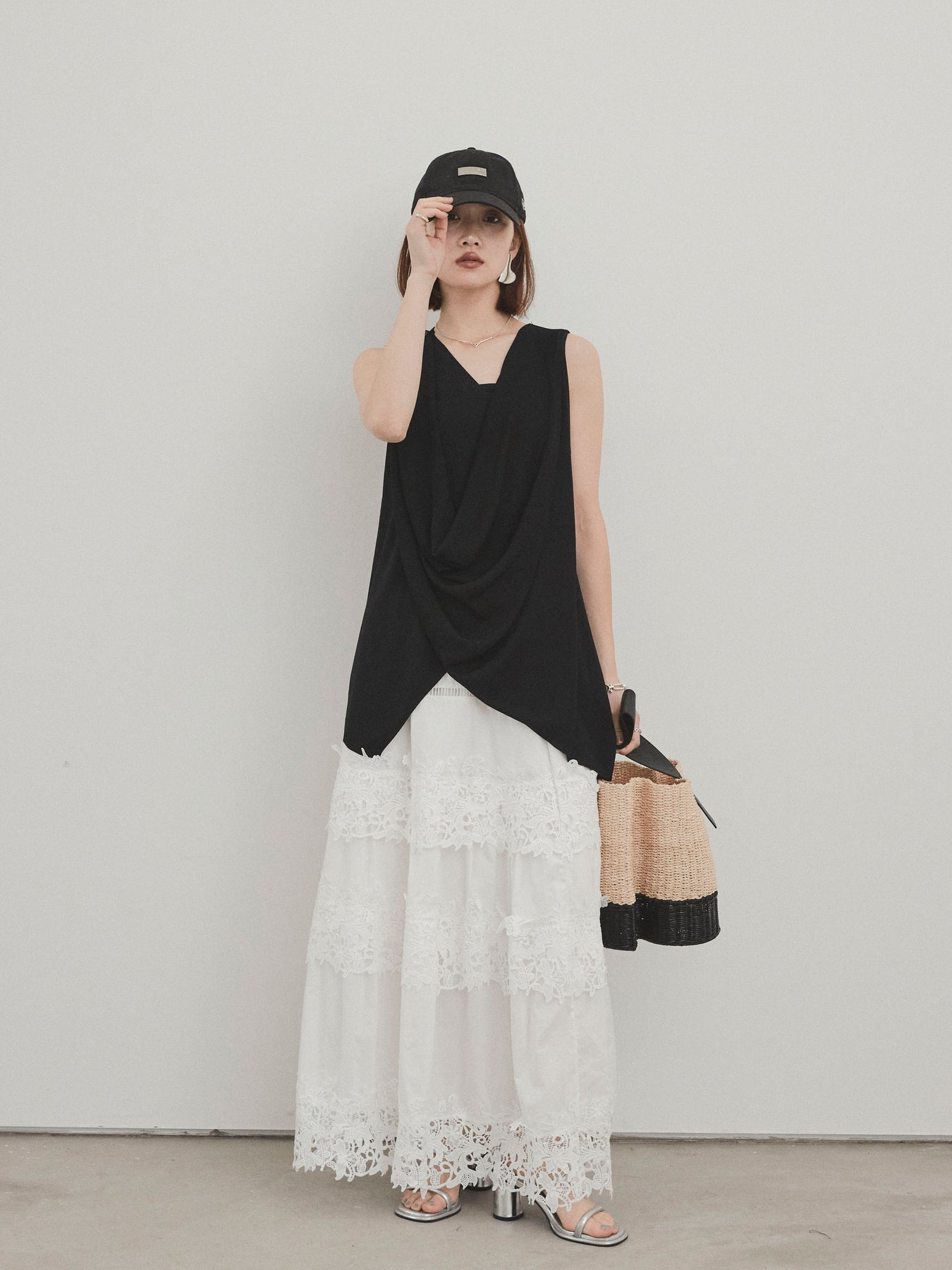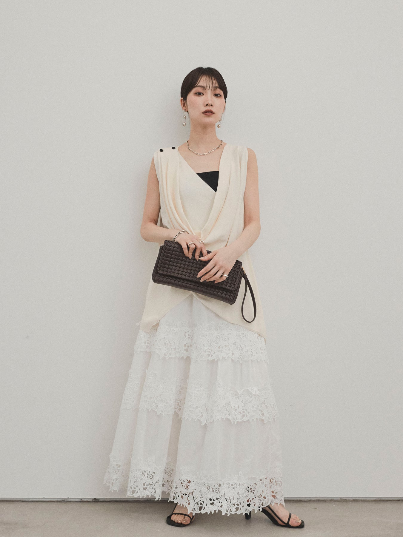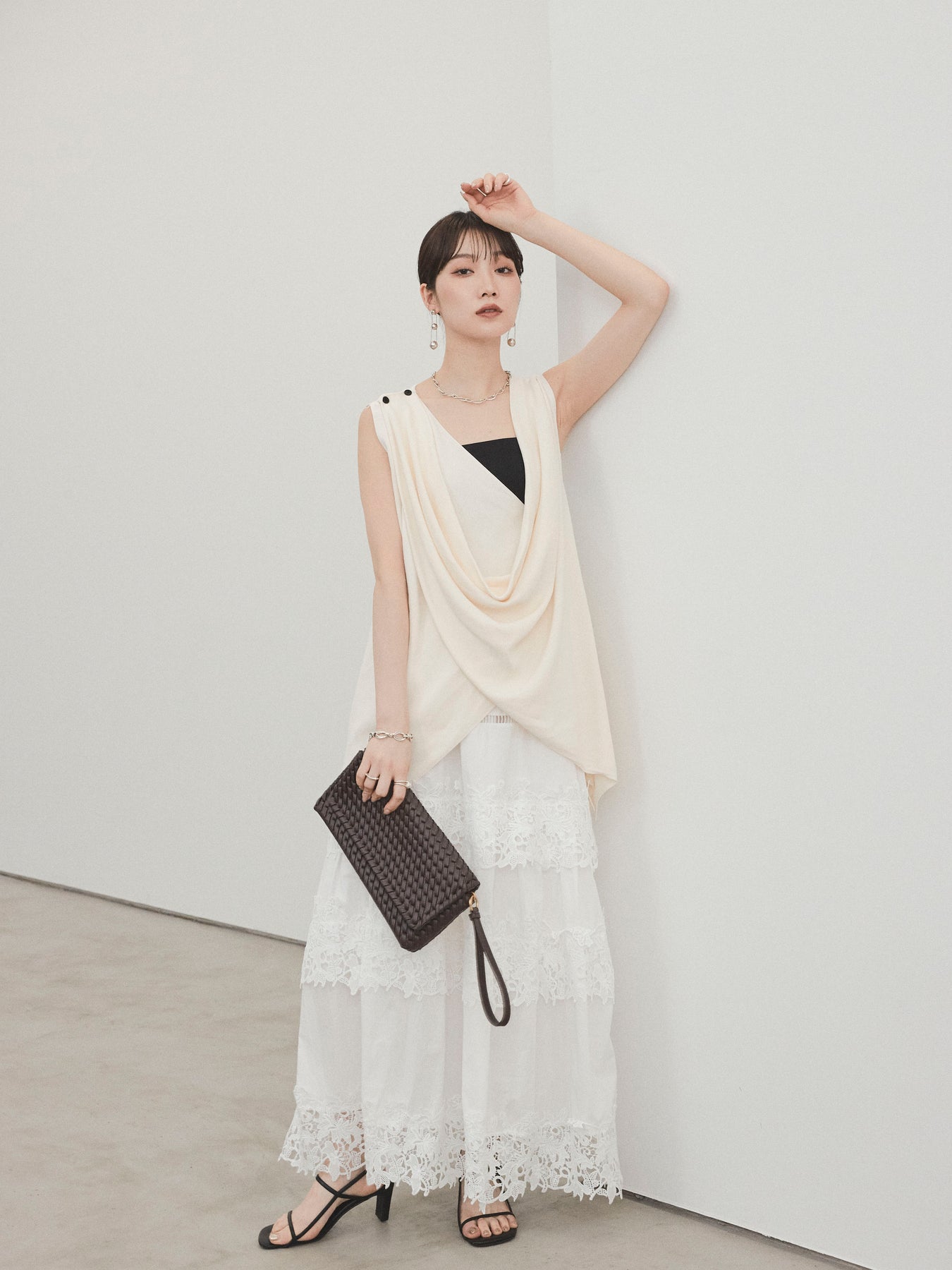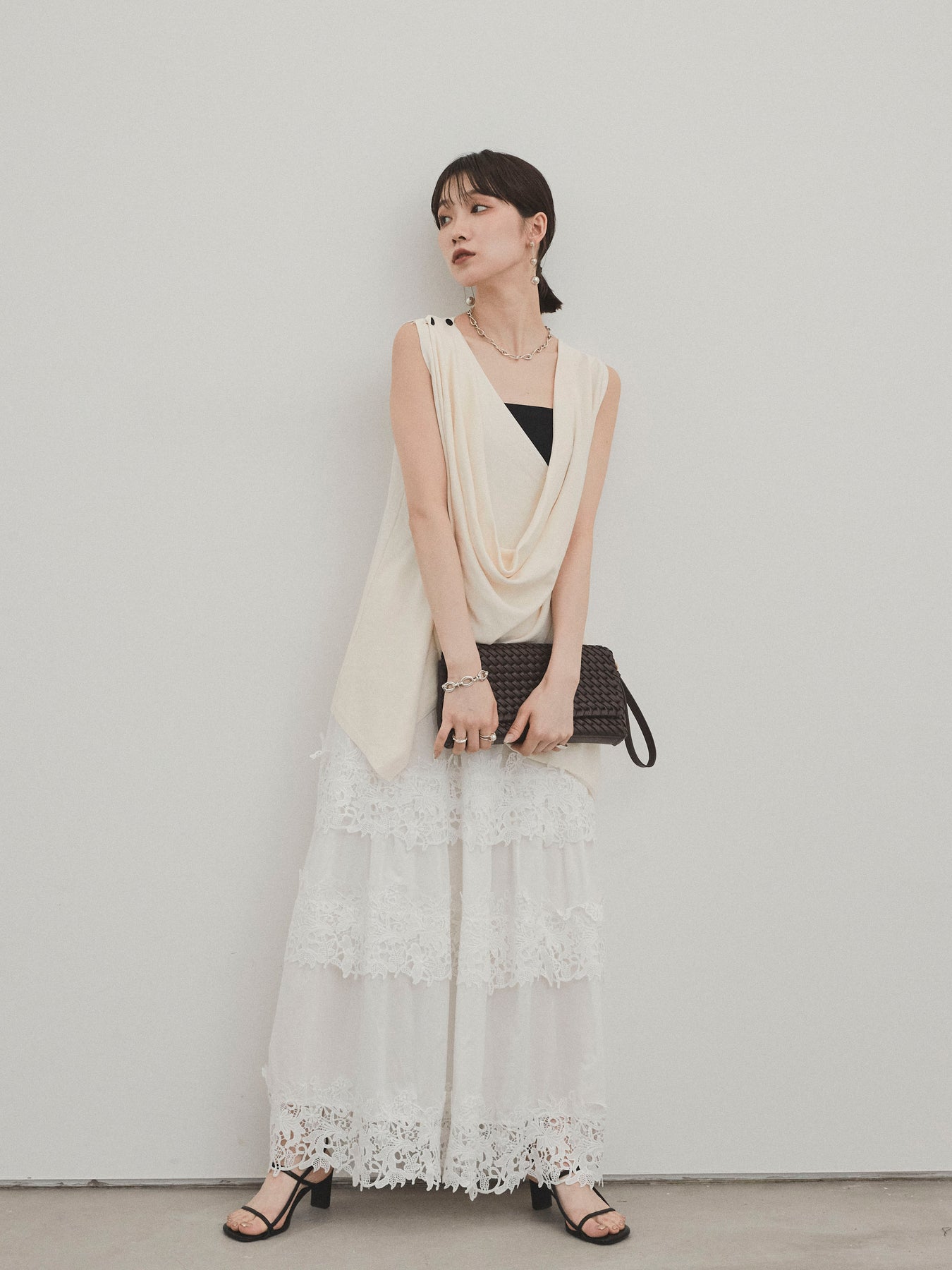 [SET]ドライタッチドレープニットプルオーバー+スカラップレースロングスカート(2set)
