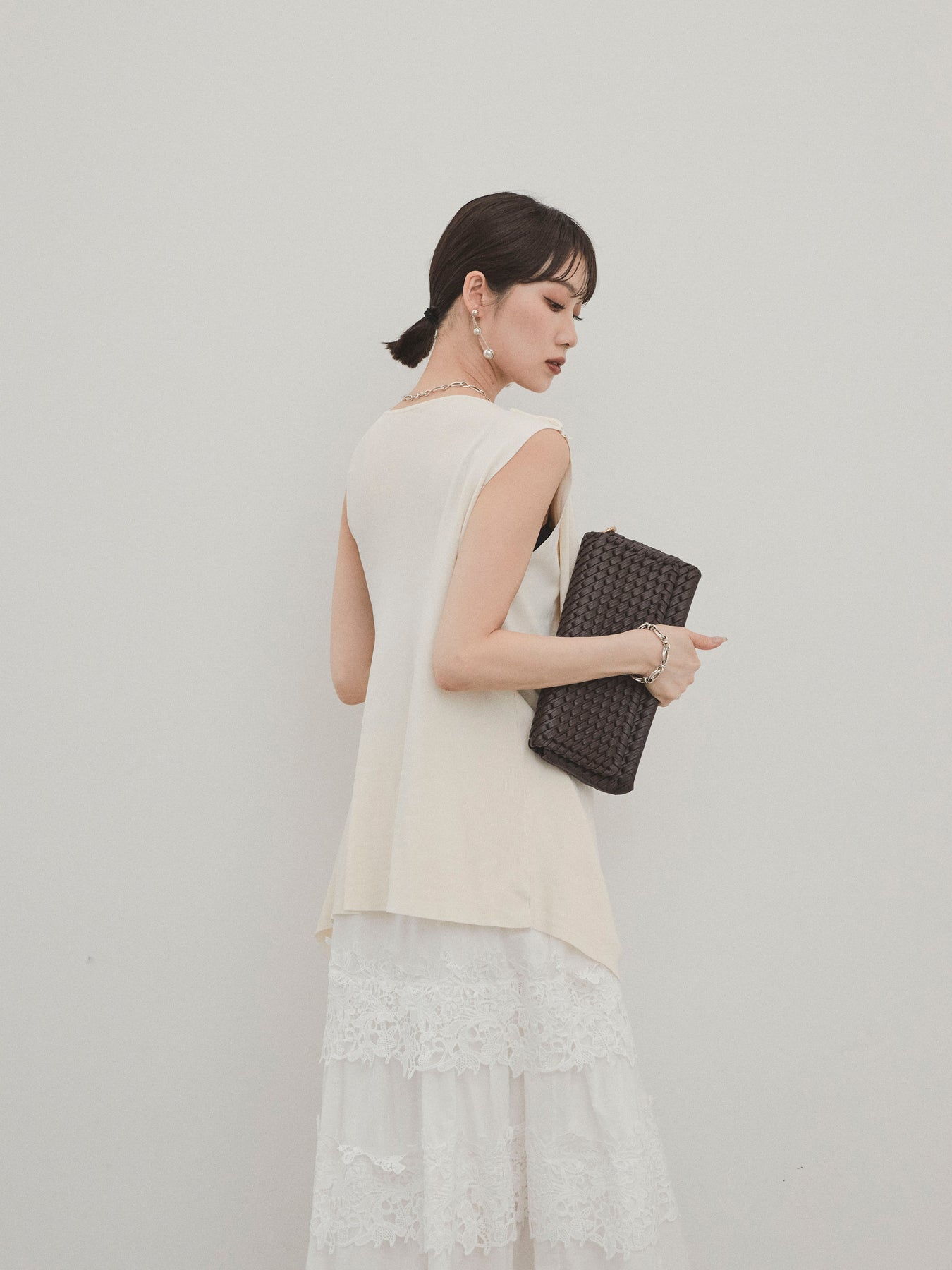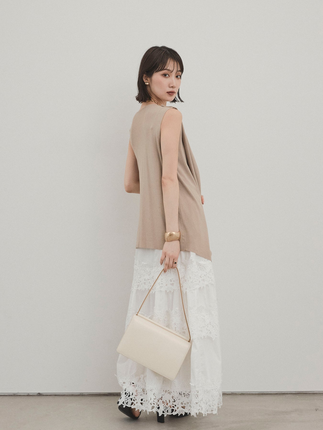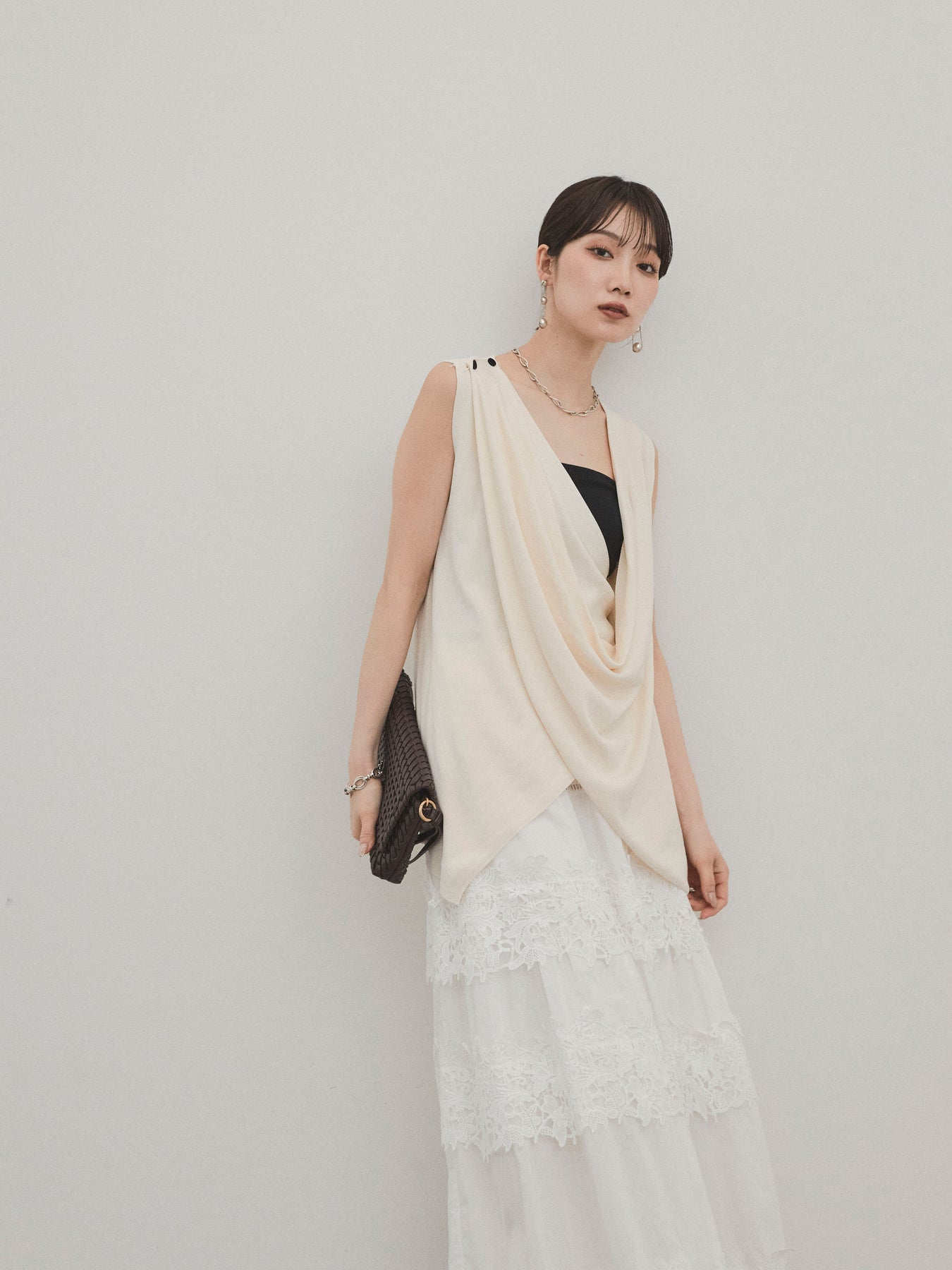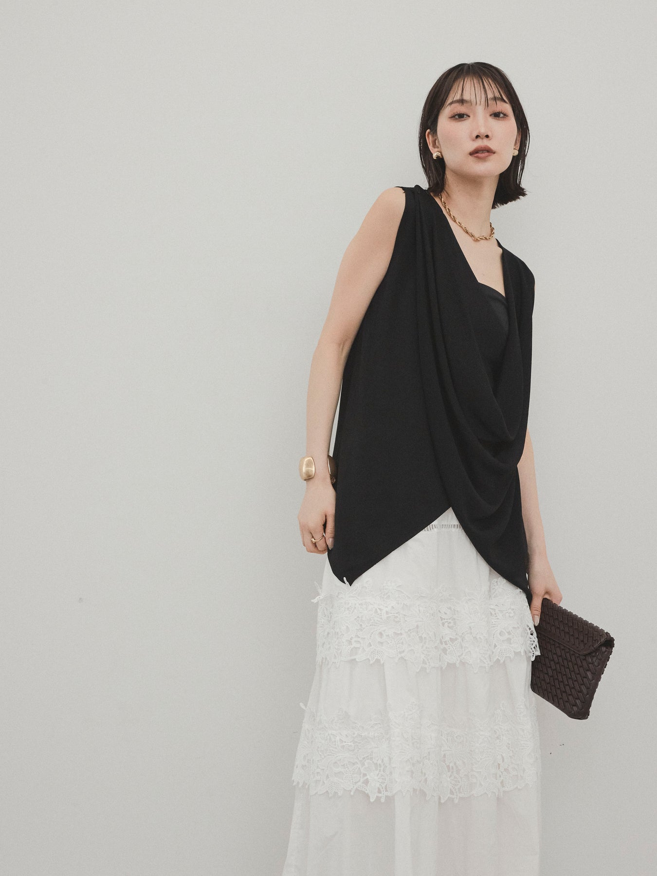 [SET]ドライタッチドレープニットプルオーバー+スカラップレースロングスカート(2set)