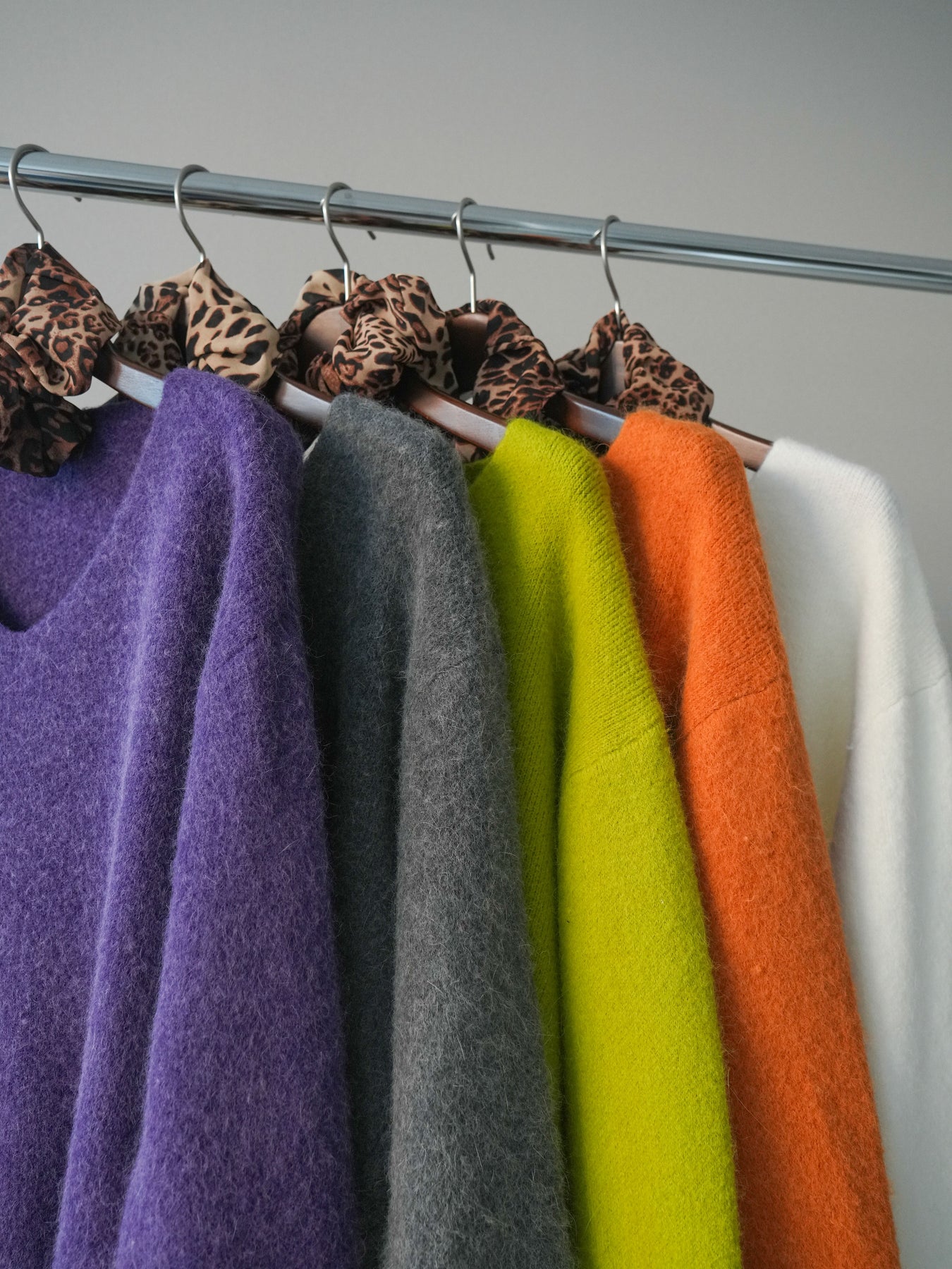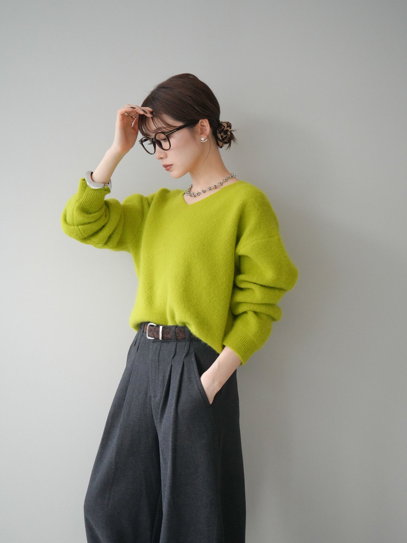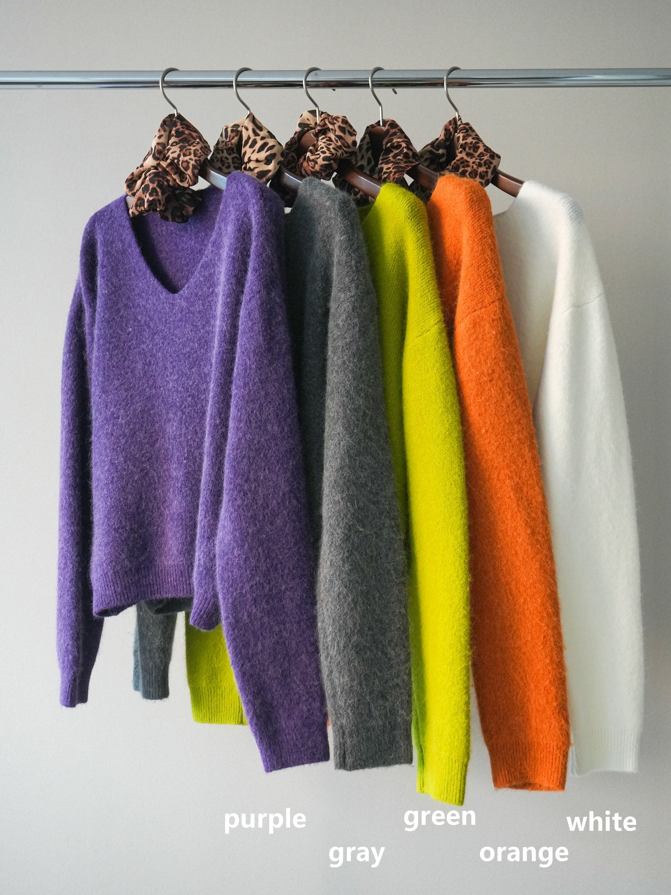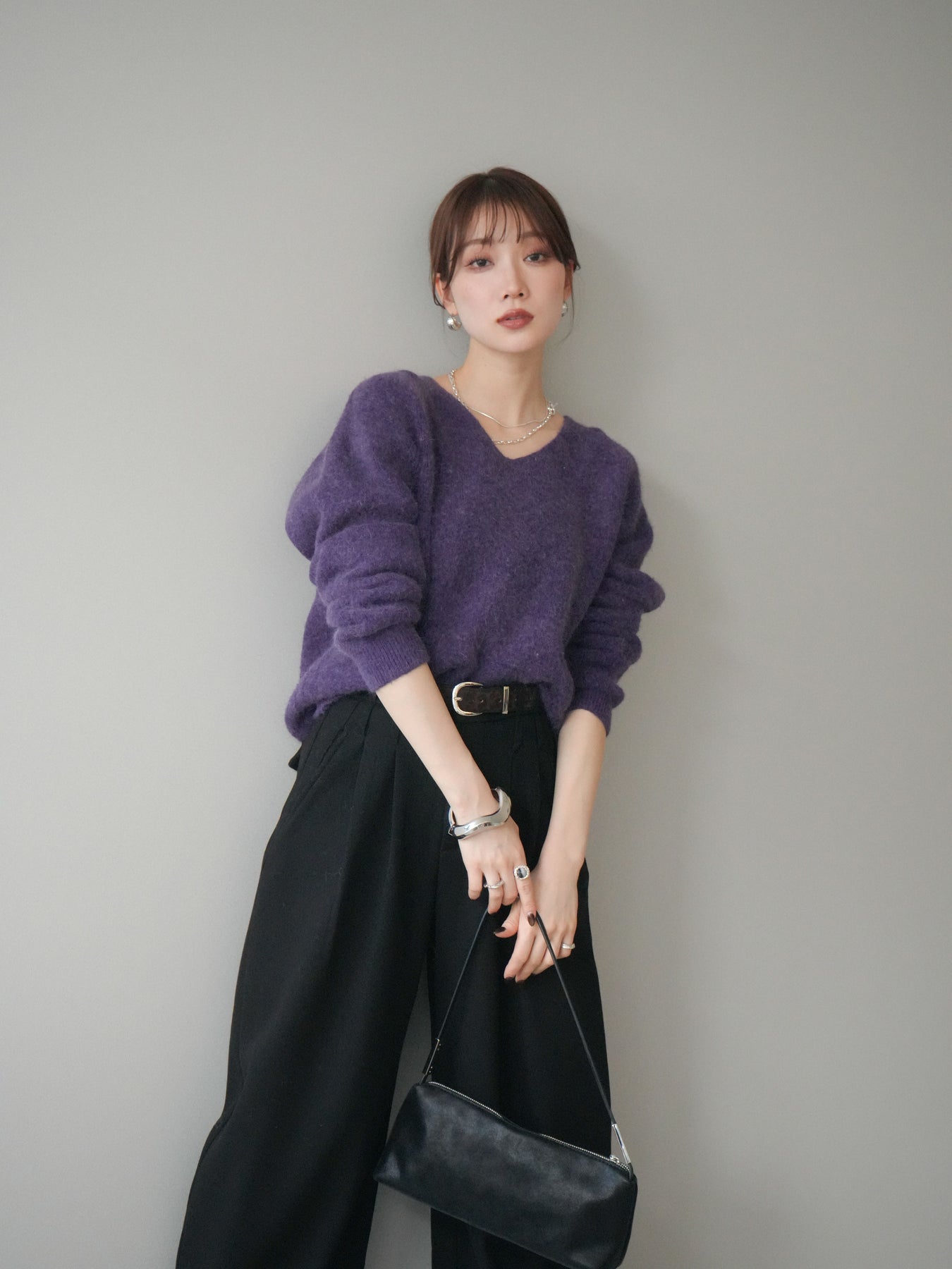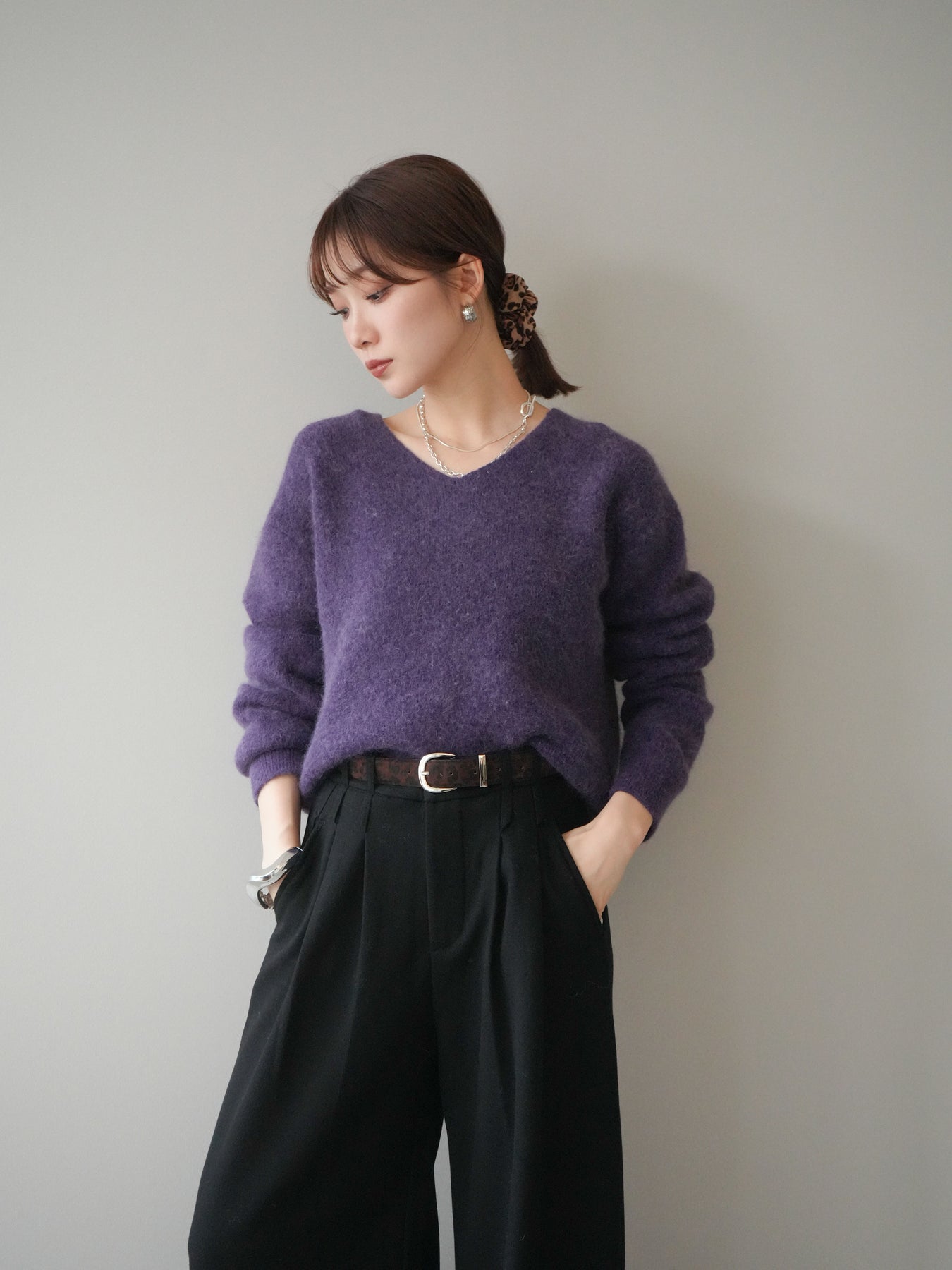 [予約]シュシュ付きアンゴラタッチVネックニットプルオーバー + [予約]シュシュ付きアンゴラタッチVネックニットプルオーバー