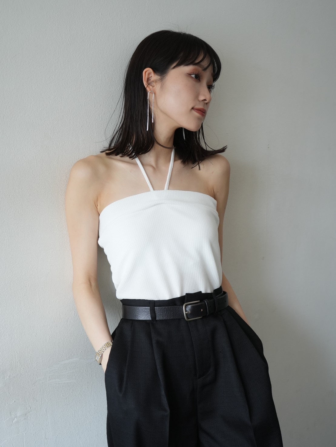 [予約]ホルターネックベアトップキャミソール/オフ