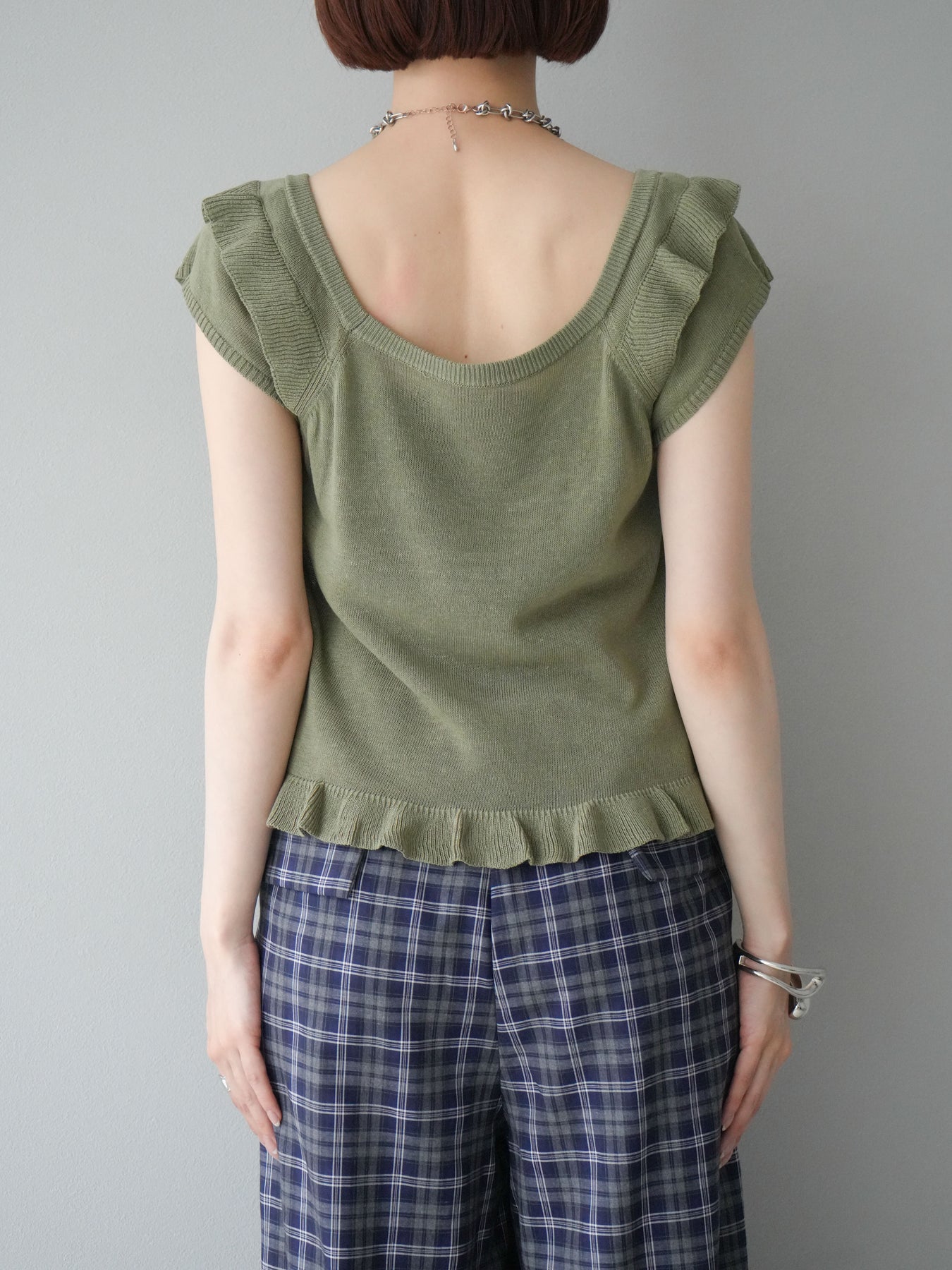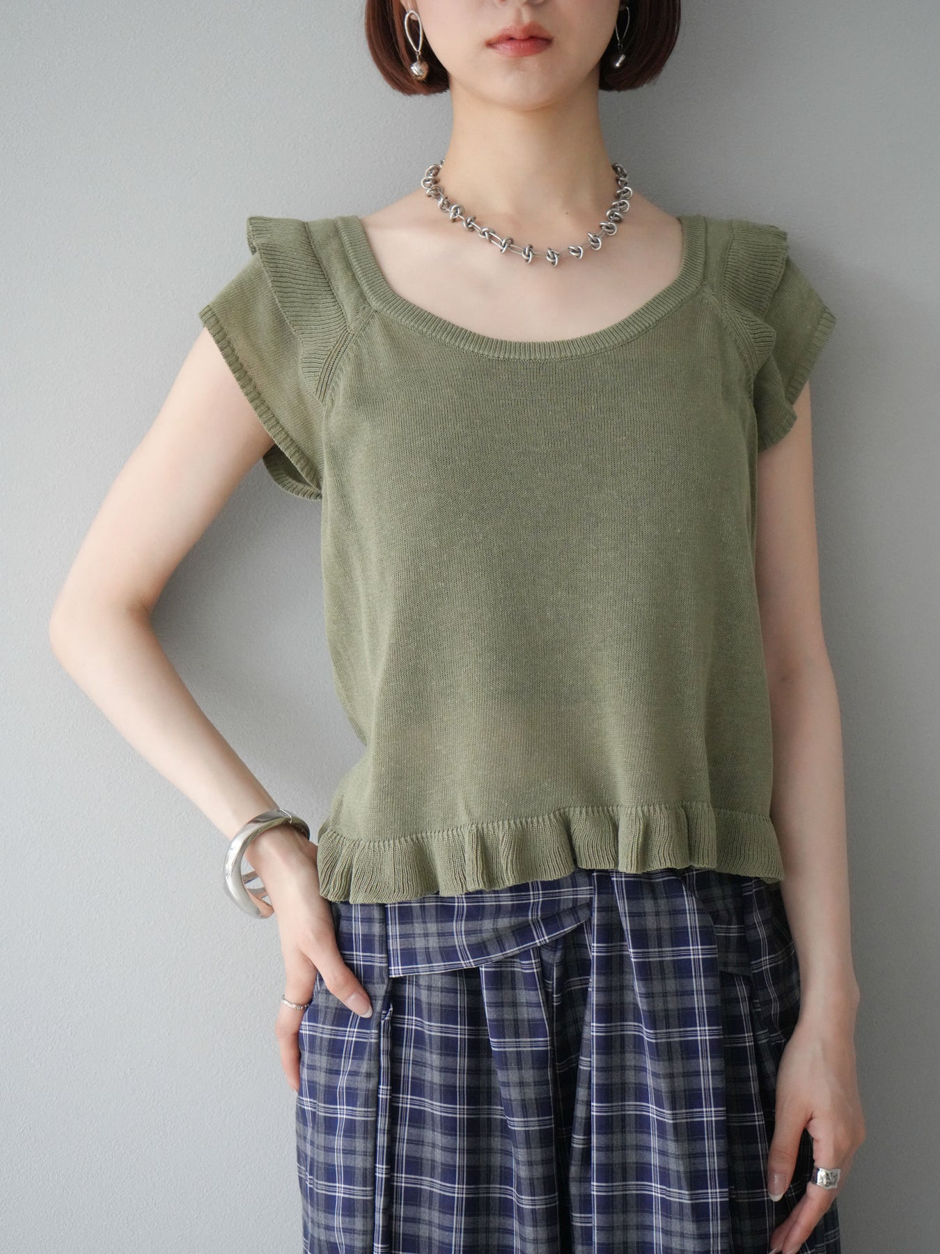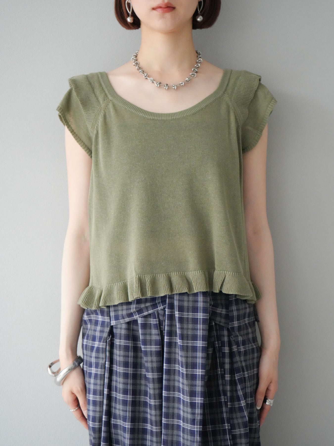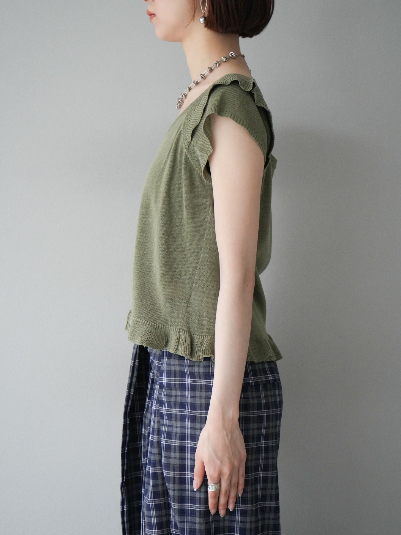 [予約]リネンタッチフリルニットタンクトップ/カーキ