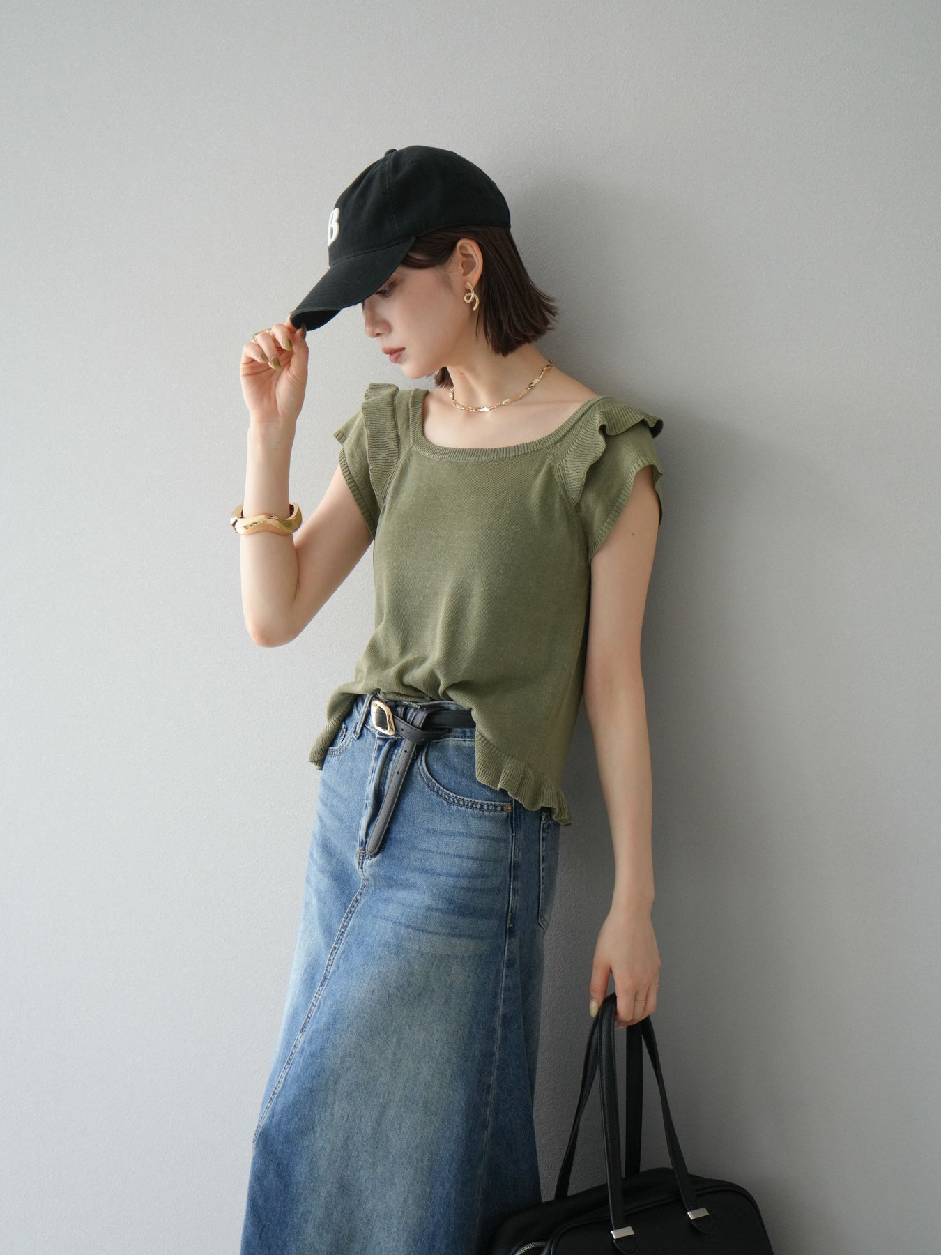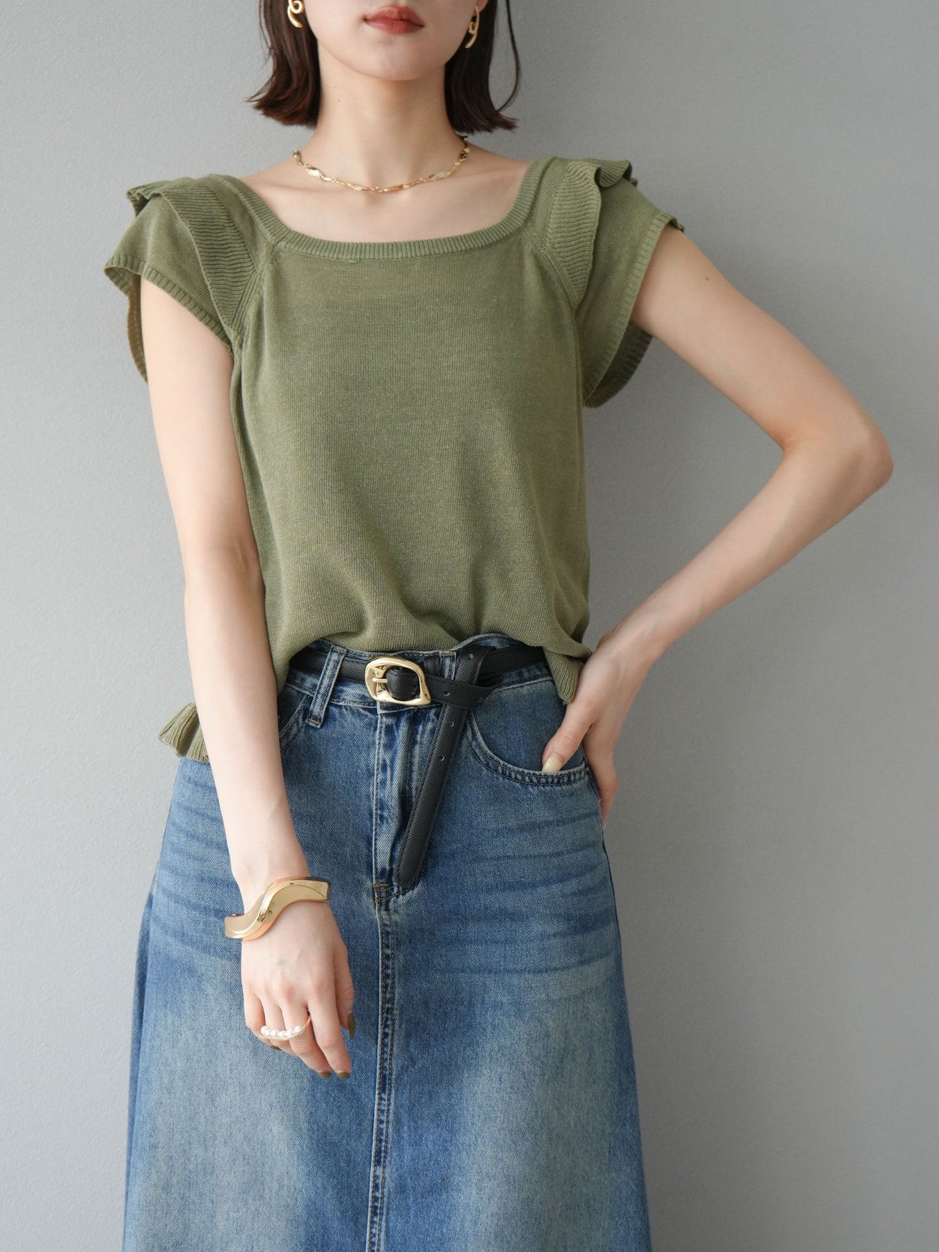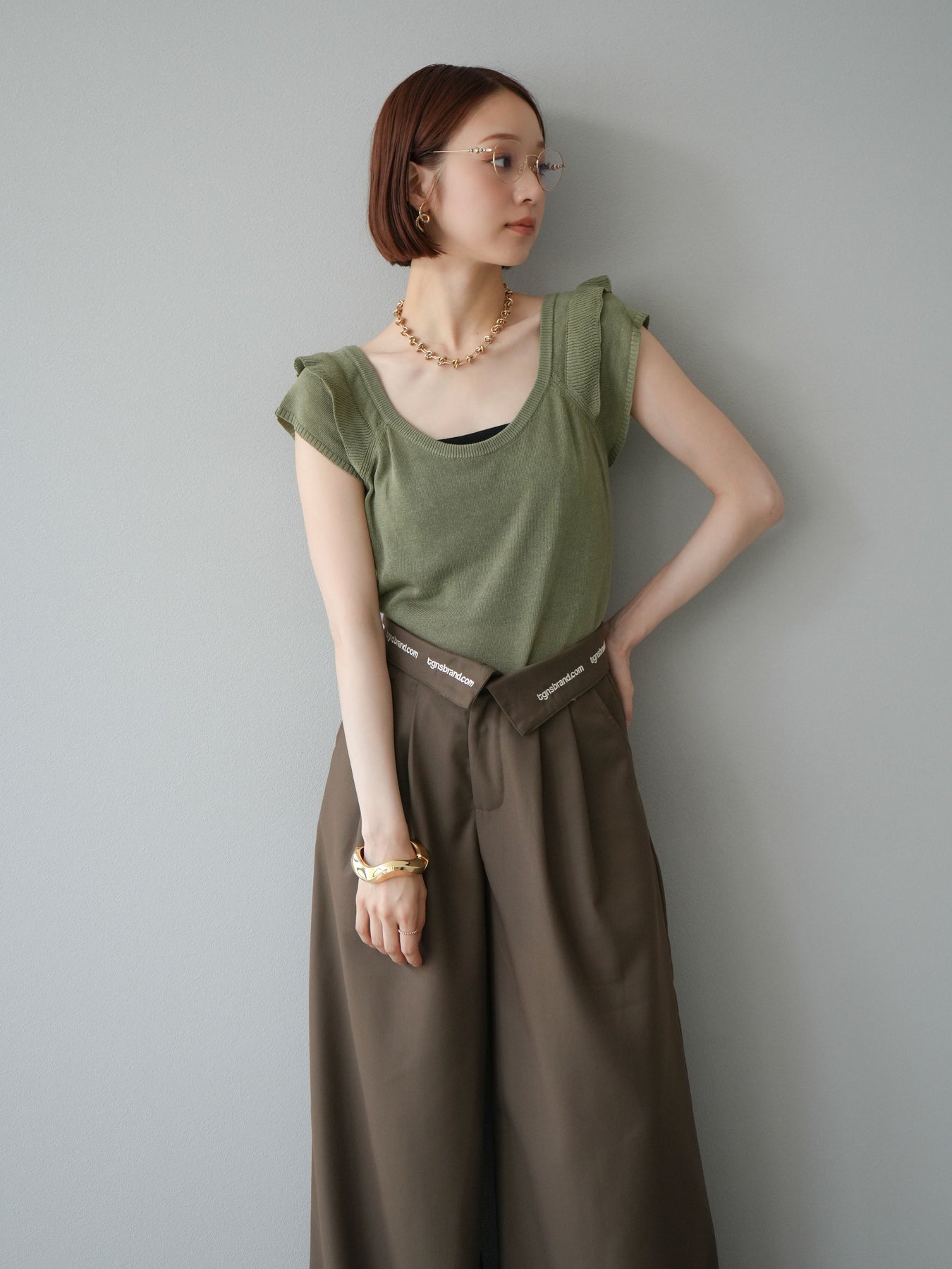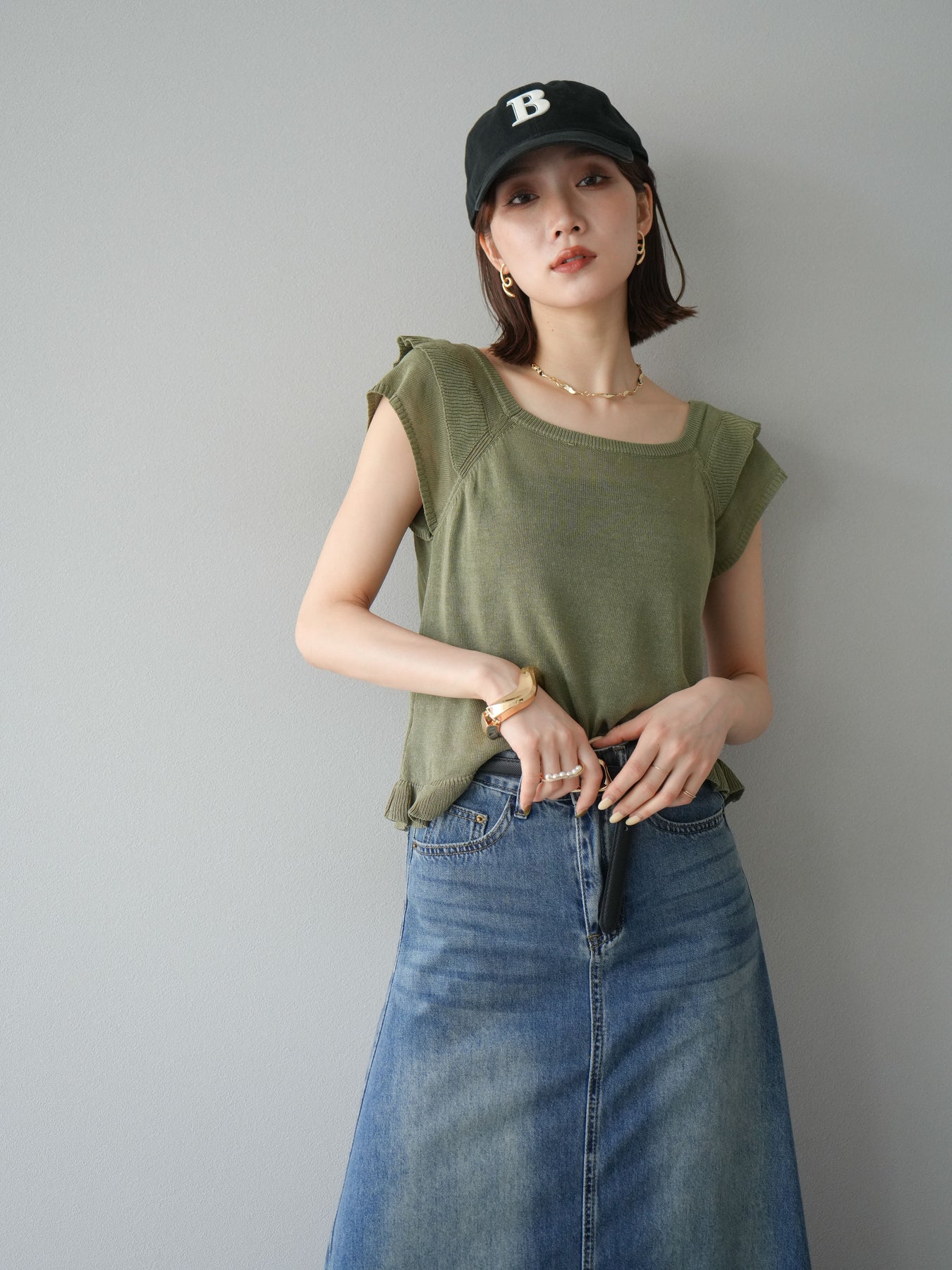 [予約]リネンタッチフリルニットタンクトップ/カーキ