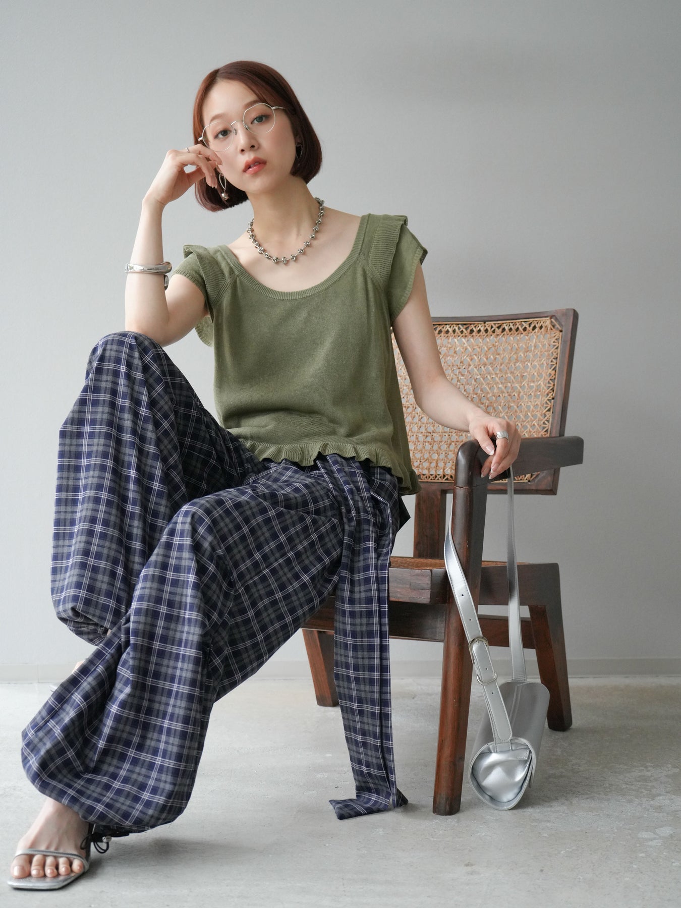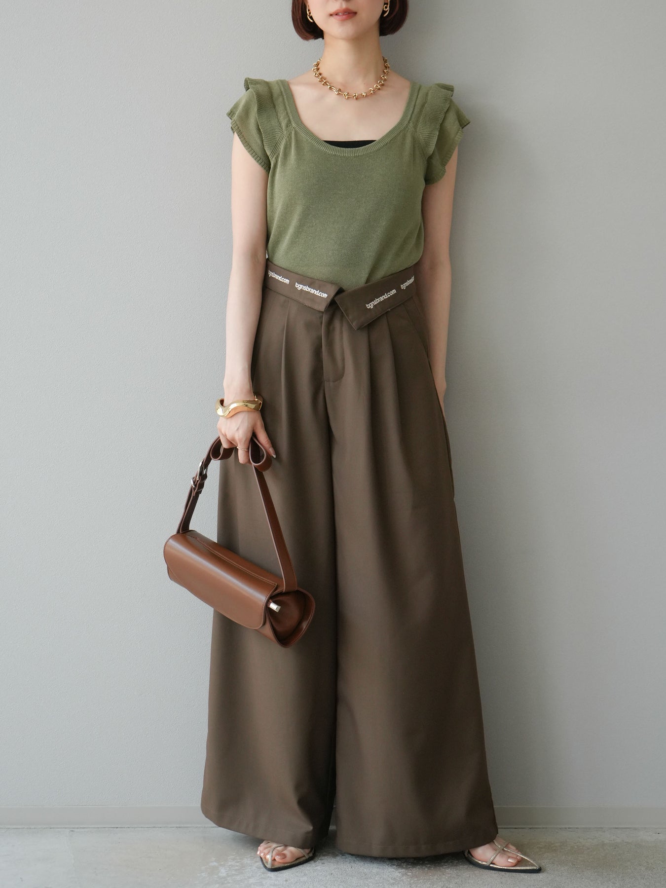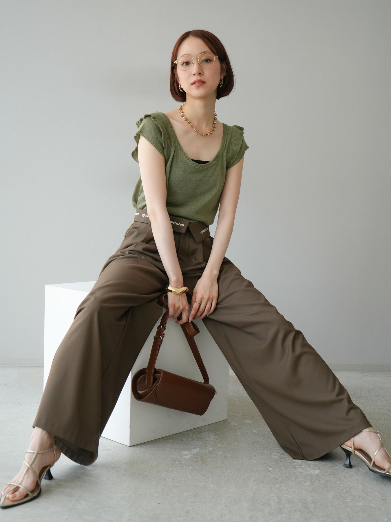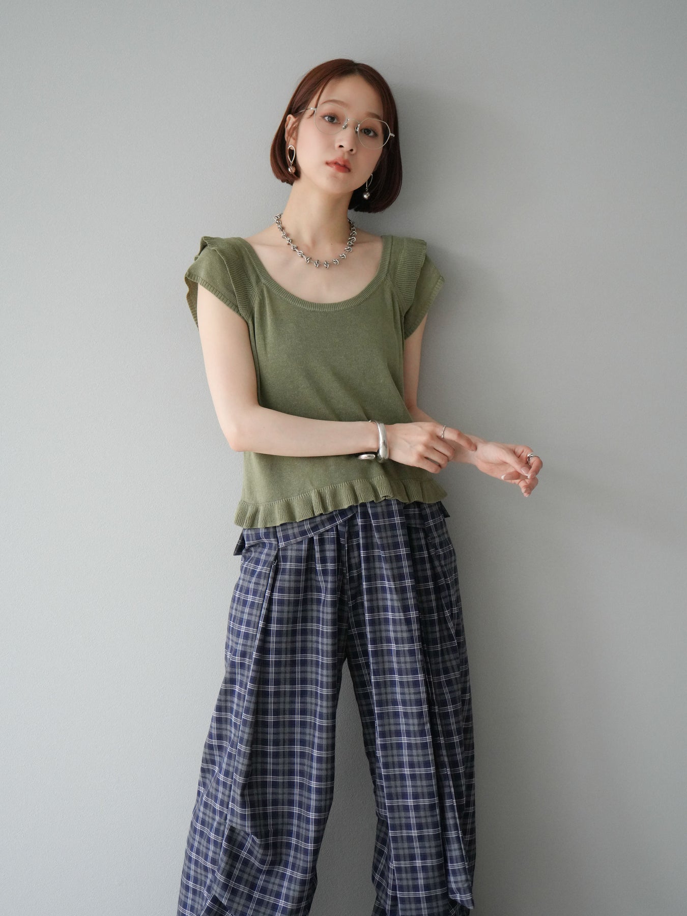 [予約]リネンタッチフリルニットタンクトップ/カーキ