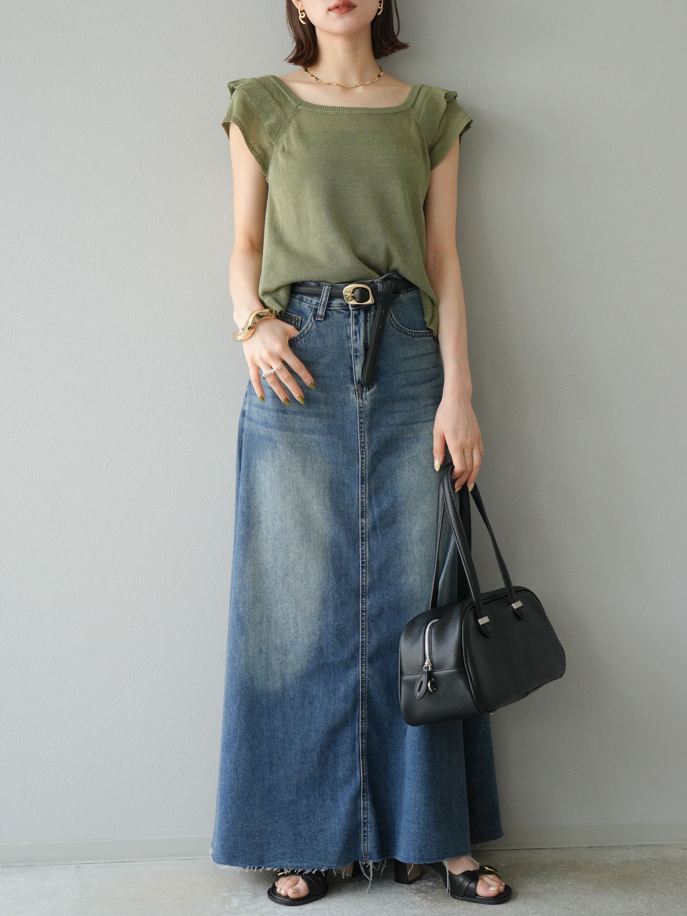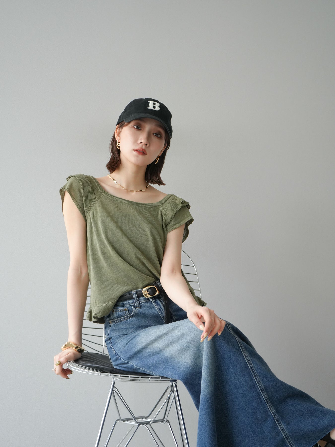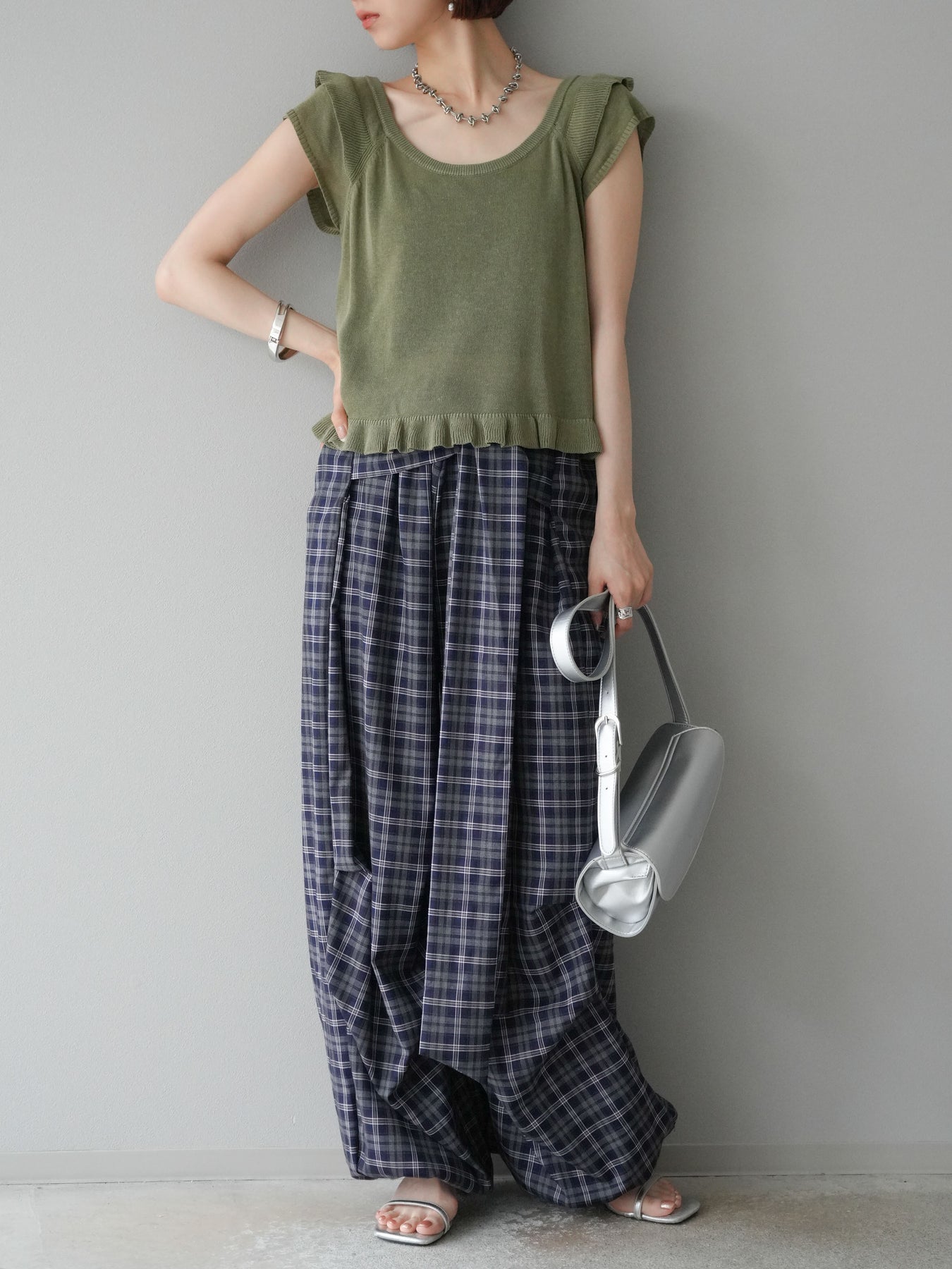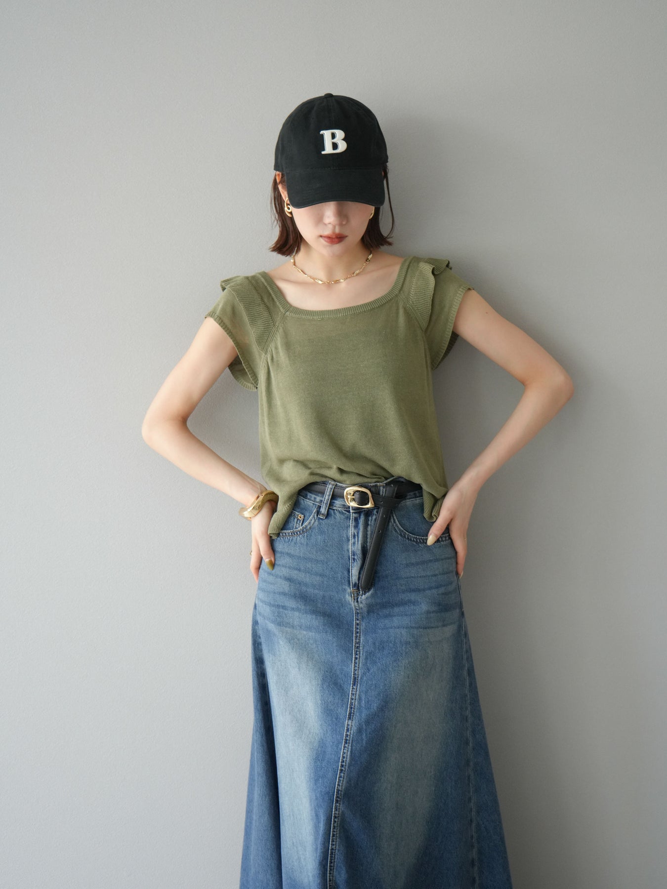 [予約]リネンタッチフリルニットタンクトップ/カーキ