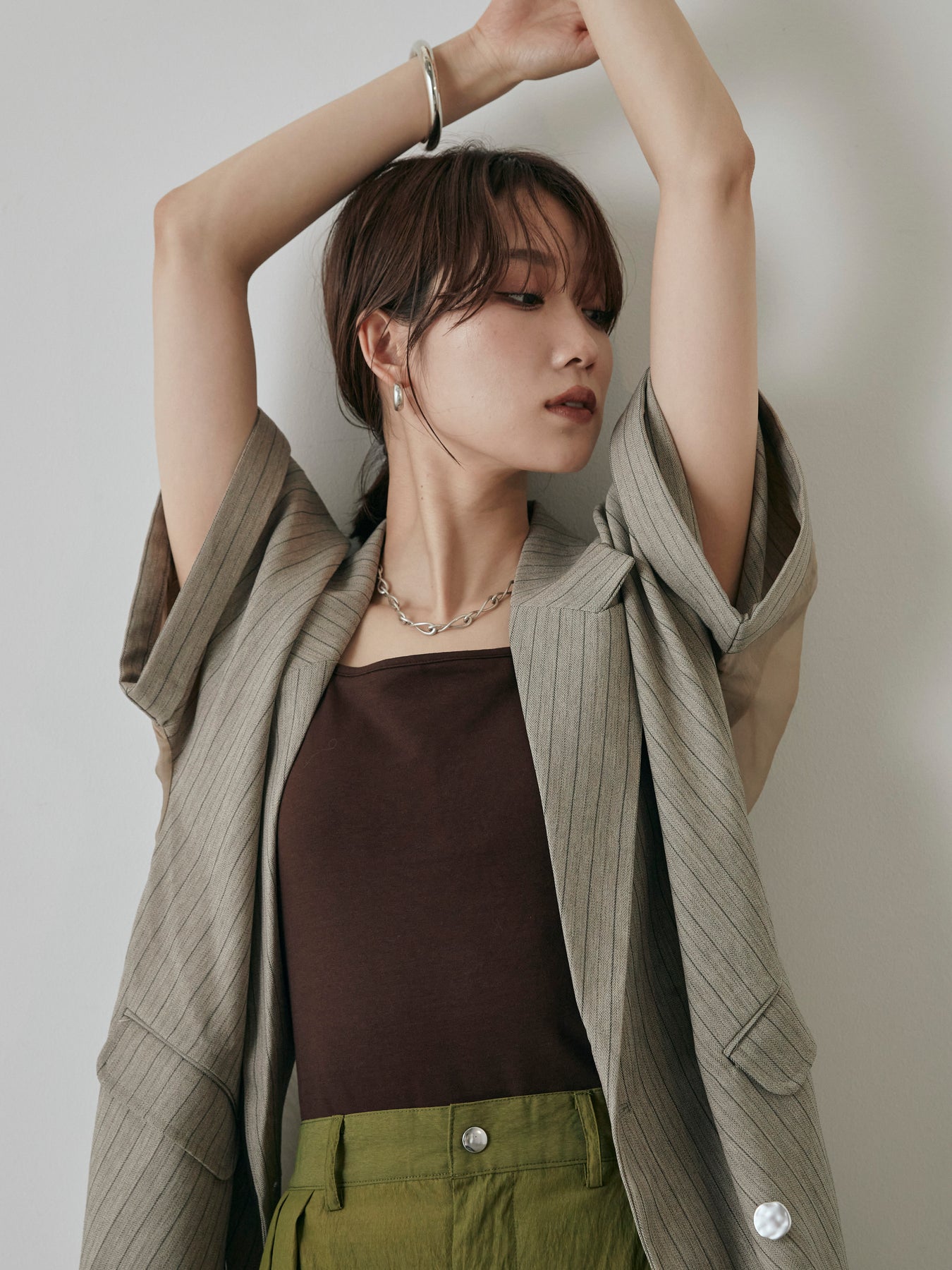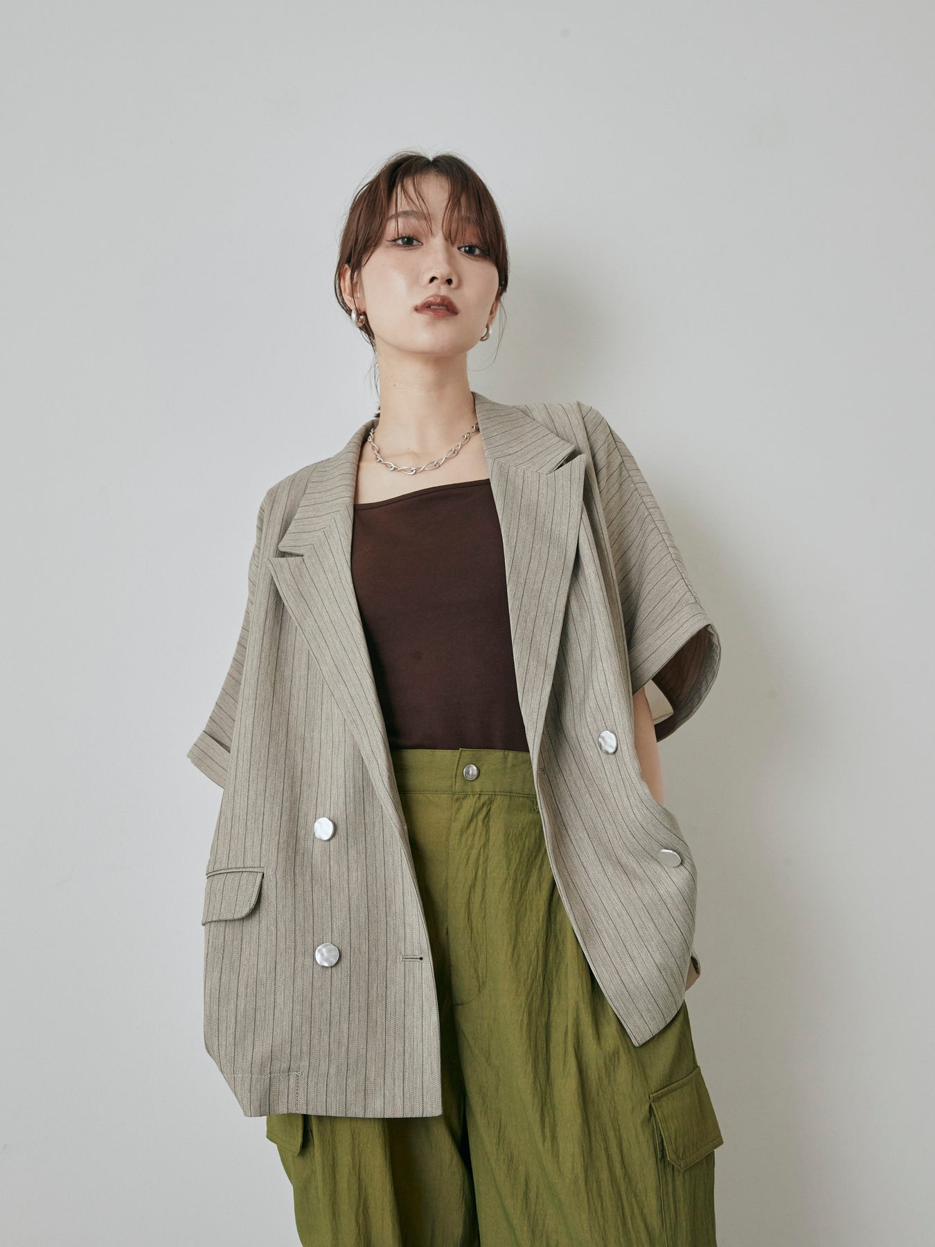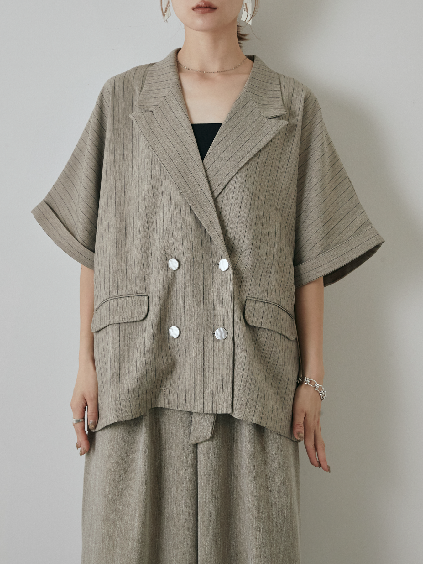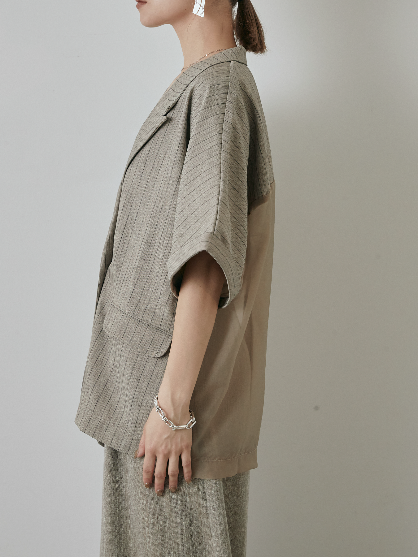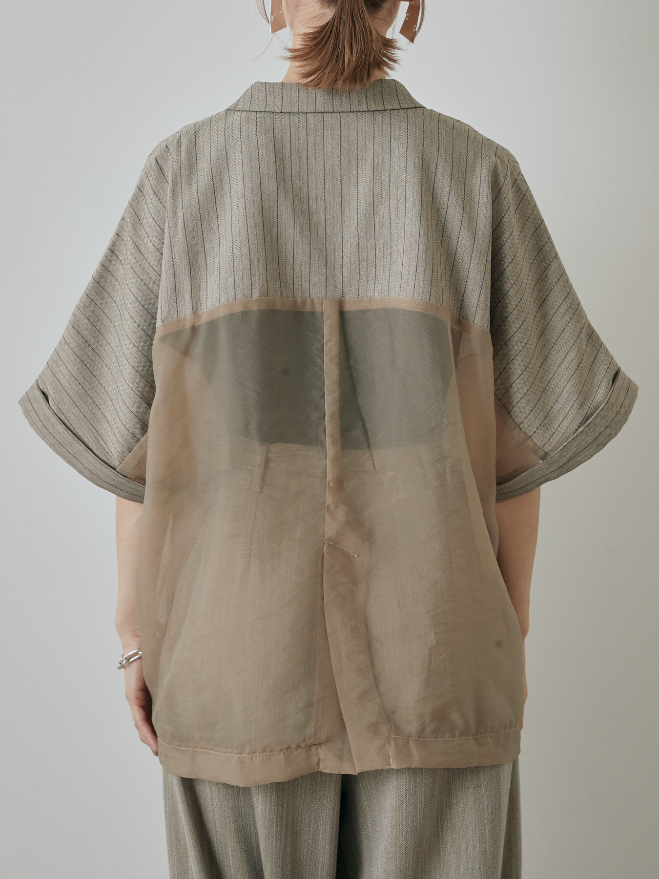 [予約]バックオーガンジーヘリンボーンストライプハーフジャケット/グレージュ