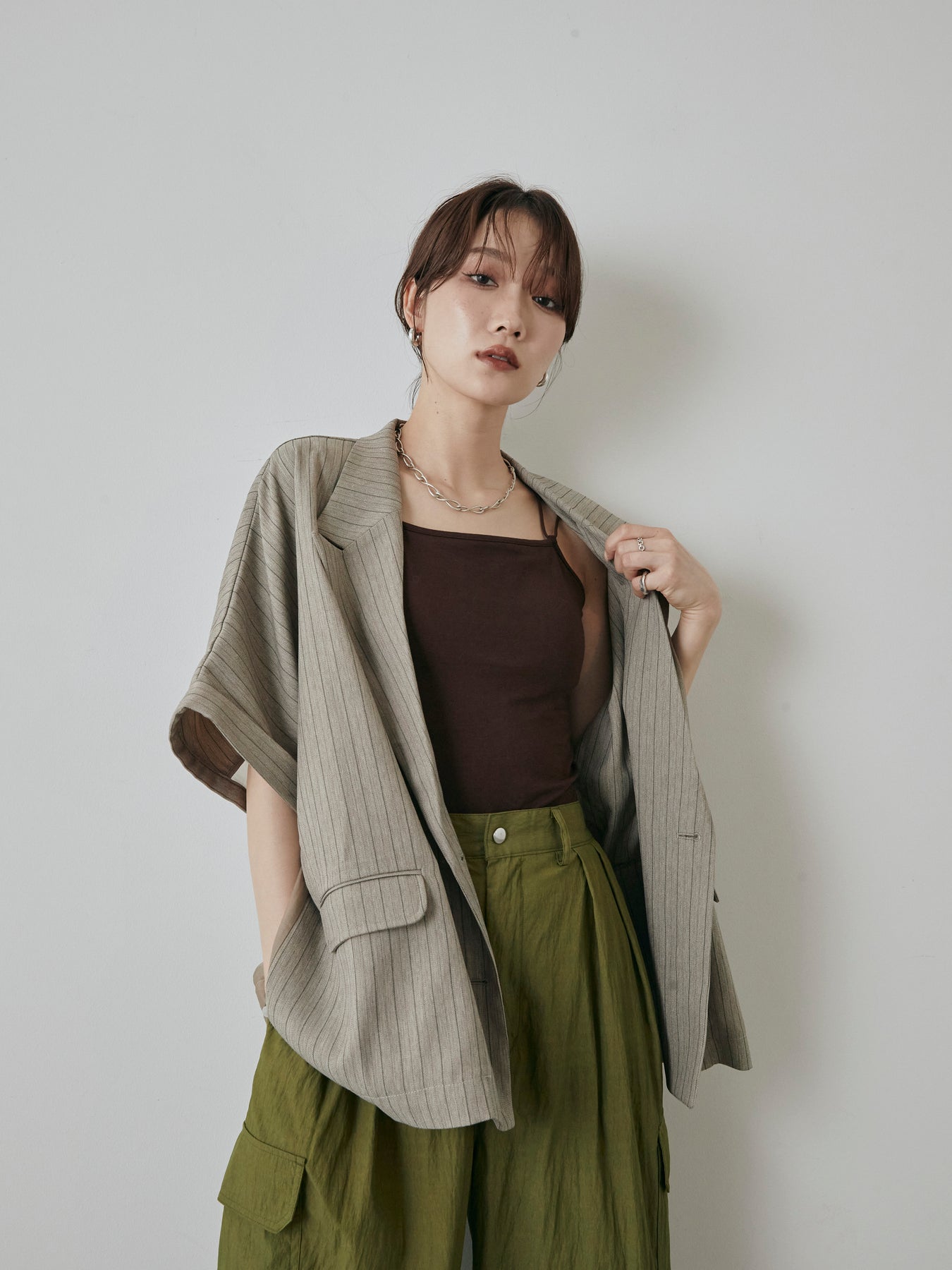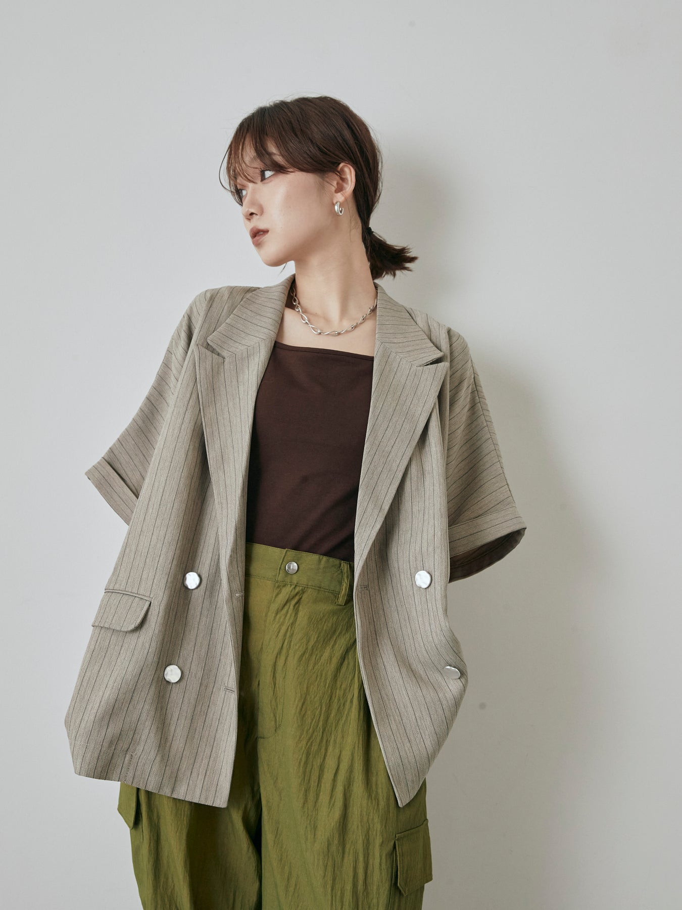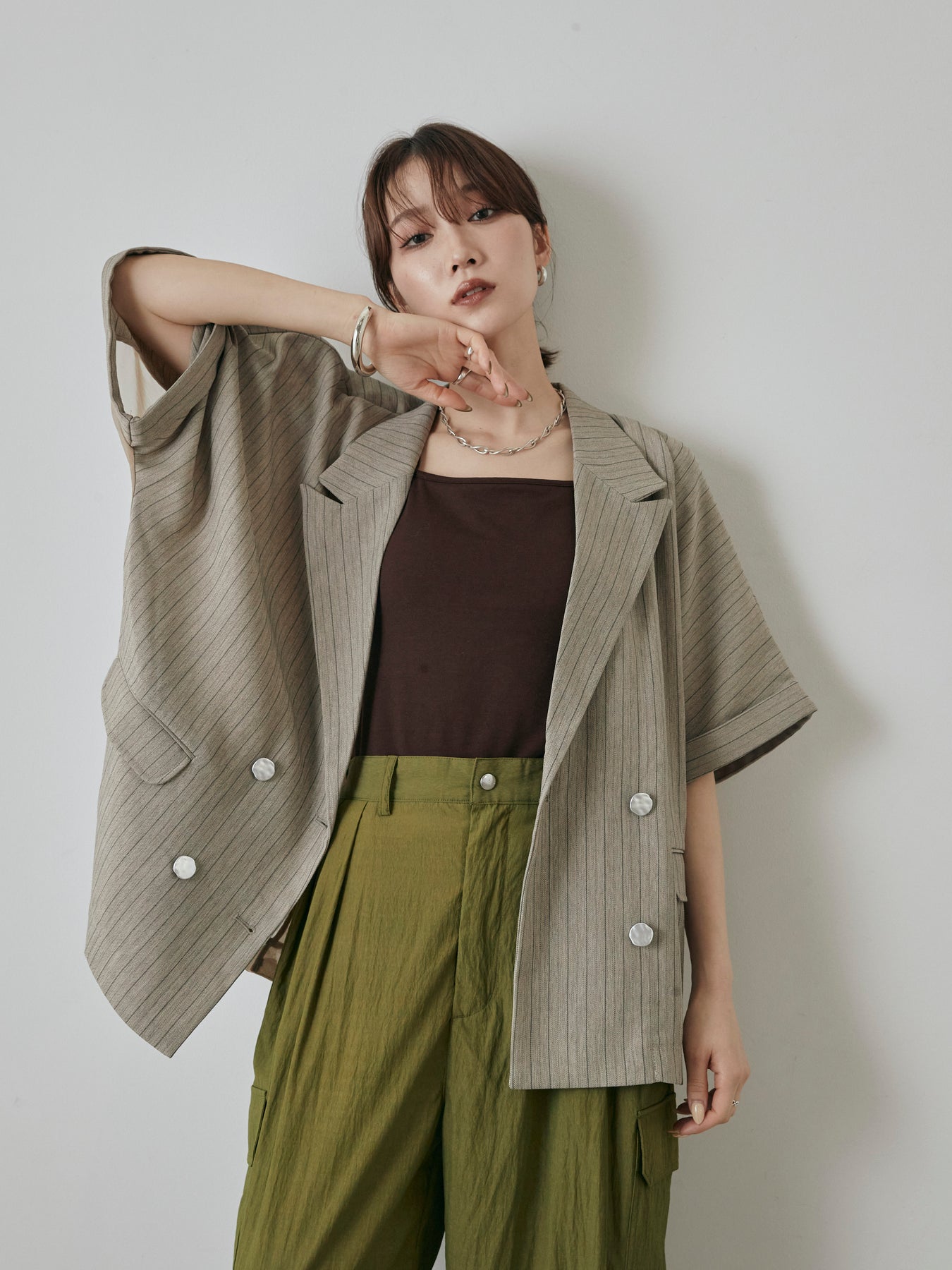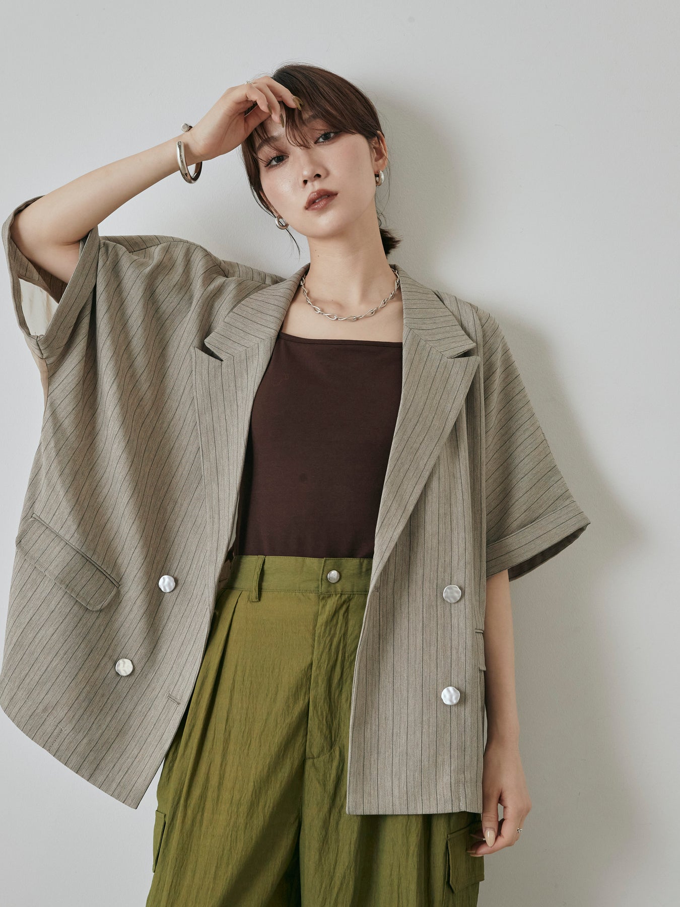 [予約]バックオーガンジーヘリンボーンストライプハーフジャケット/グレージュ