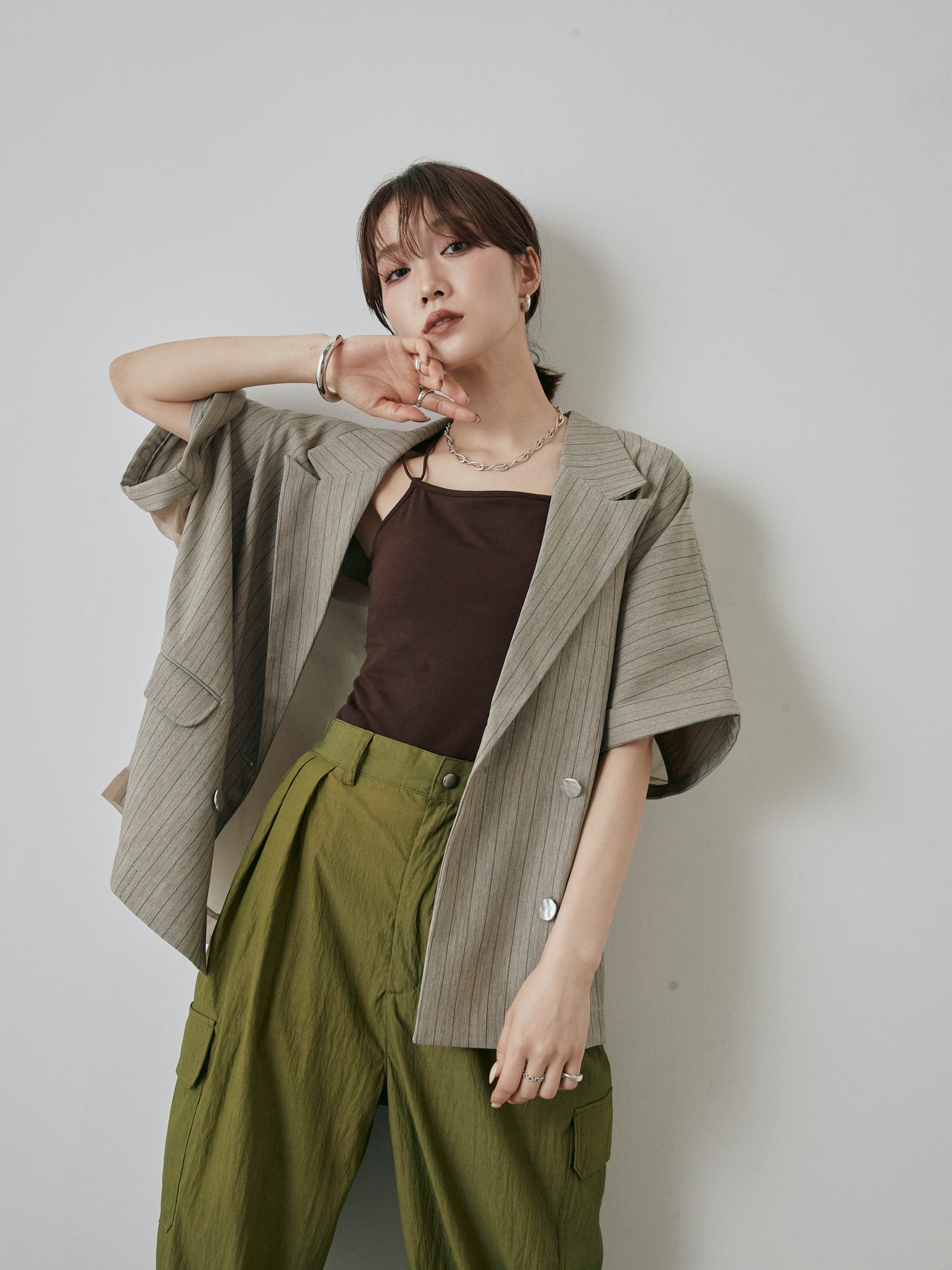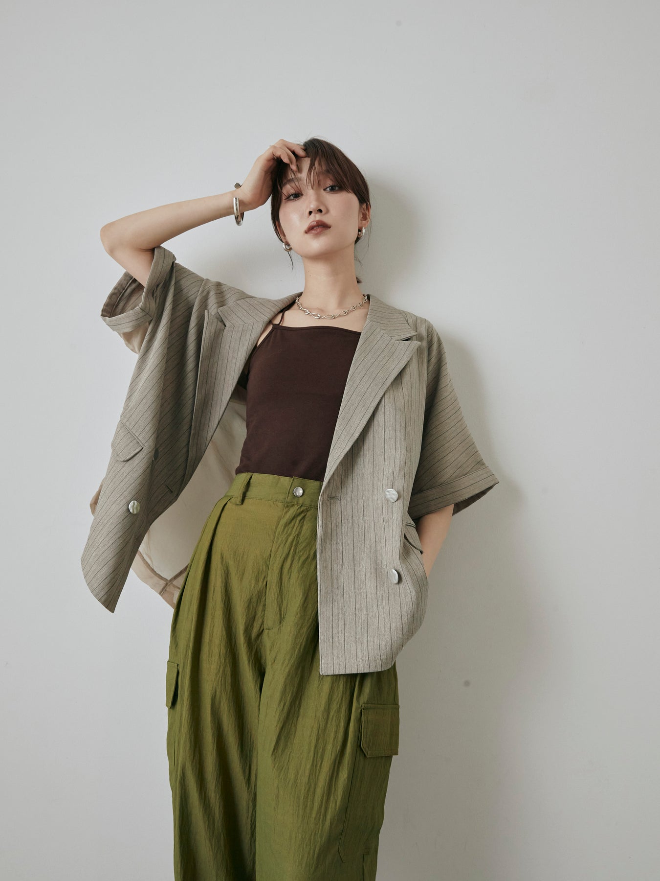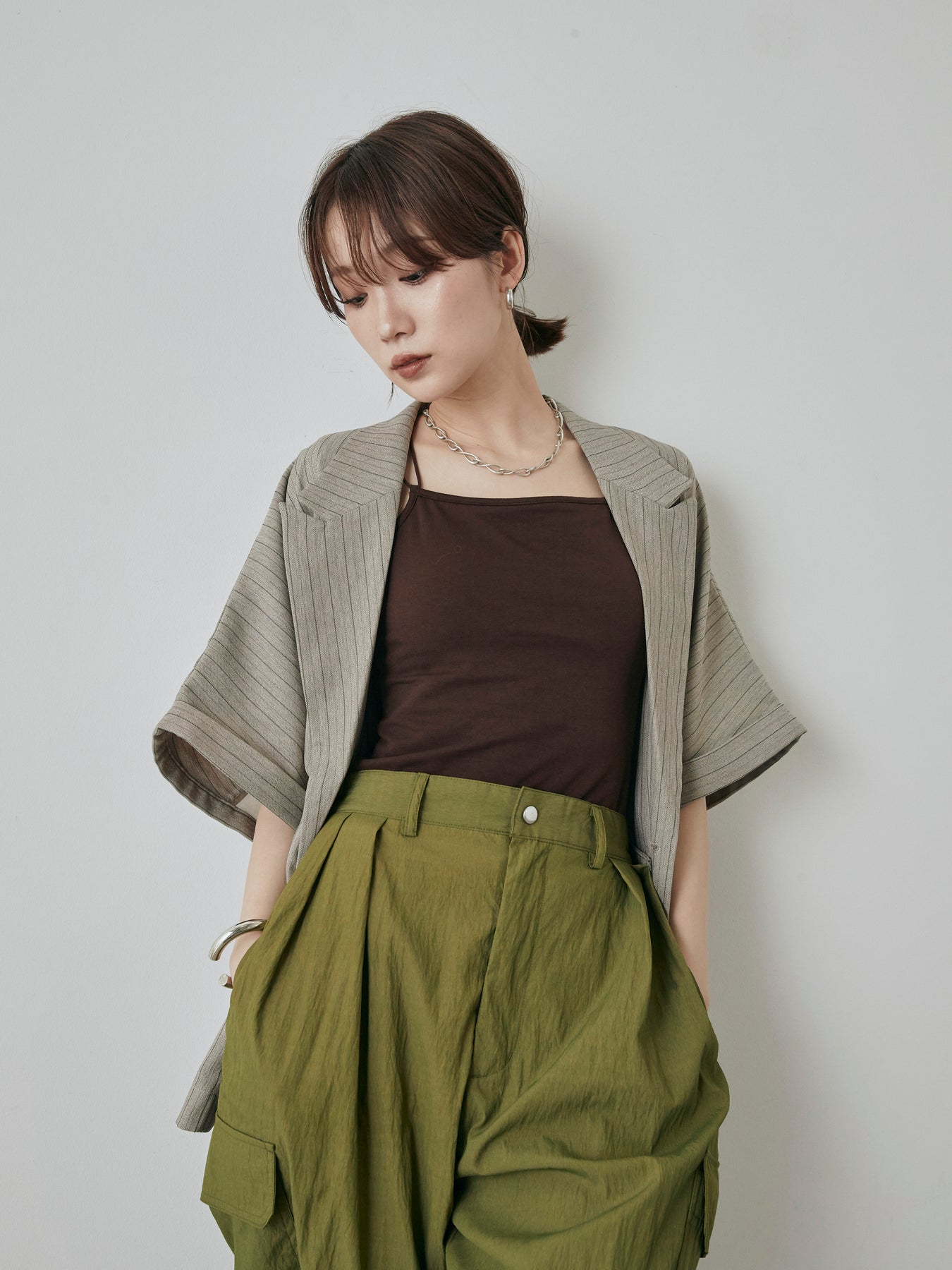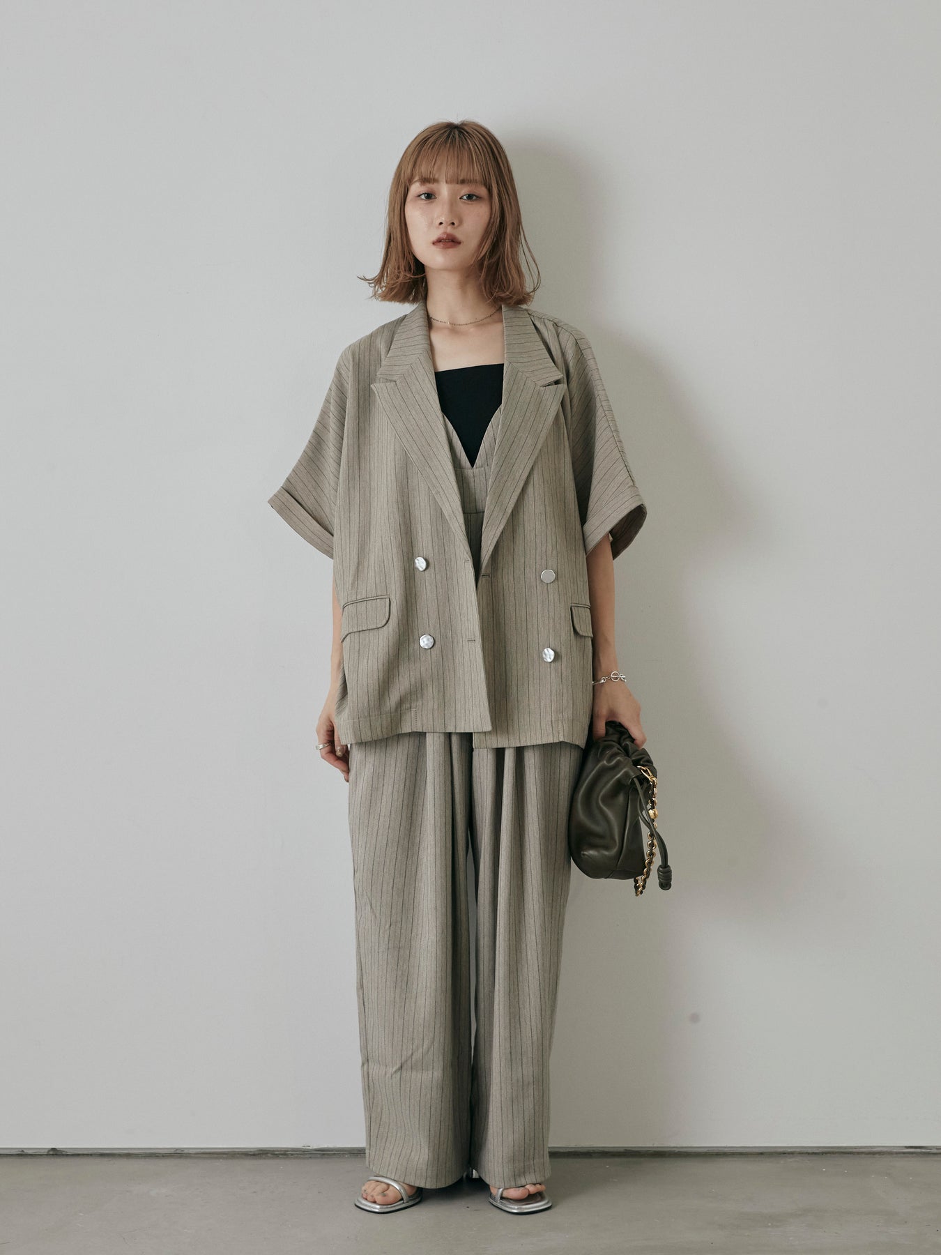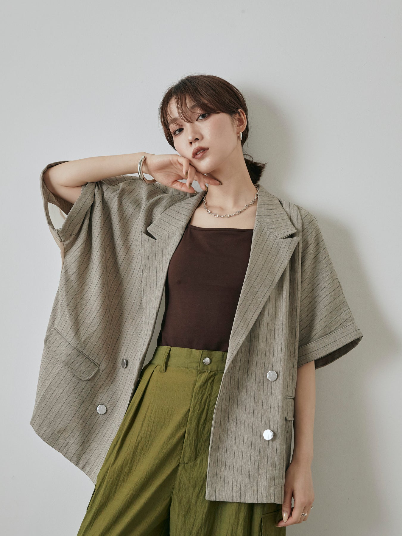 [予約]バックオーガンジーヘリンボーンストライプハーフジャケット/グレージュ