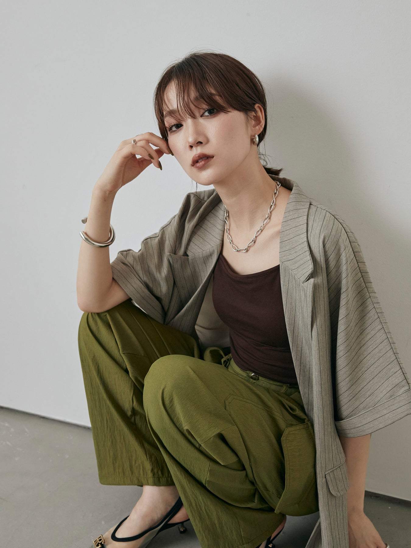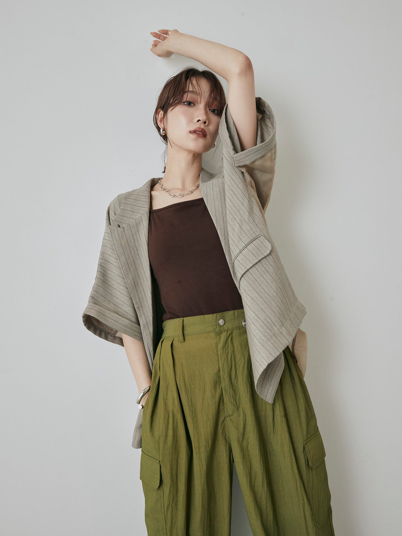 [予約]バックオーガンジーヘリンボーンストライプハーフジャケットに関連する商品を探す↓
