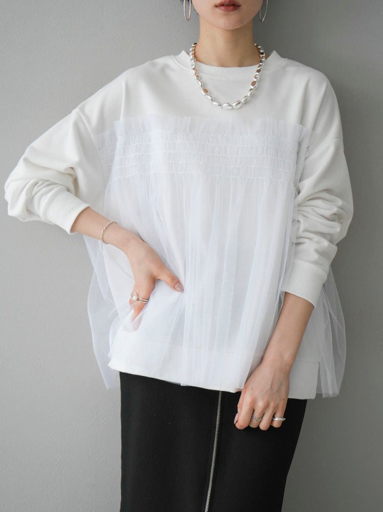 [予約]チュールドッキング裏毛プルオーバー/オフ