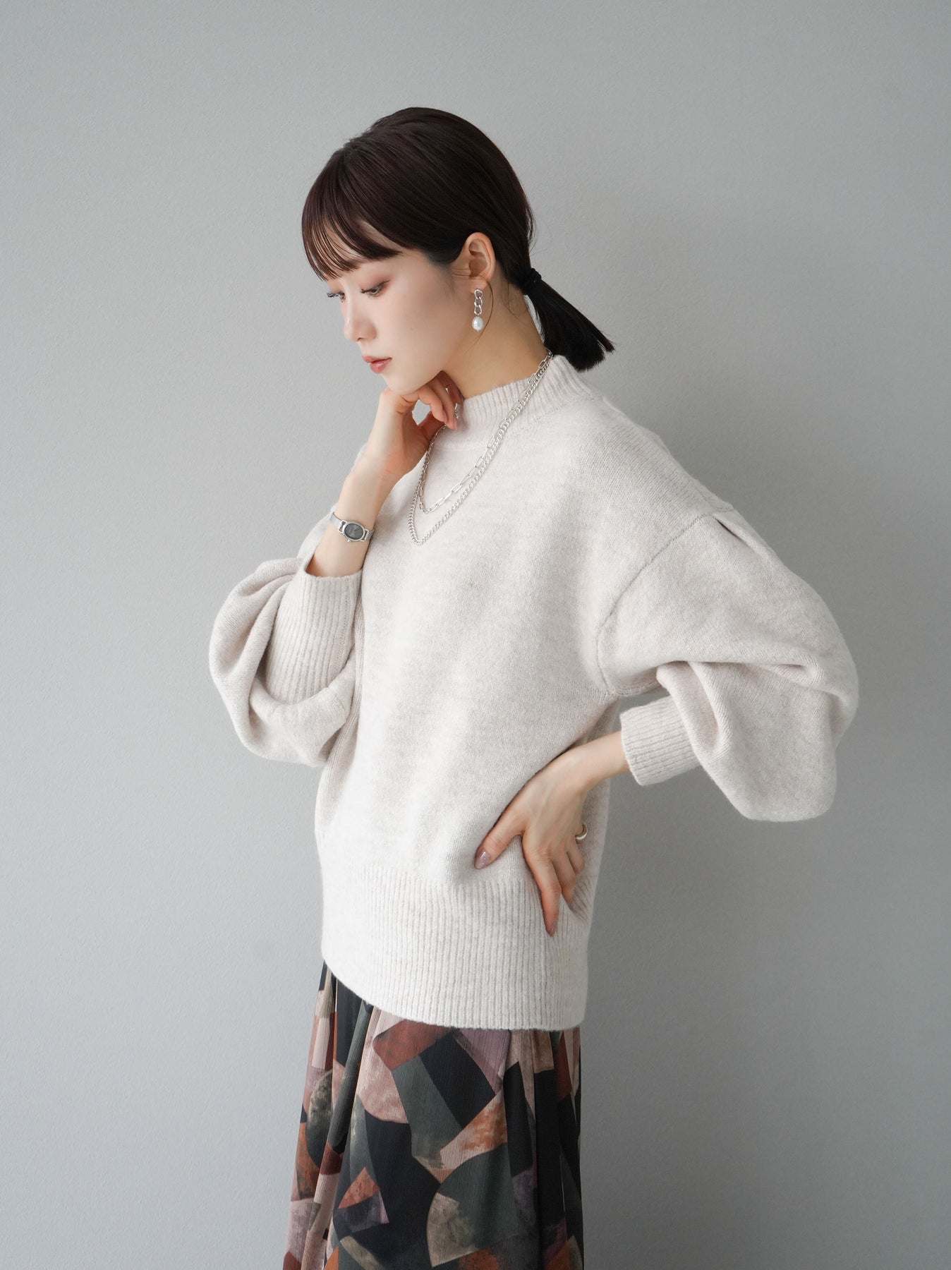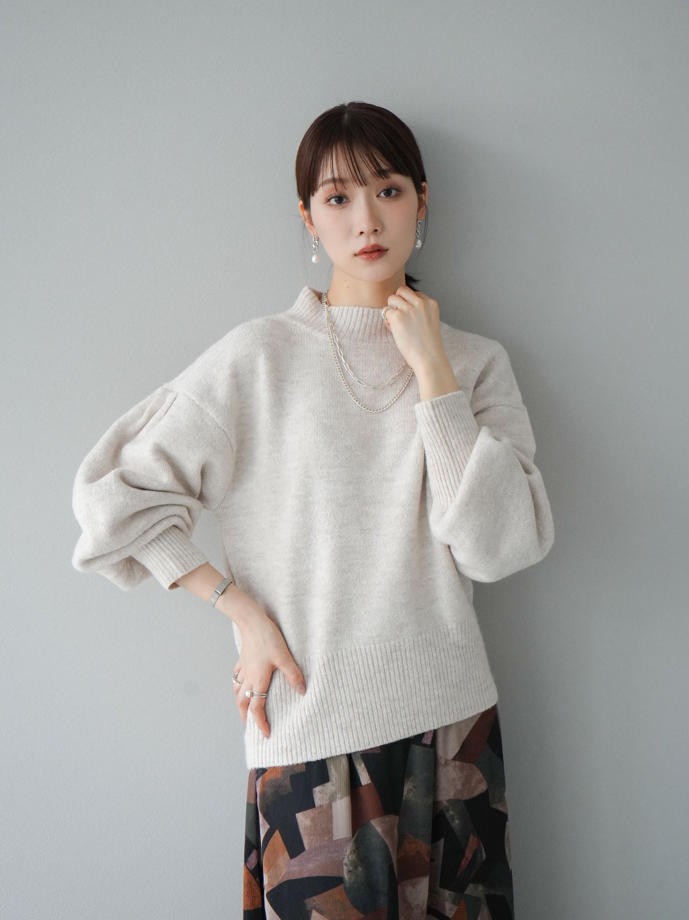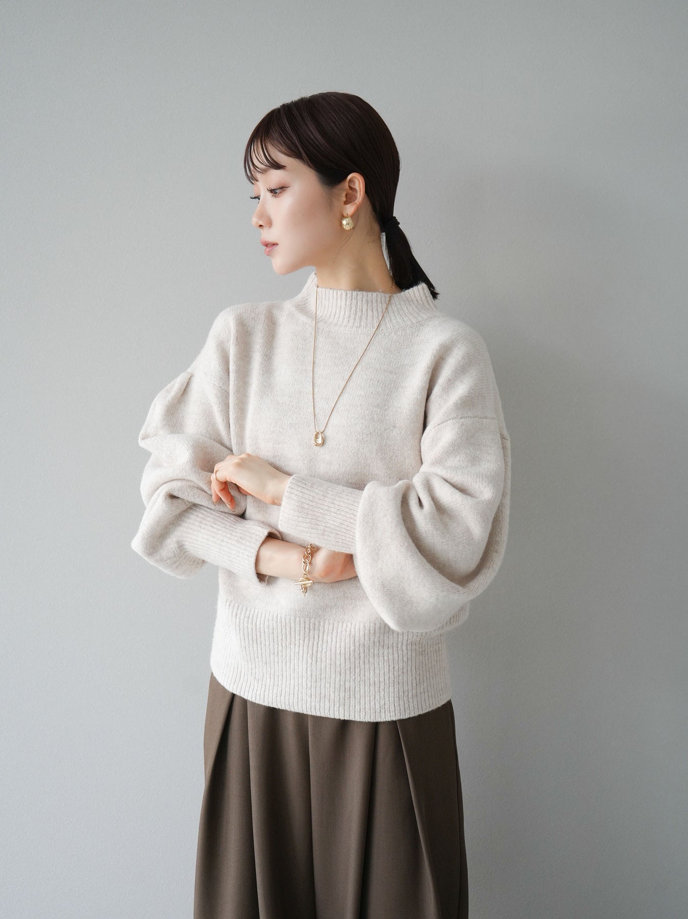 [予約]ボリュームスリーブプチネックニットプルオーバー/オートミール