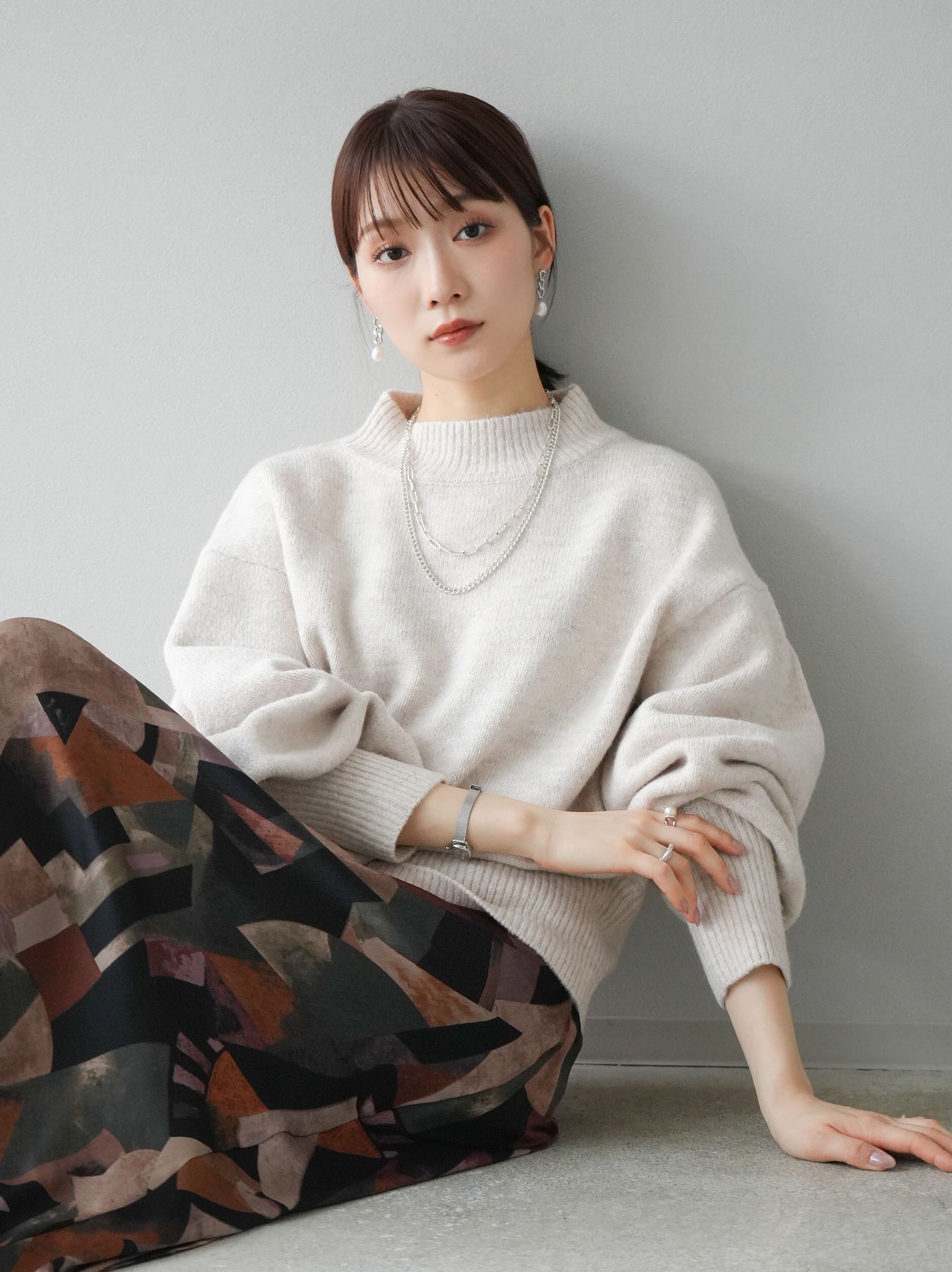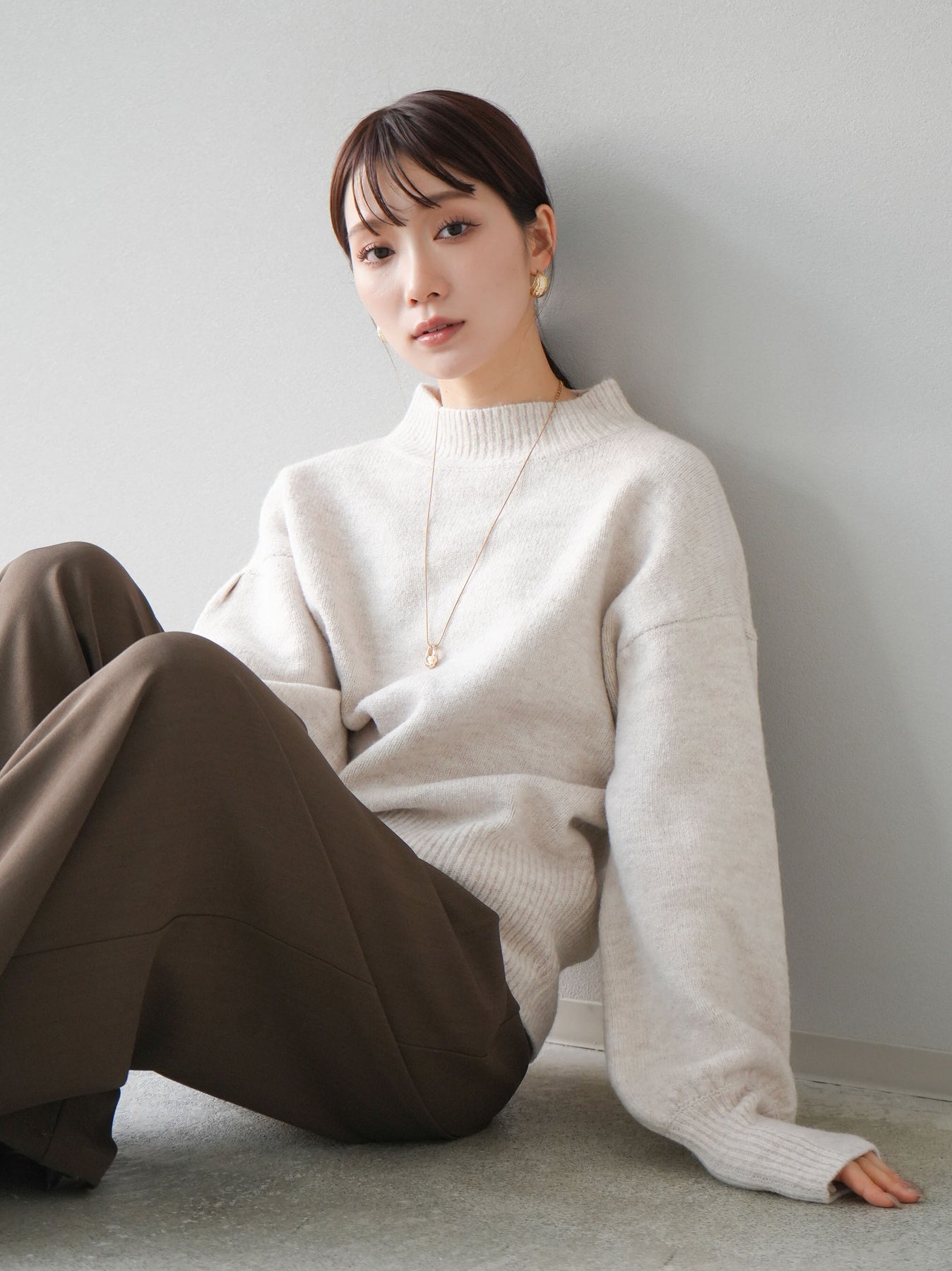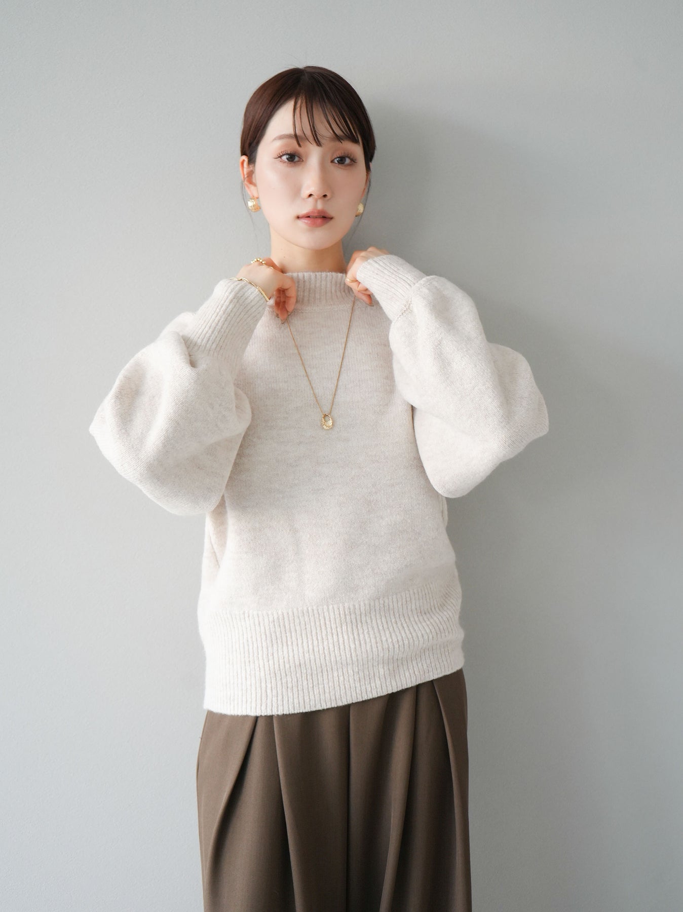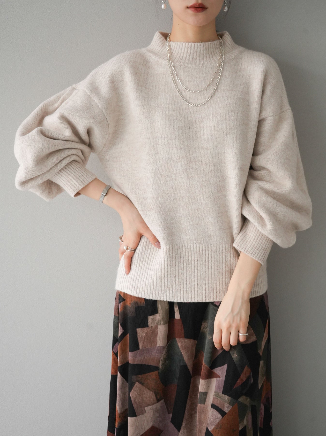 [予約]ボリュームスリーブプチネックニットプルオーバー/オートミール