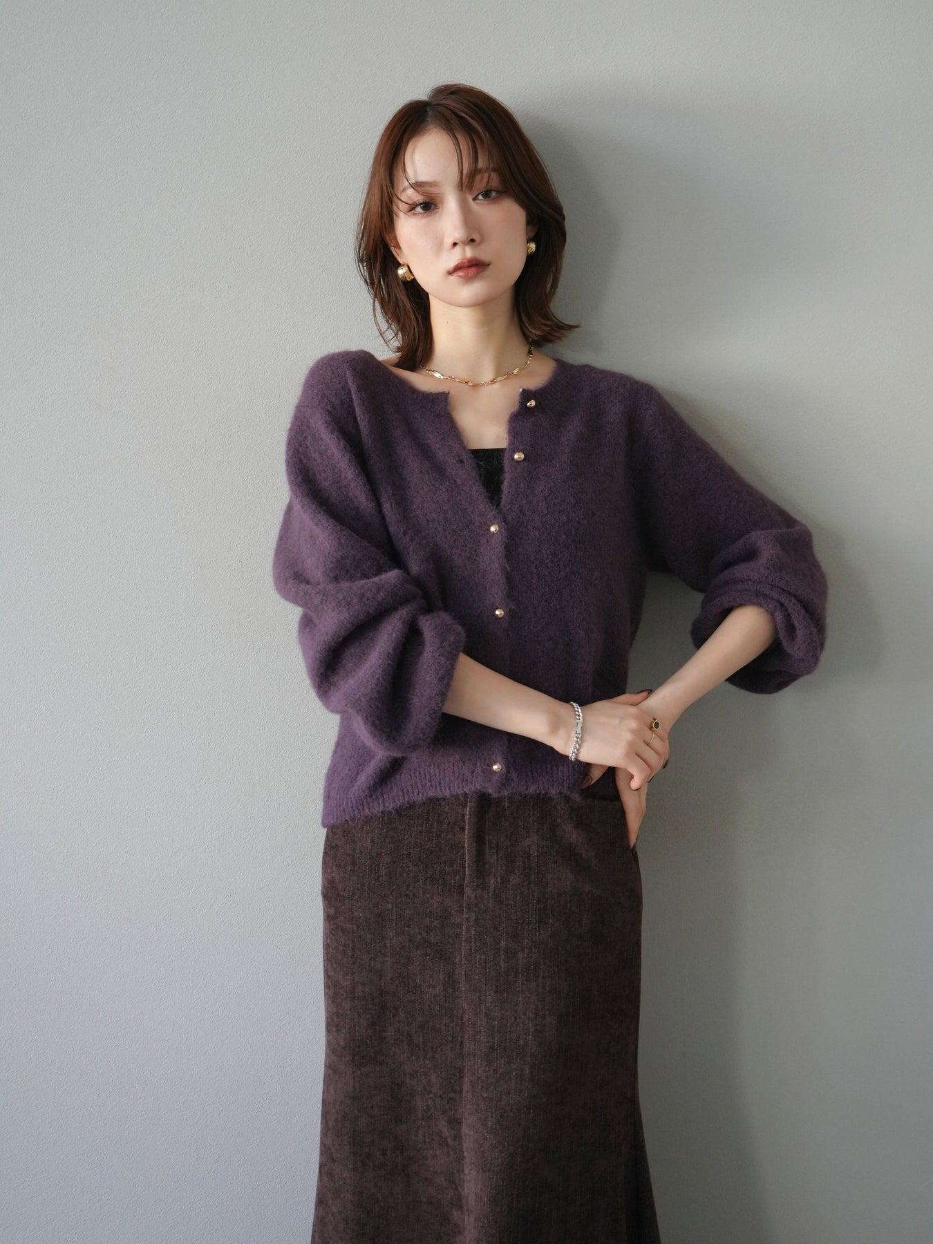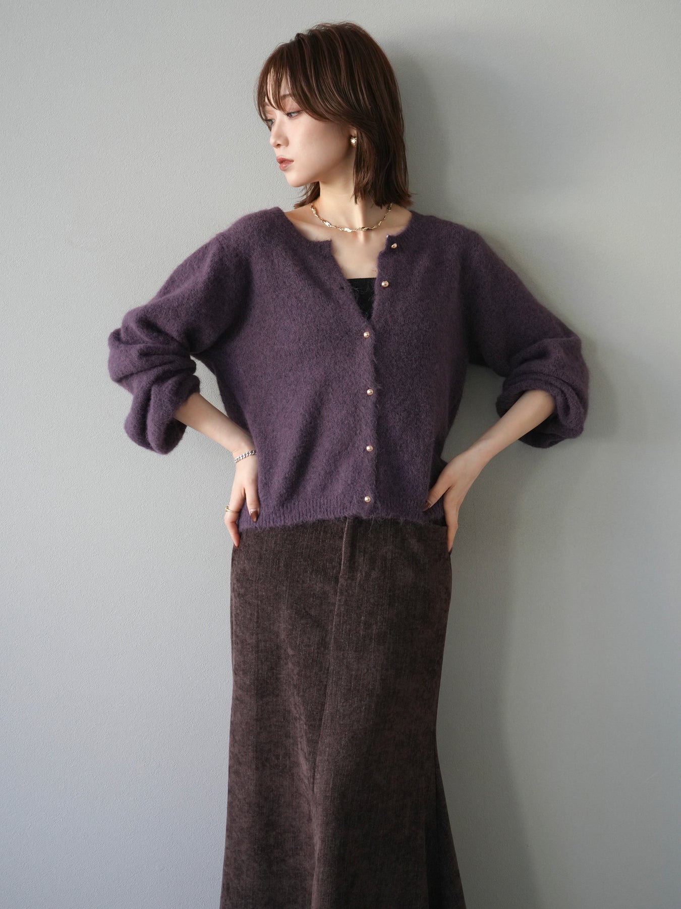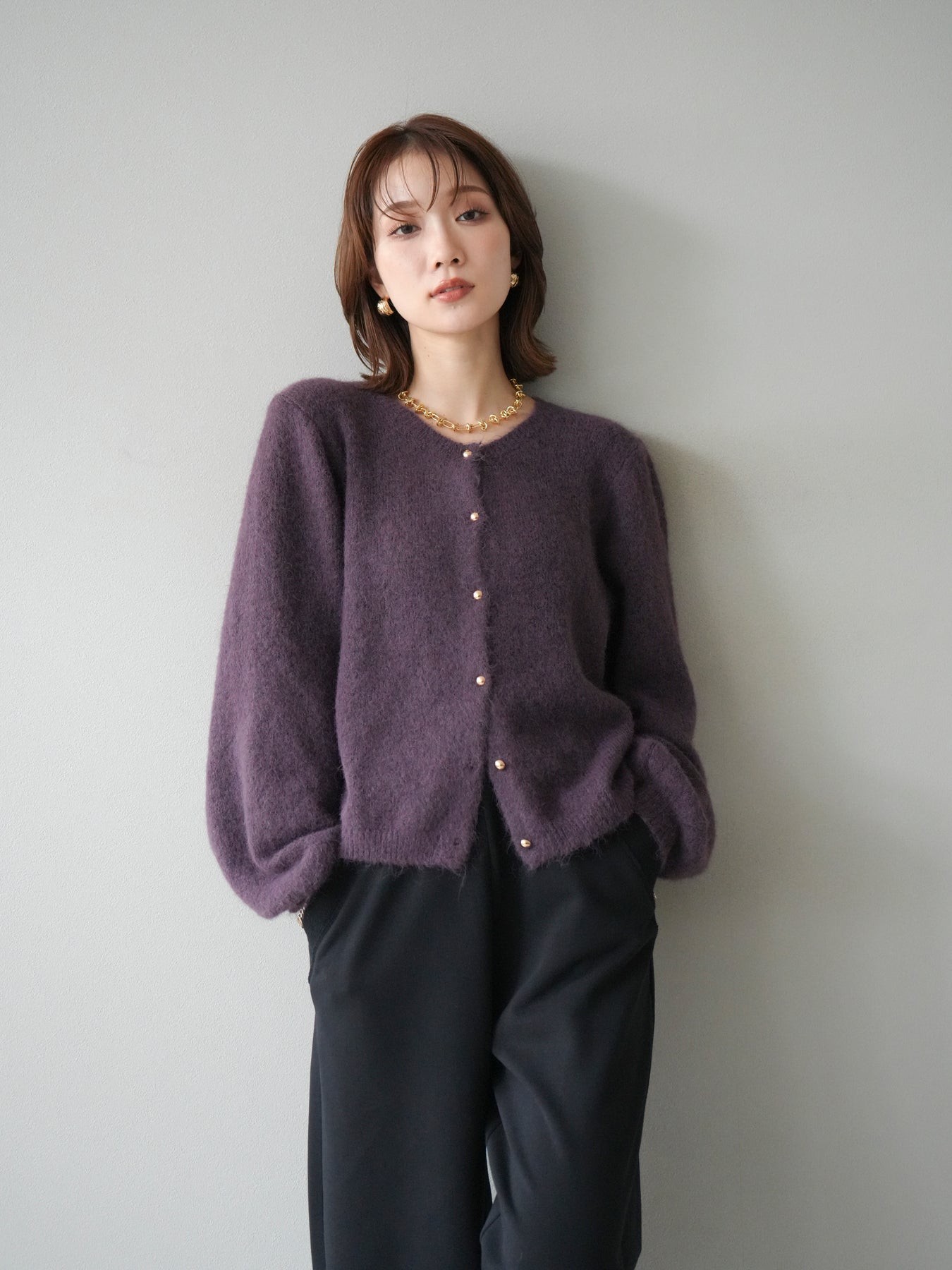 [予約]ゴールドボタンニットカーディガン/purple