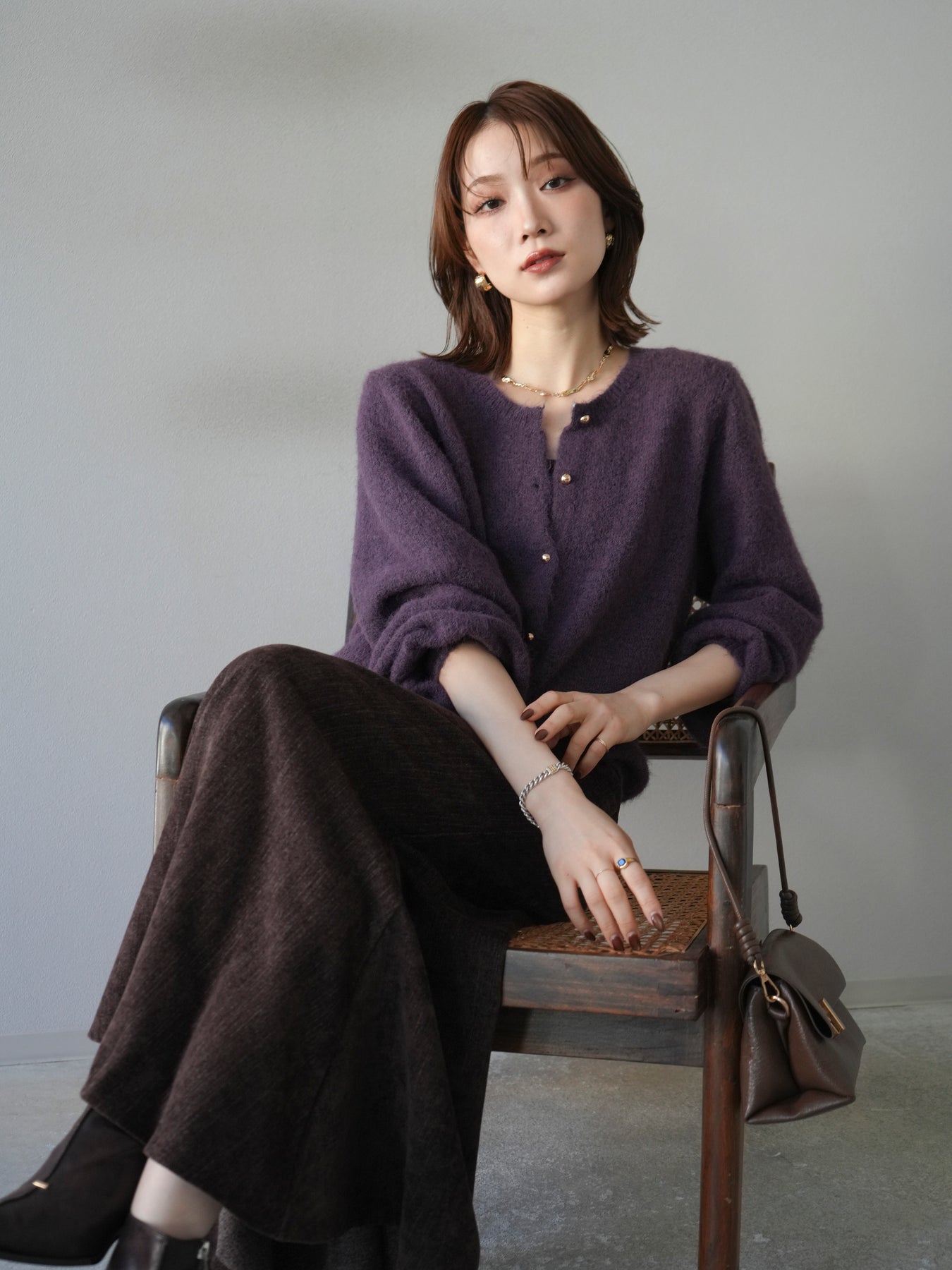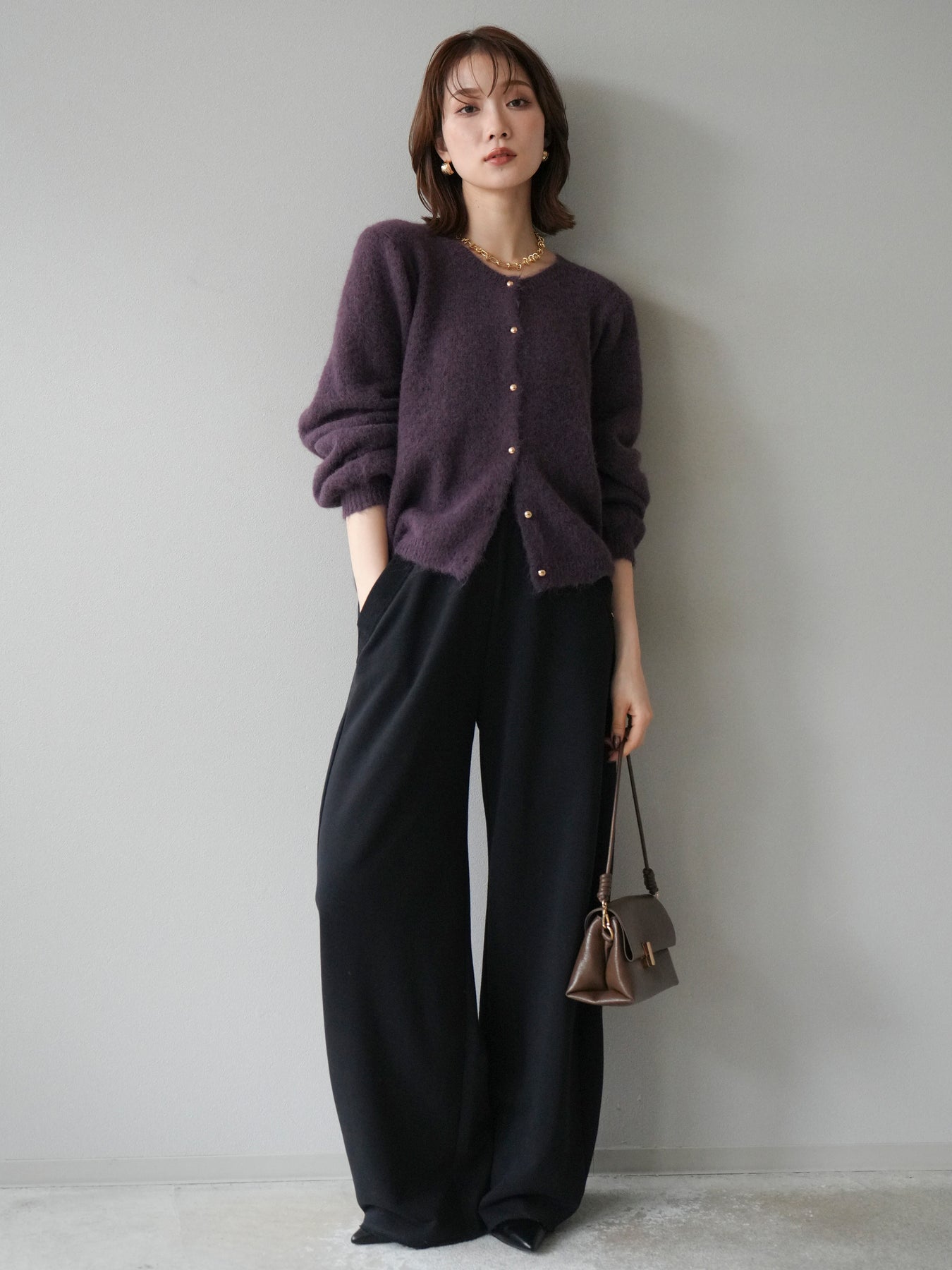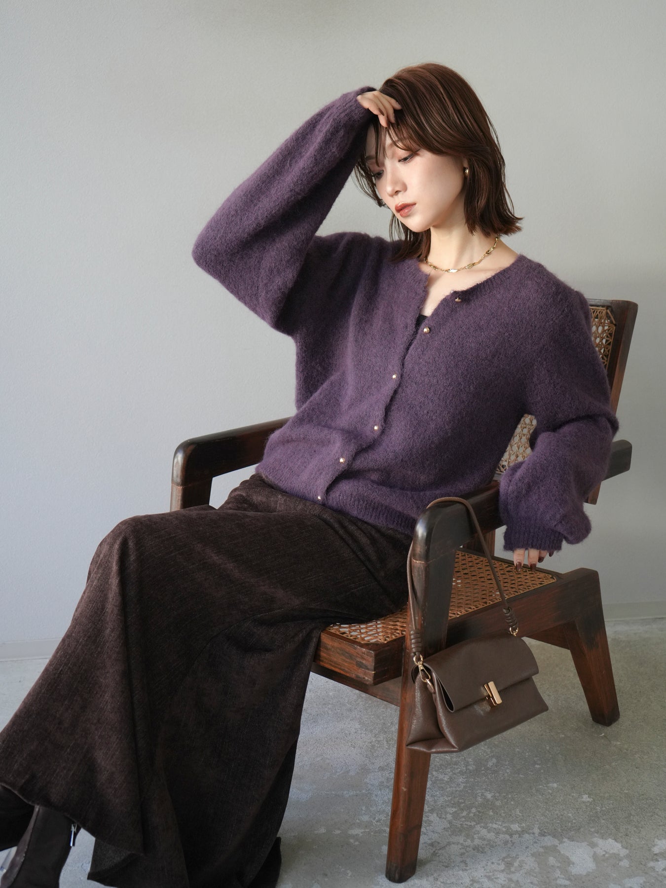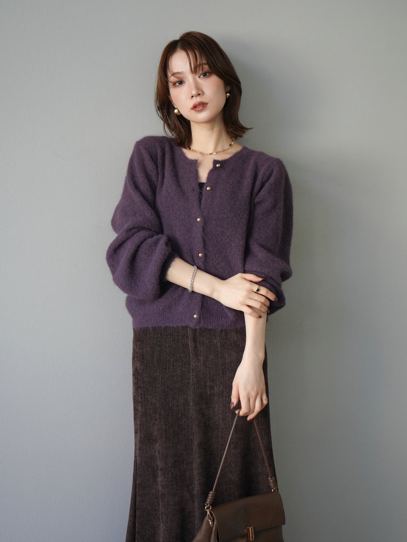 [予約]ゴールドボタンニットカーディガン/purple