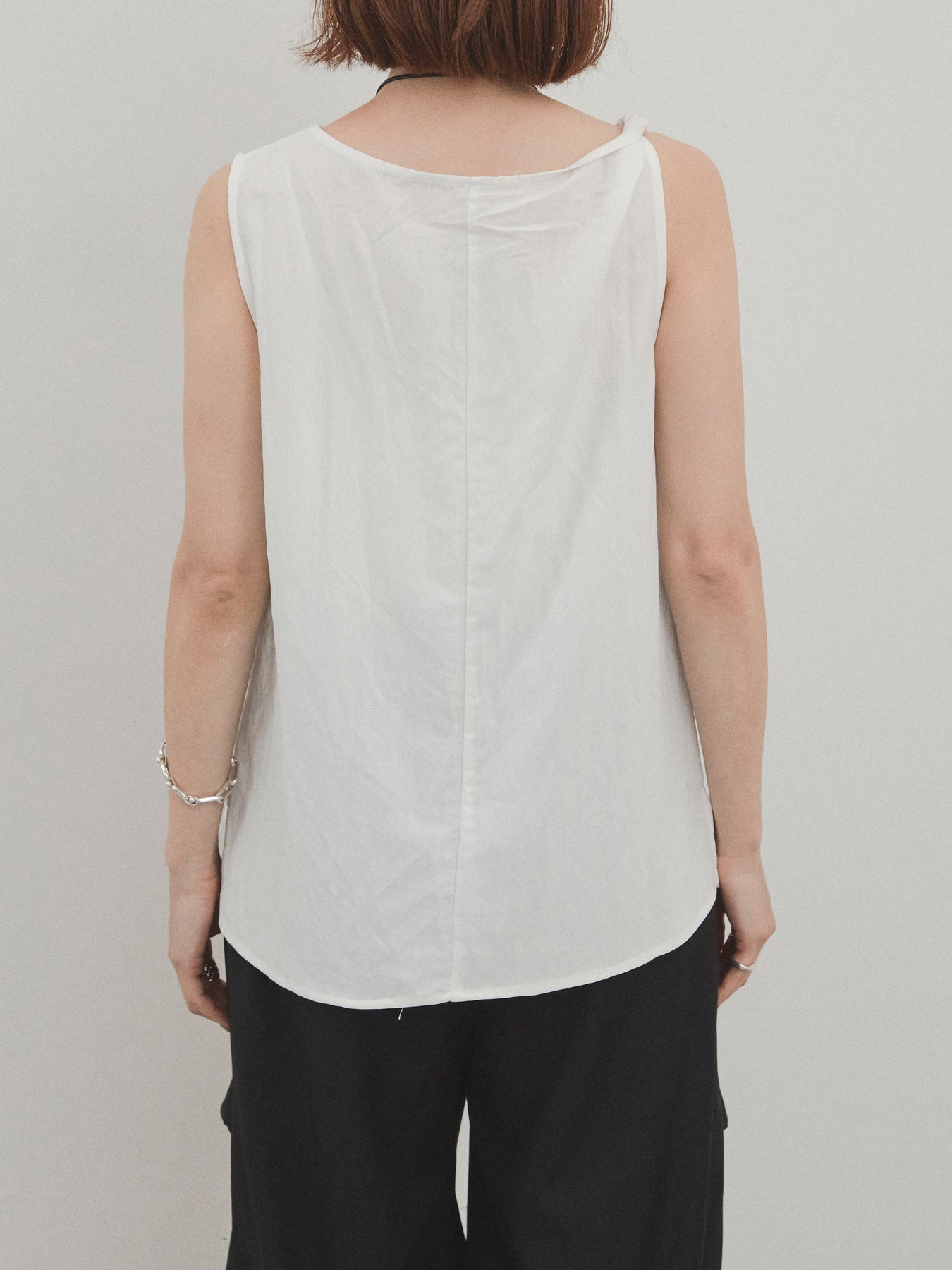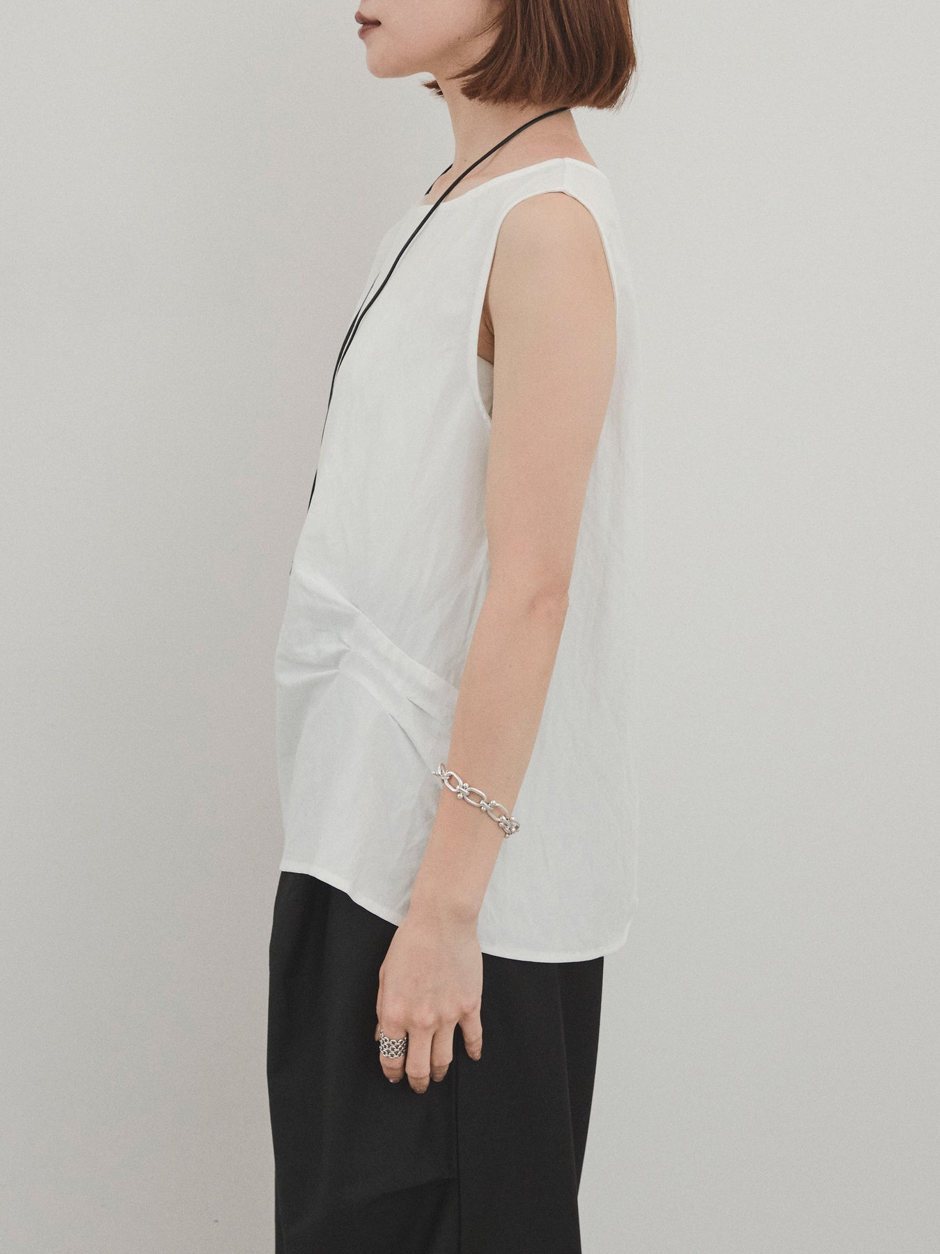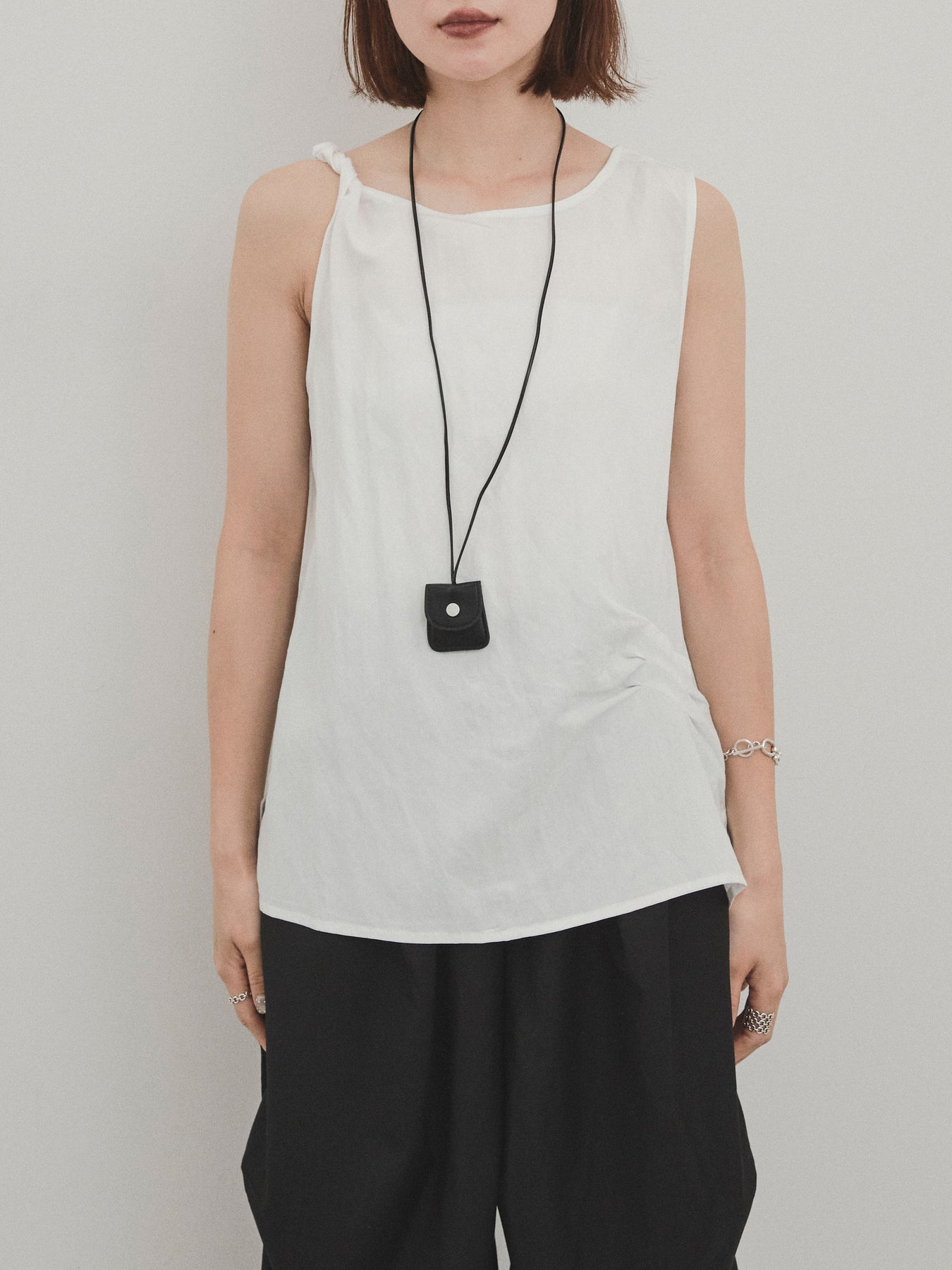 [予約]レザーネックレス付ツイストノースリブラウス/アイボリー