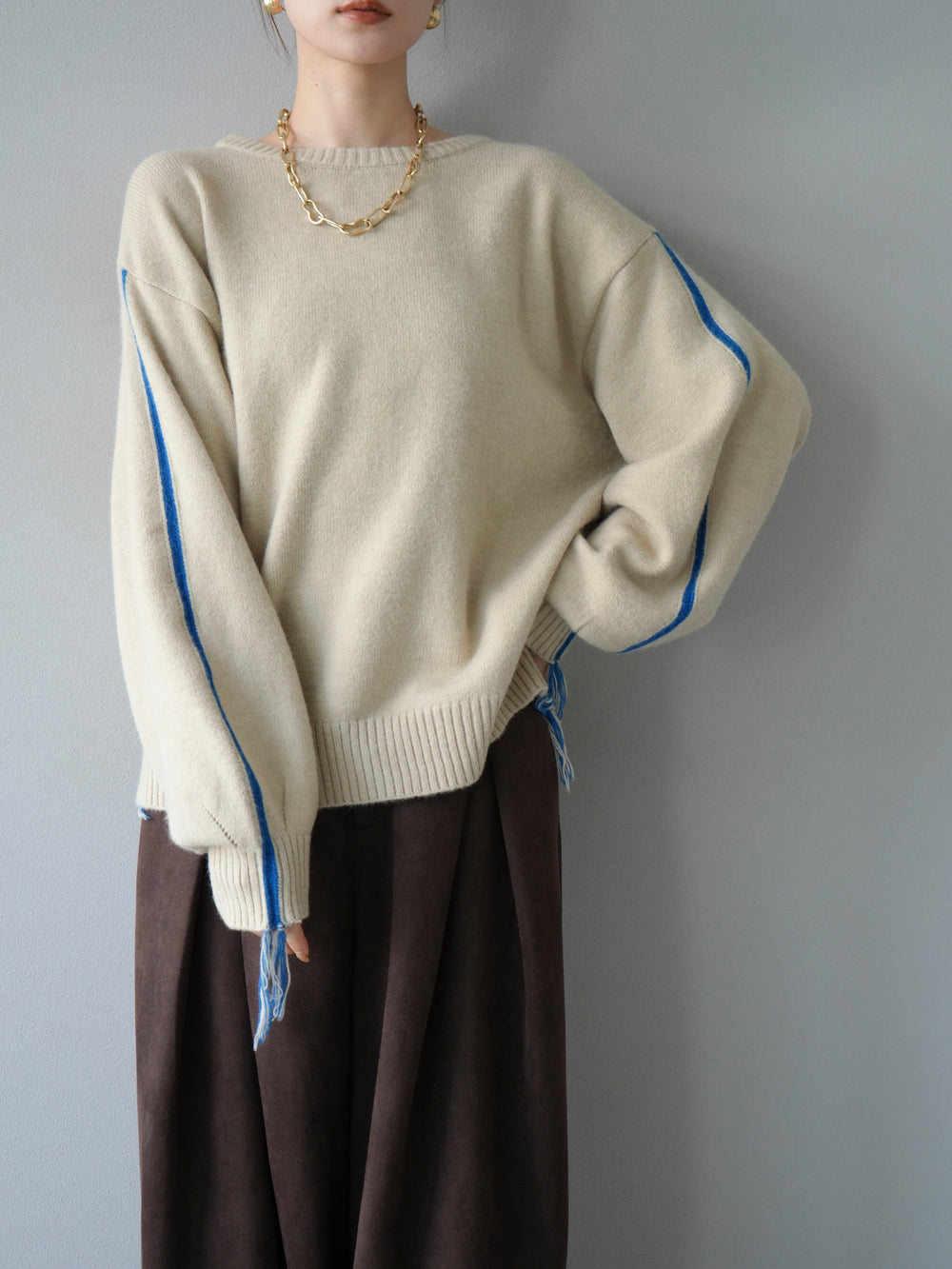 [予約]配色ステッチフリンジニットプルオーバー /アイボリー