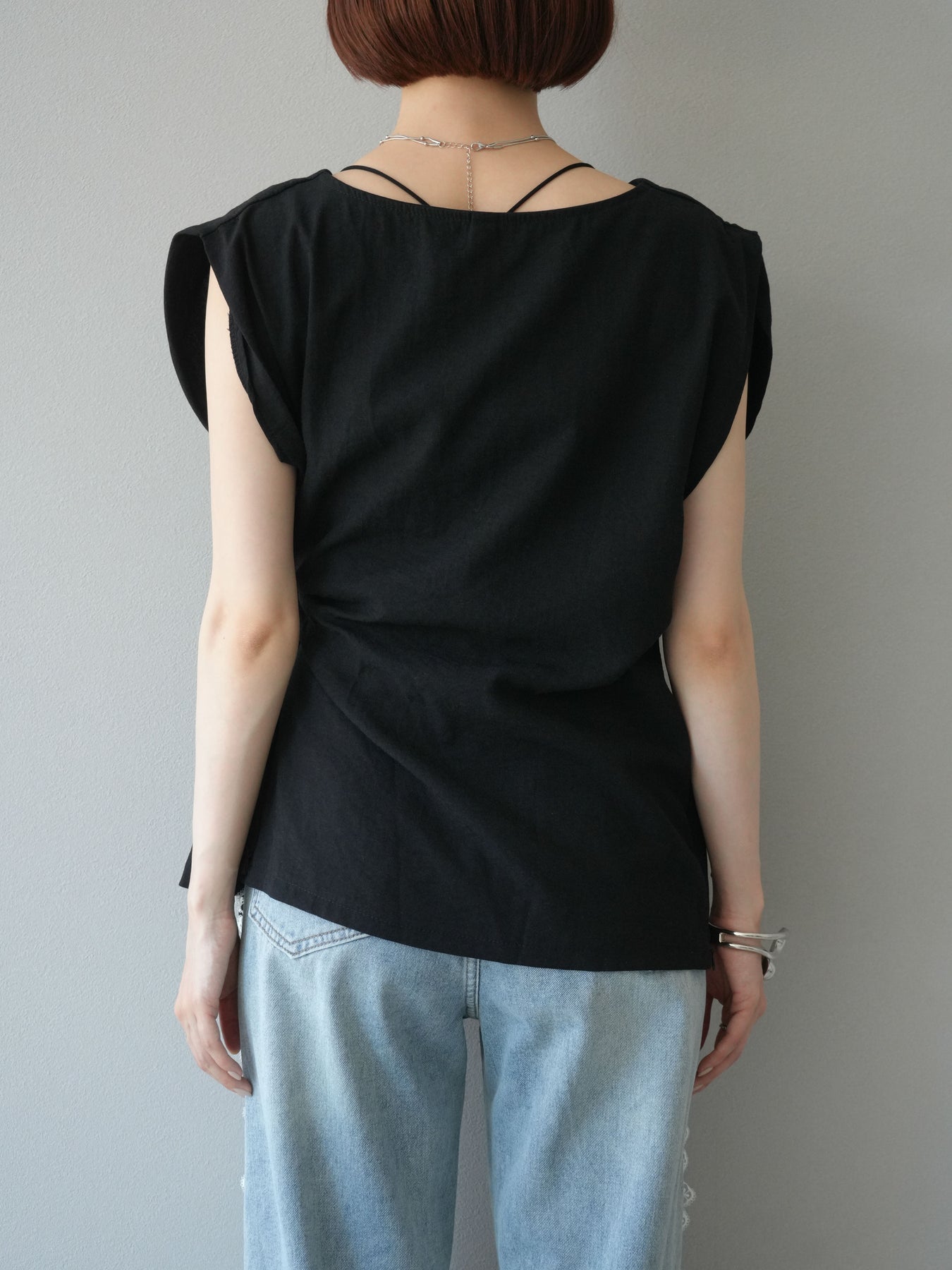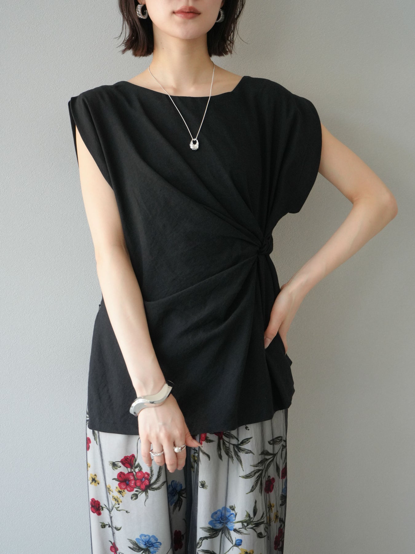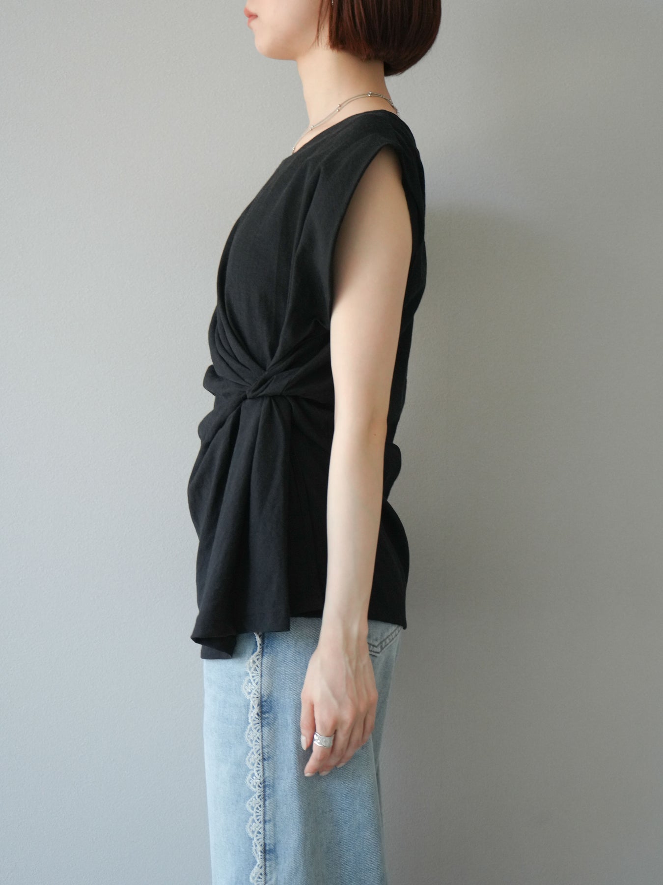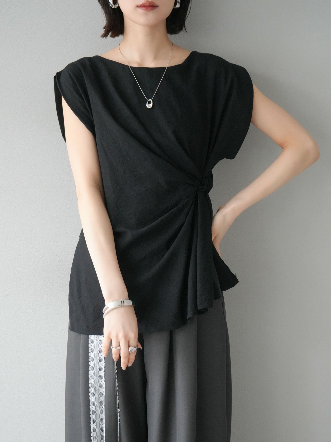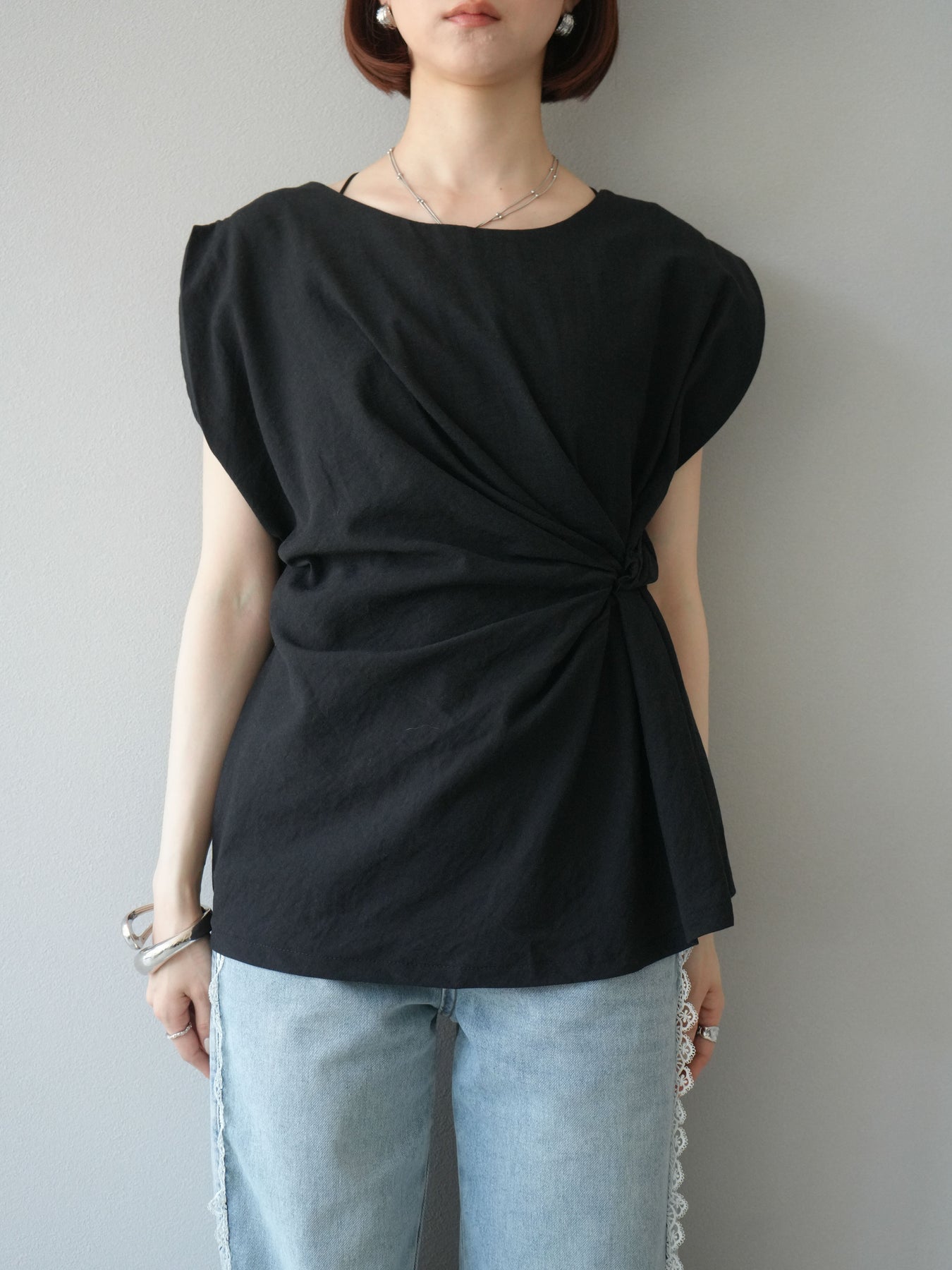[予約]サイドツイストフレンチトップス/ブラック