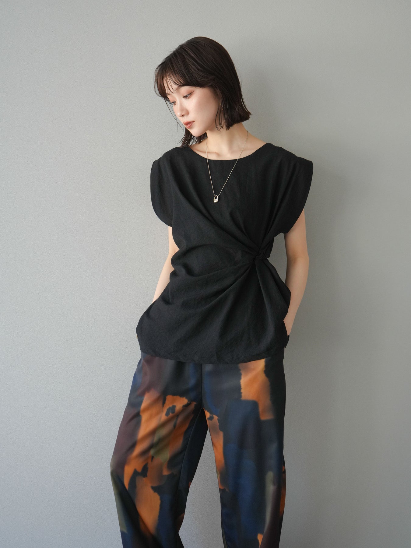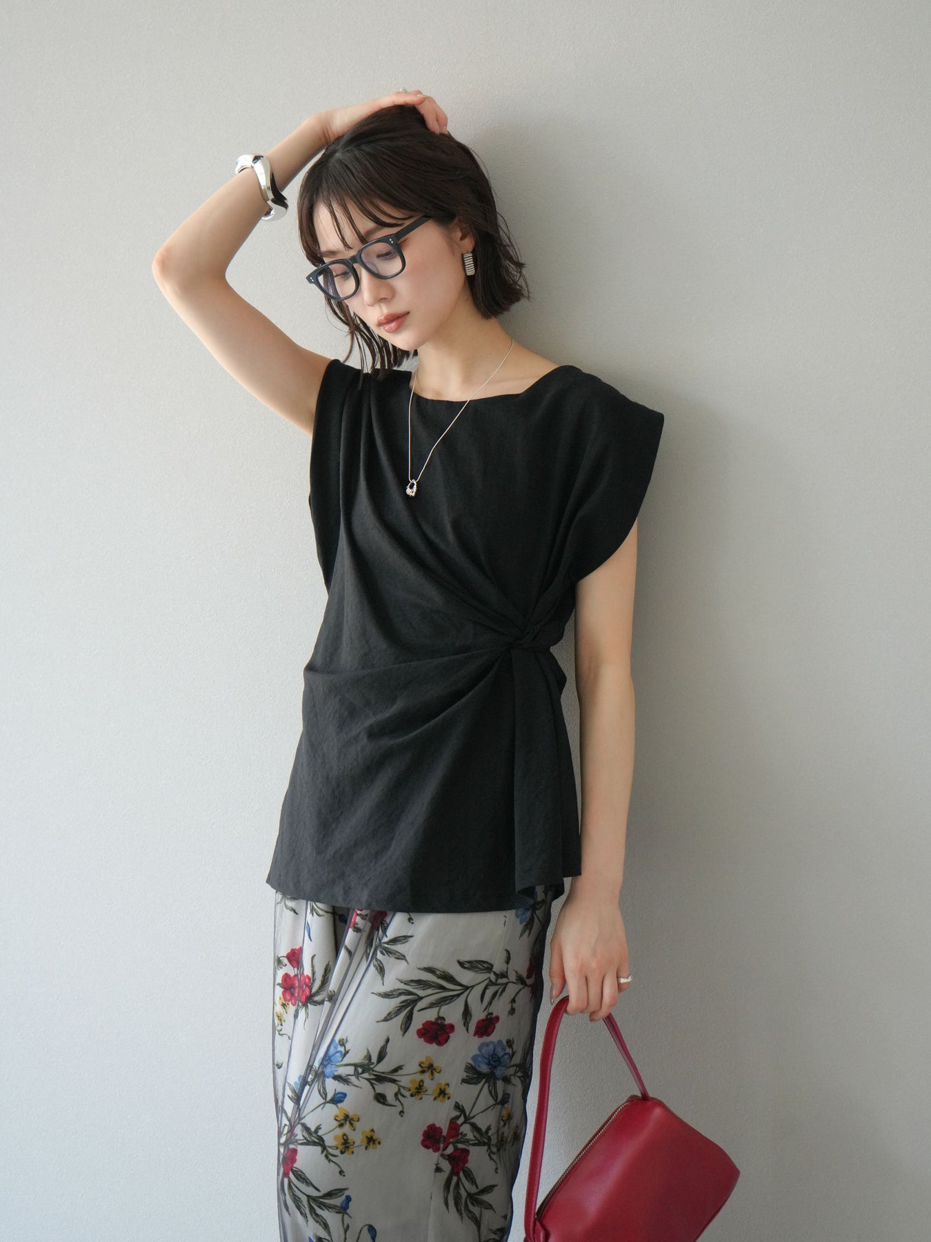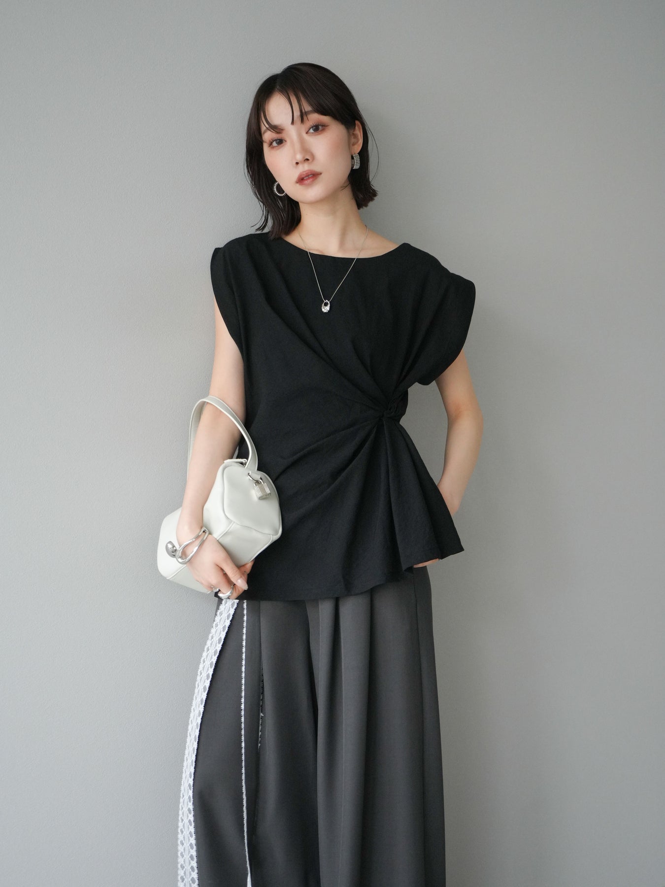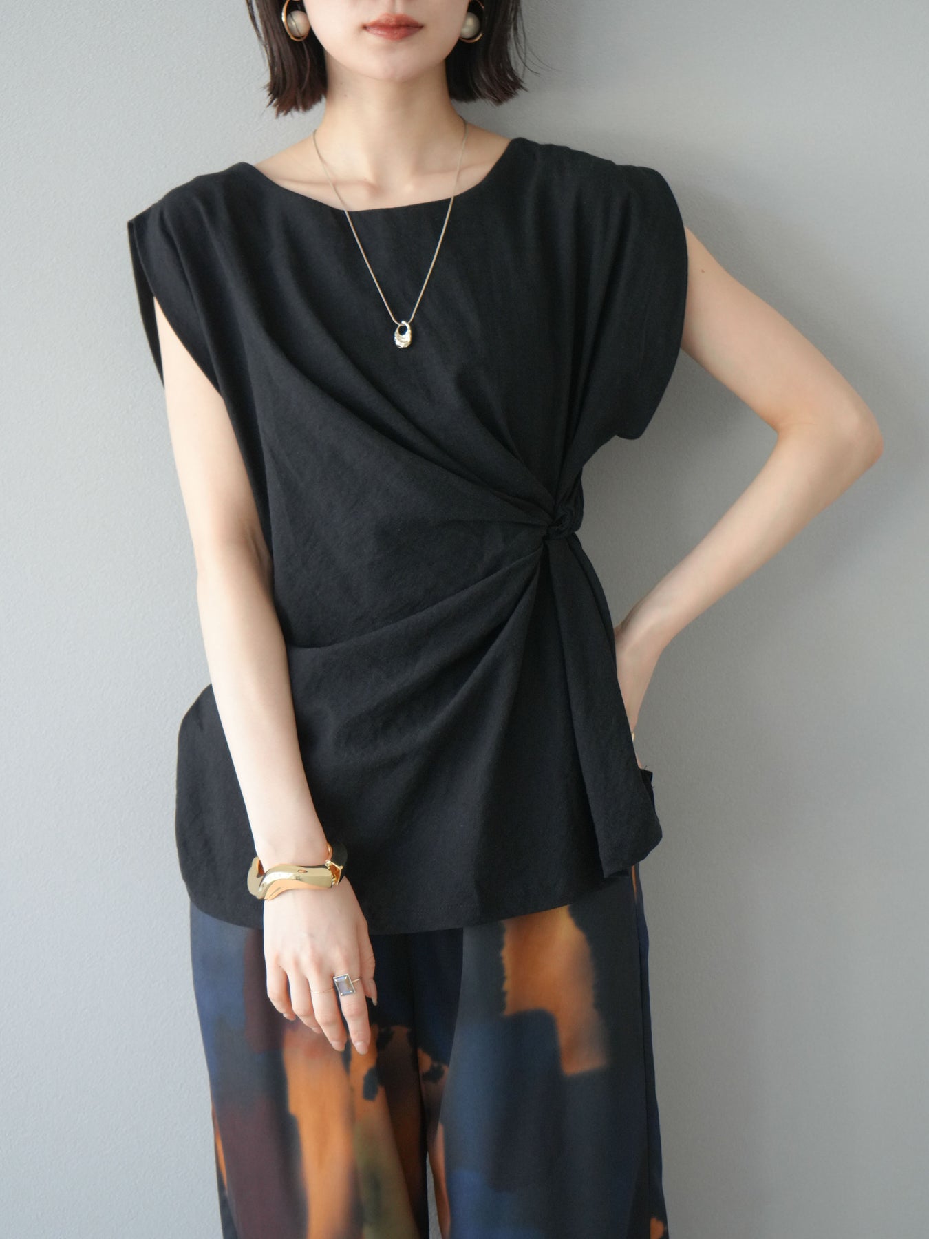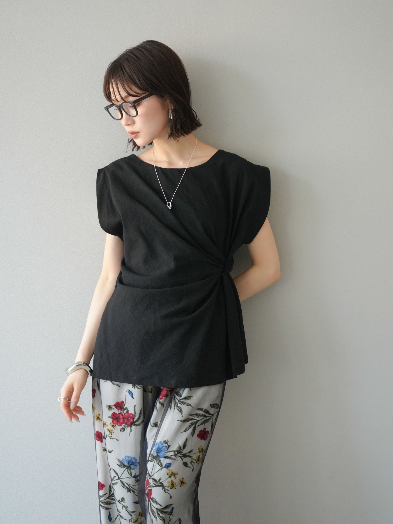 [予約]サイドツイストフレンチトップス/ブラック