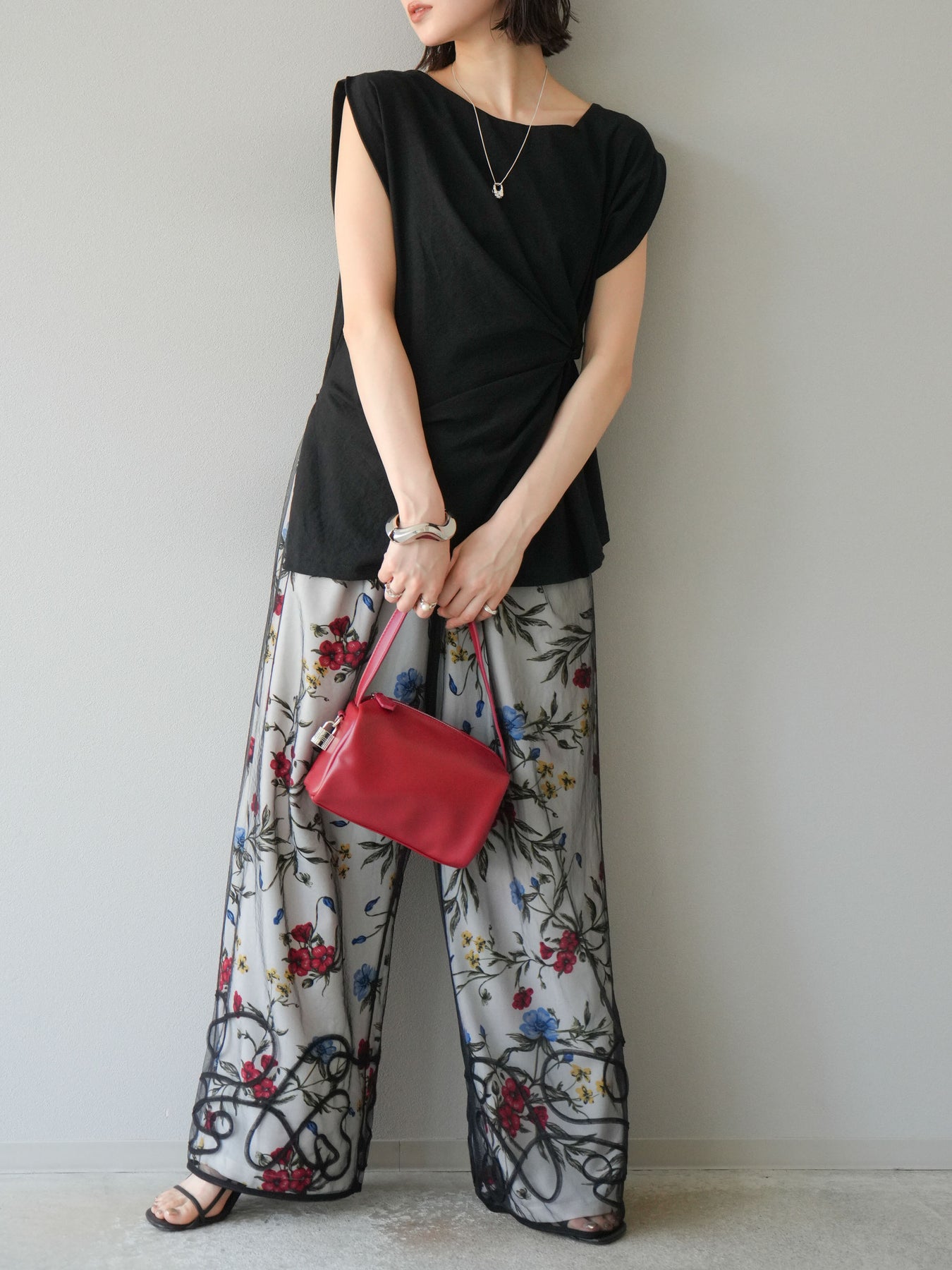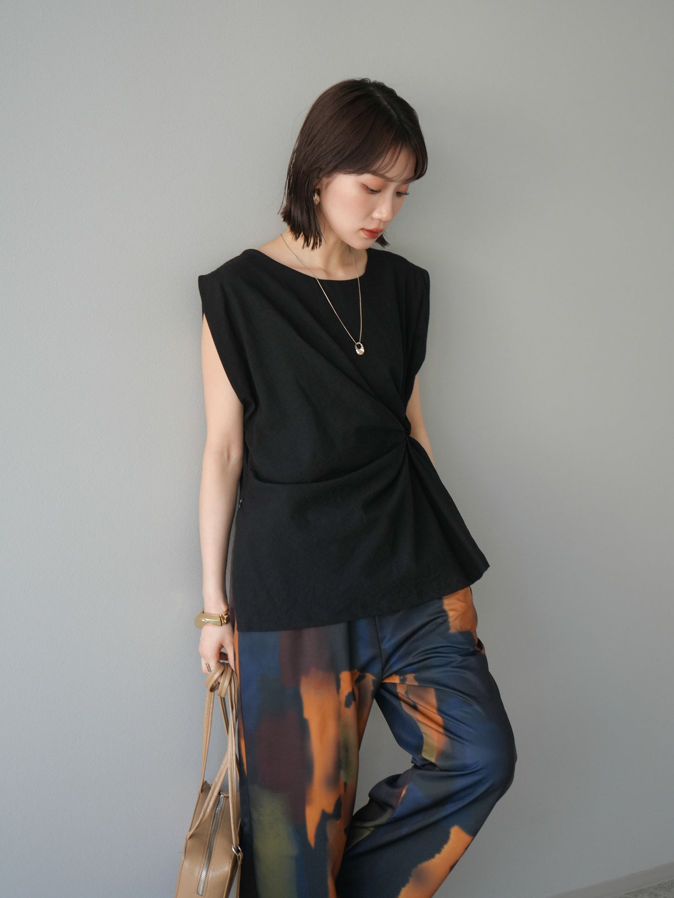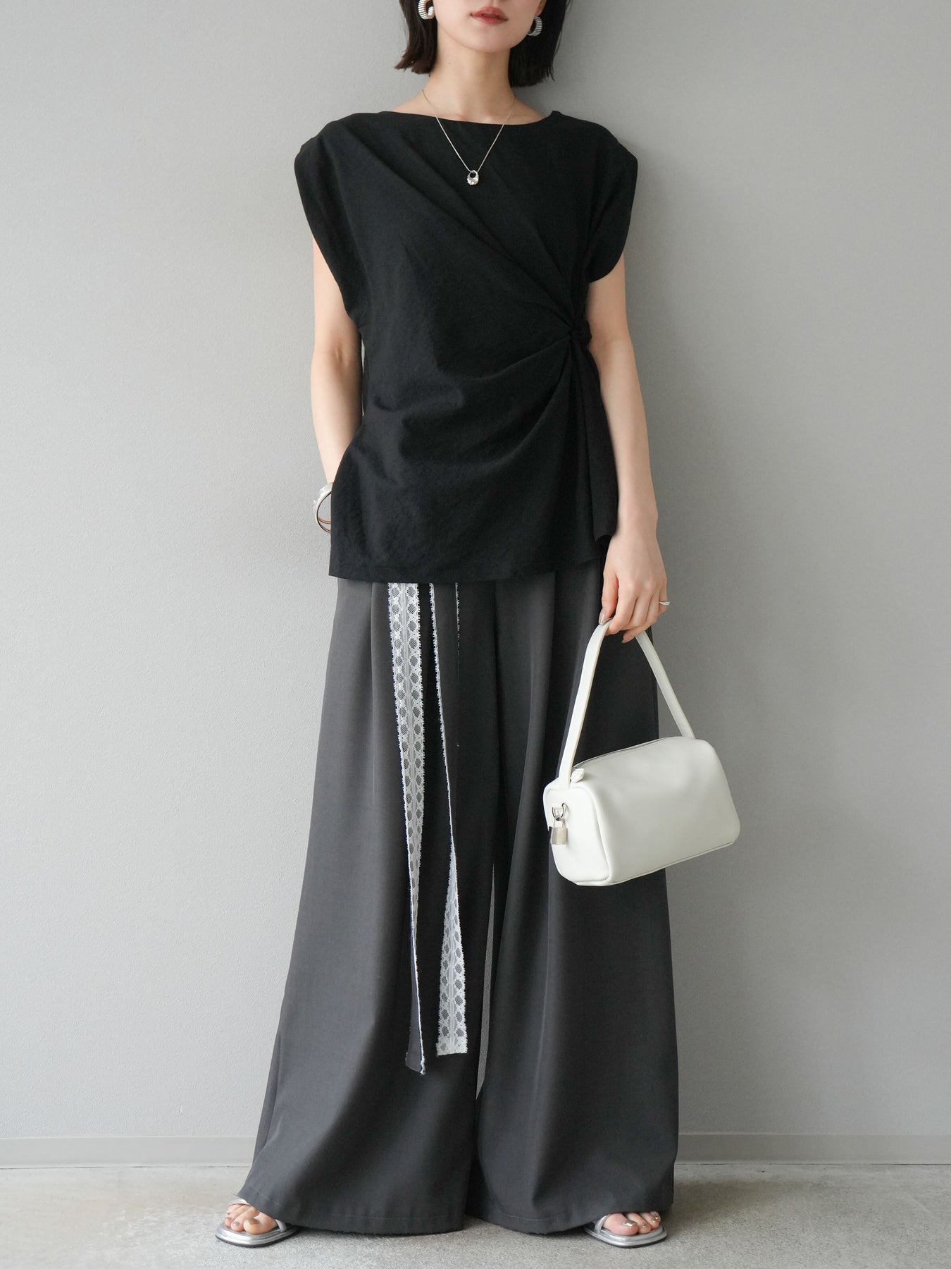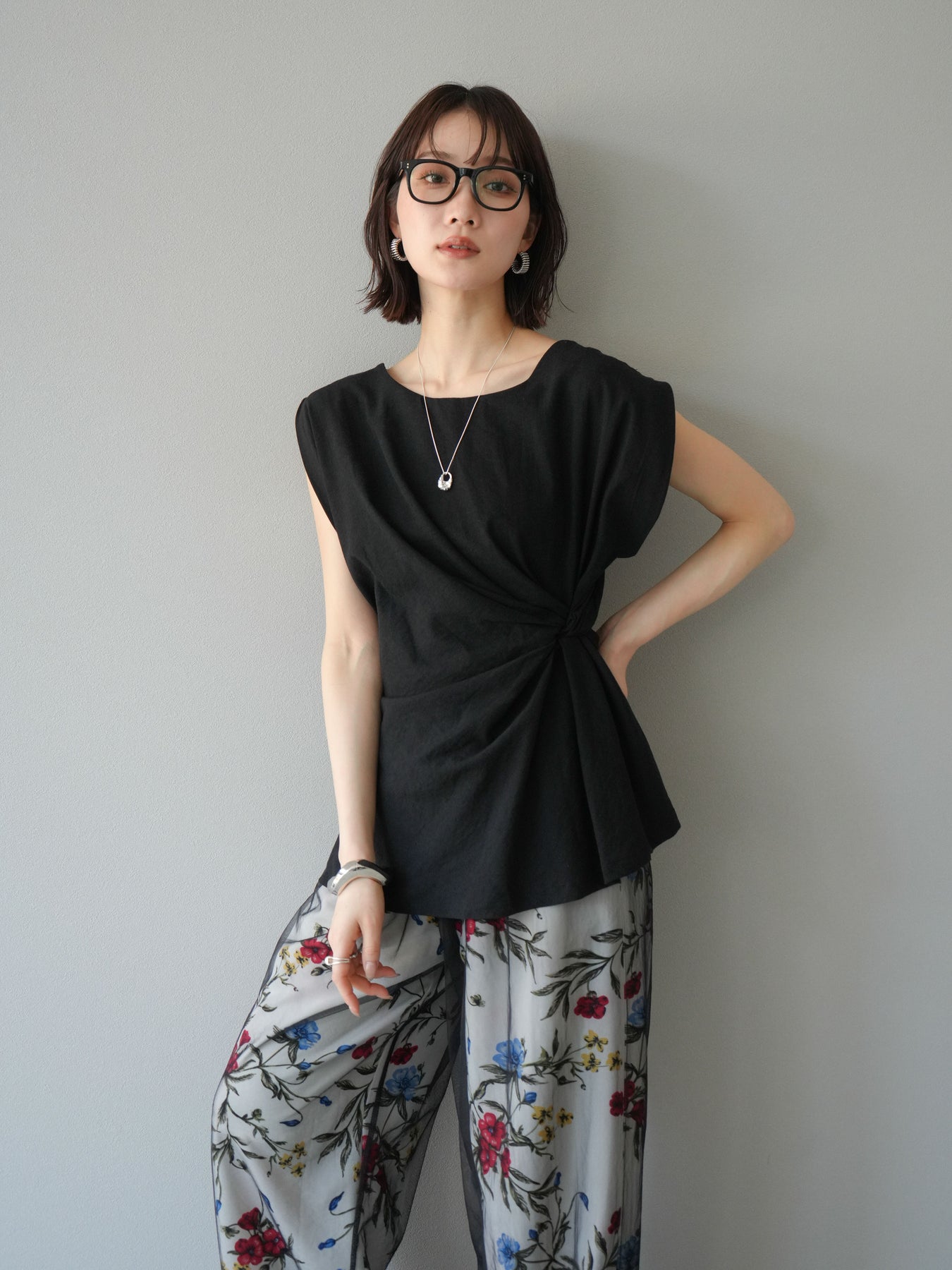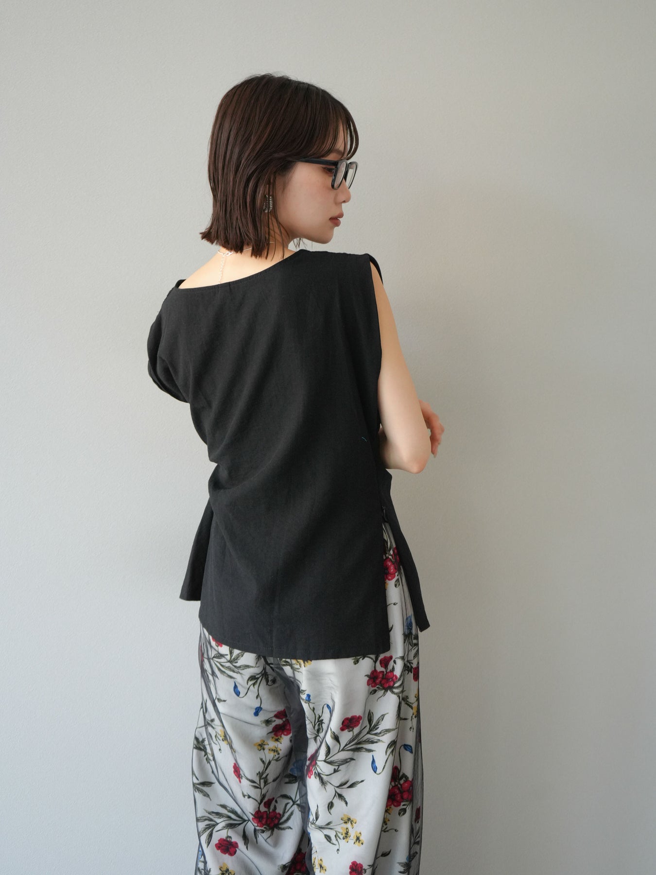 [予約]サイドツイストフレンチトップス/ブラック