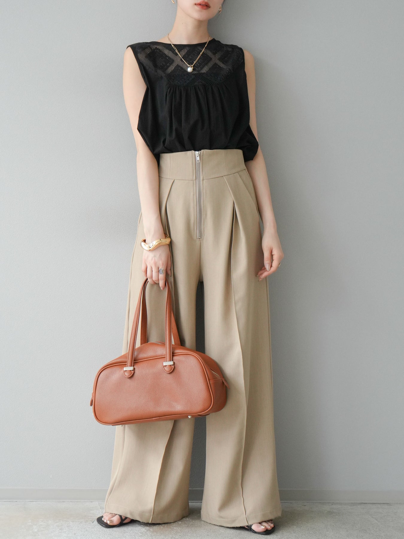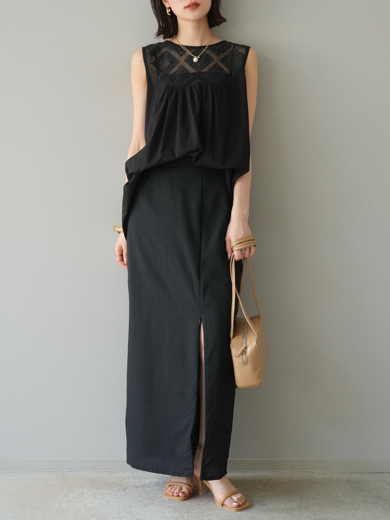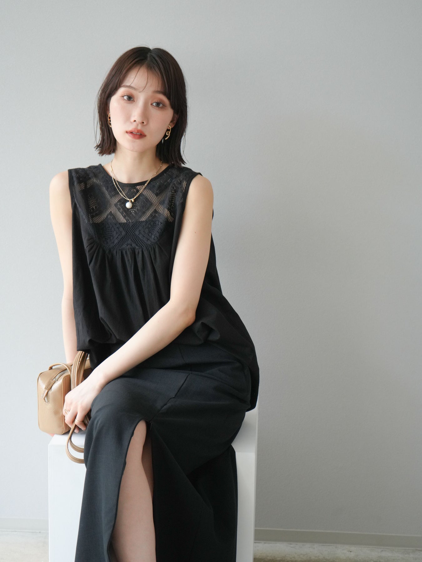 背面のヨーク部分に繊細なレースをあしらった、インド製コットン素材のノースリーブブラウス。ふんわりと軽やかなインド綿の風合いが涼しげで、ナチュラルな雰囲気を演出します。ギャザー入りのゆったりとしたシルエットで、リラクシーな着心地ながらも女性らしさをしっかりキープ。シンプルながらもディテールにこだわったデザインで、1枚で着映えるアイテムです。デニムやワイドパンツ、スカートなど幅広いボトムと好相性。 ※ボトムス、キャミソール(インナー)以外の商品は一律でインナーは付属していません。