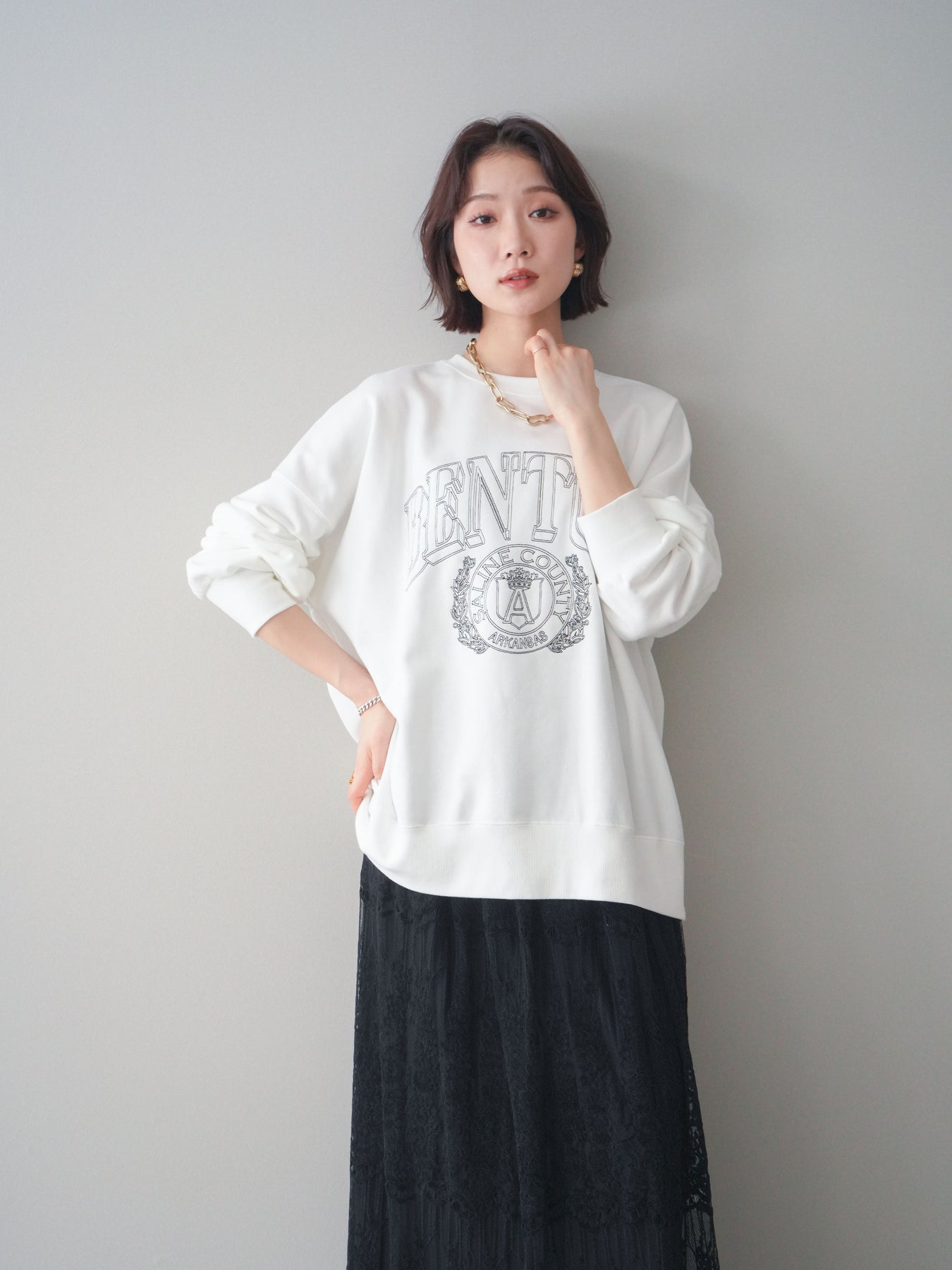 [予約]カレッジロゴ刺繍BIGスウェットプルオーバー/offwhite
