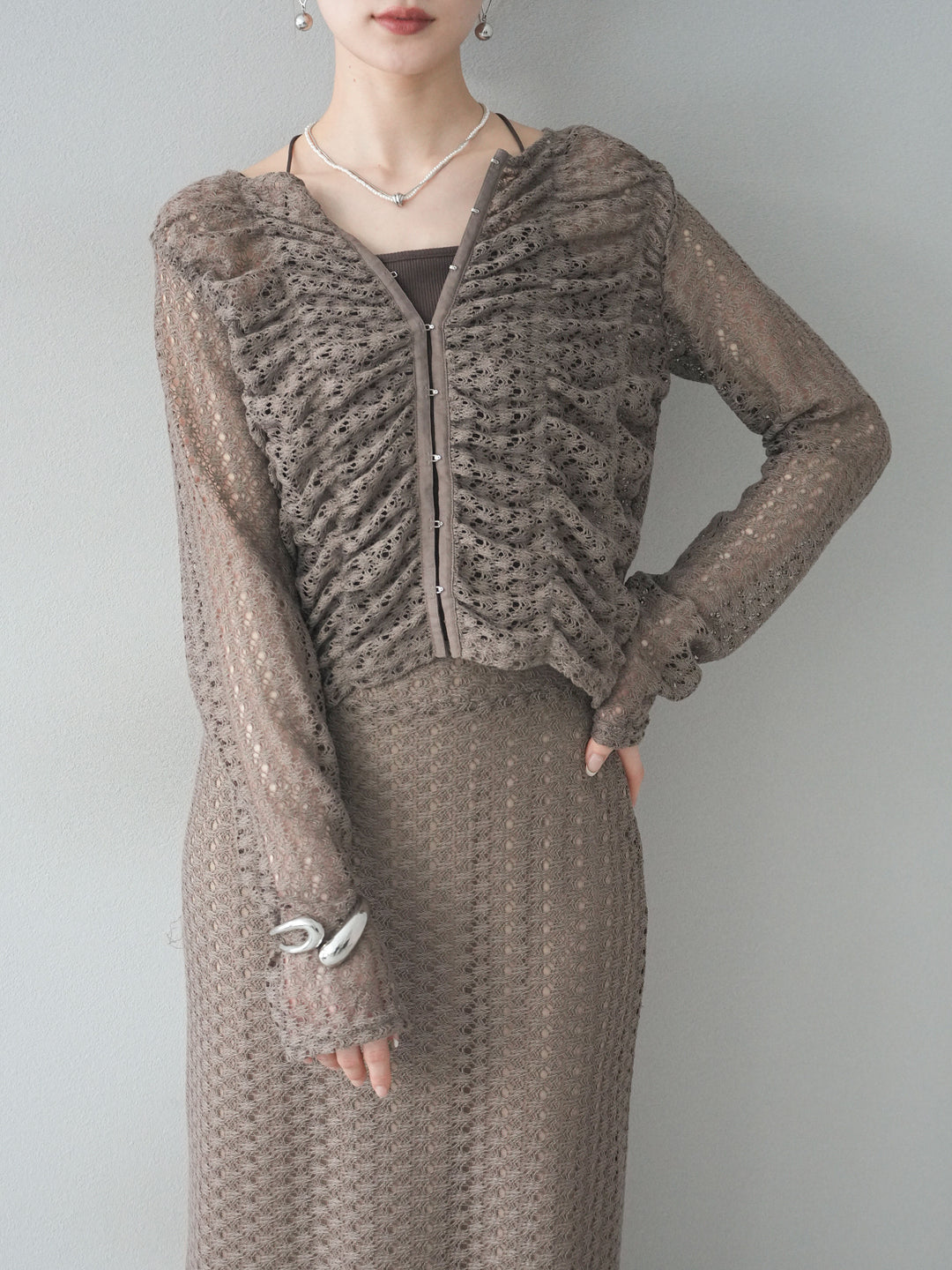 [予約]ハイネックデザインボタンニットカーディガン/mocha