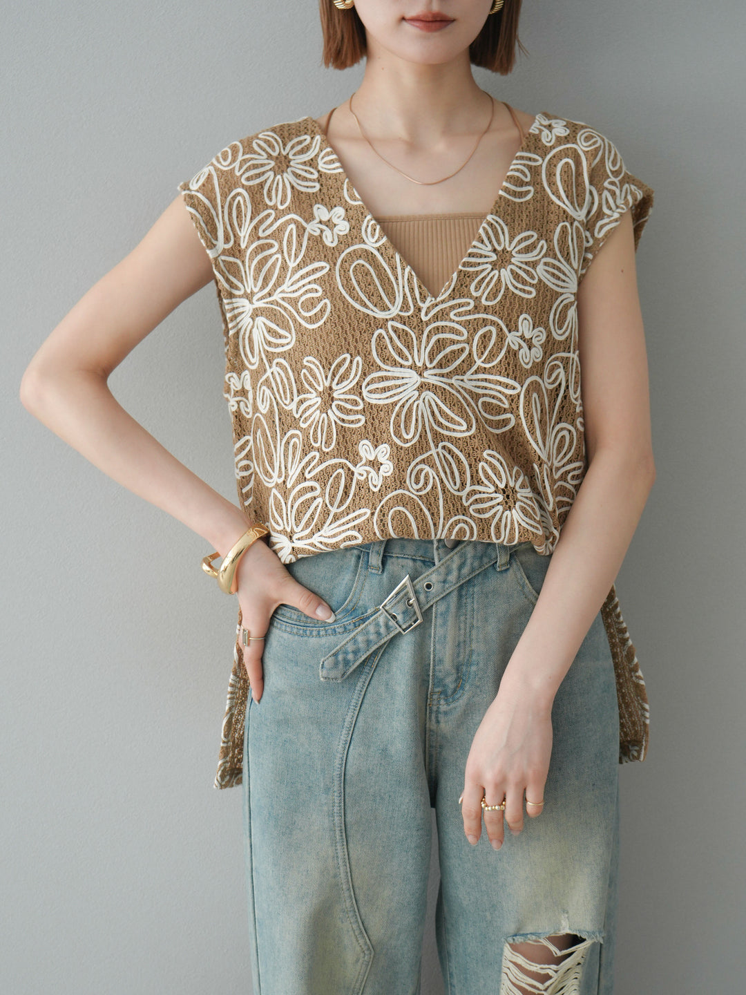 [予約]シャギーニュアンス柄ニットプルオーバー/brown